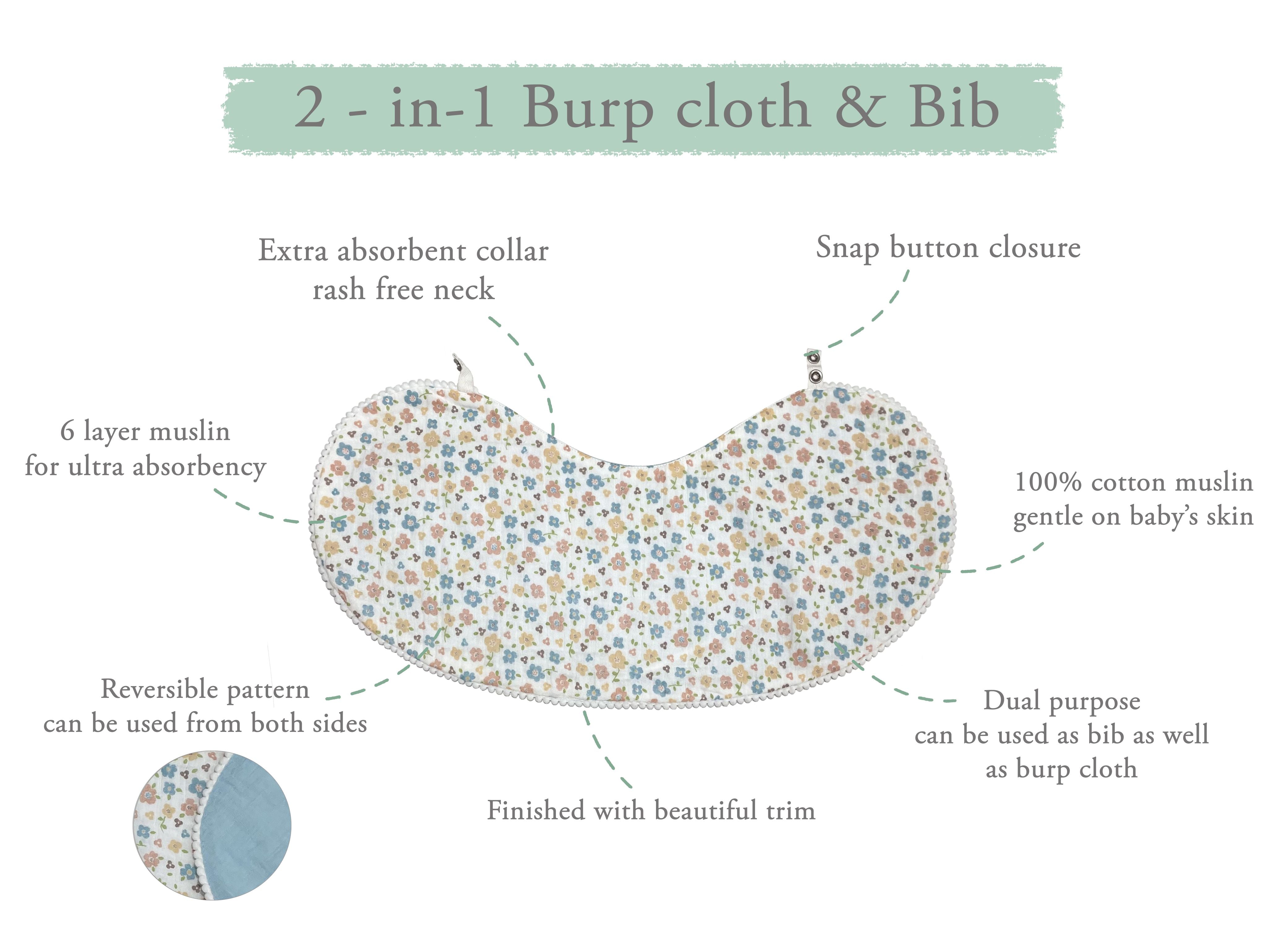 Abracadabra 2 in 1 Reversible Bib & Burp Pad Ditsy Floral
