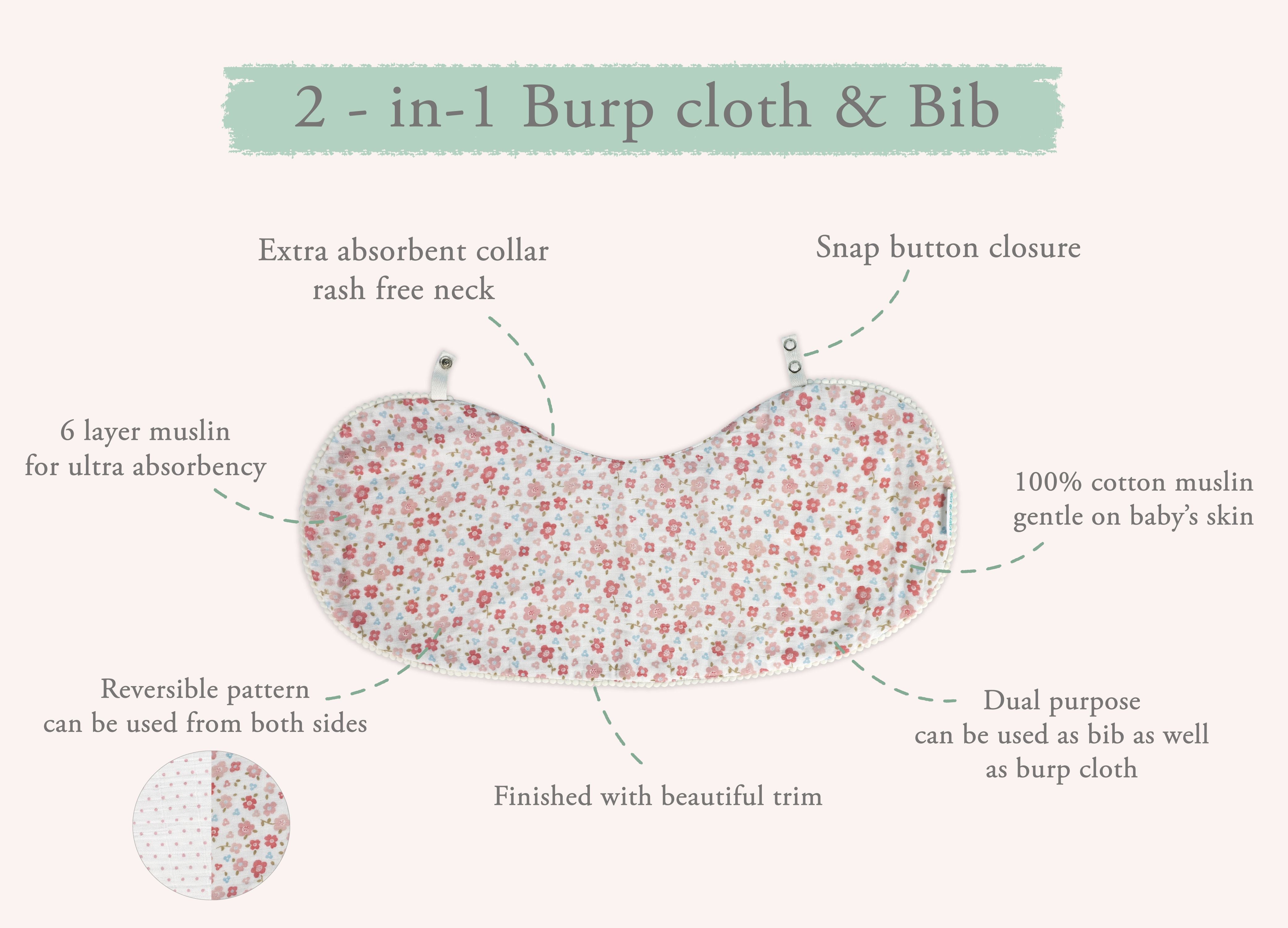 Abracadabra 2 in 1 Reversible Bib & Burp Pad Vintage Floral