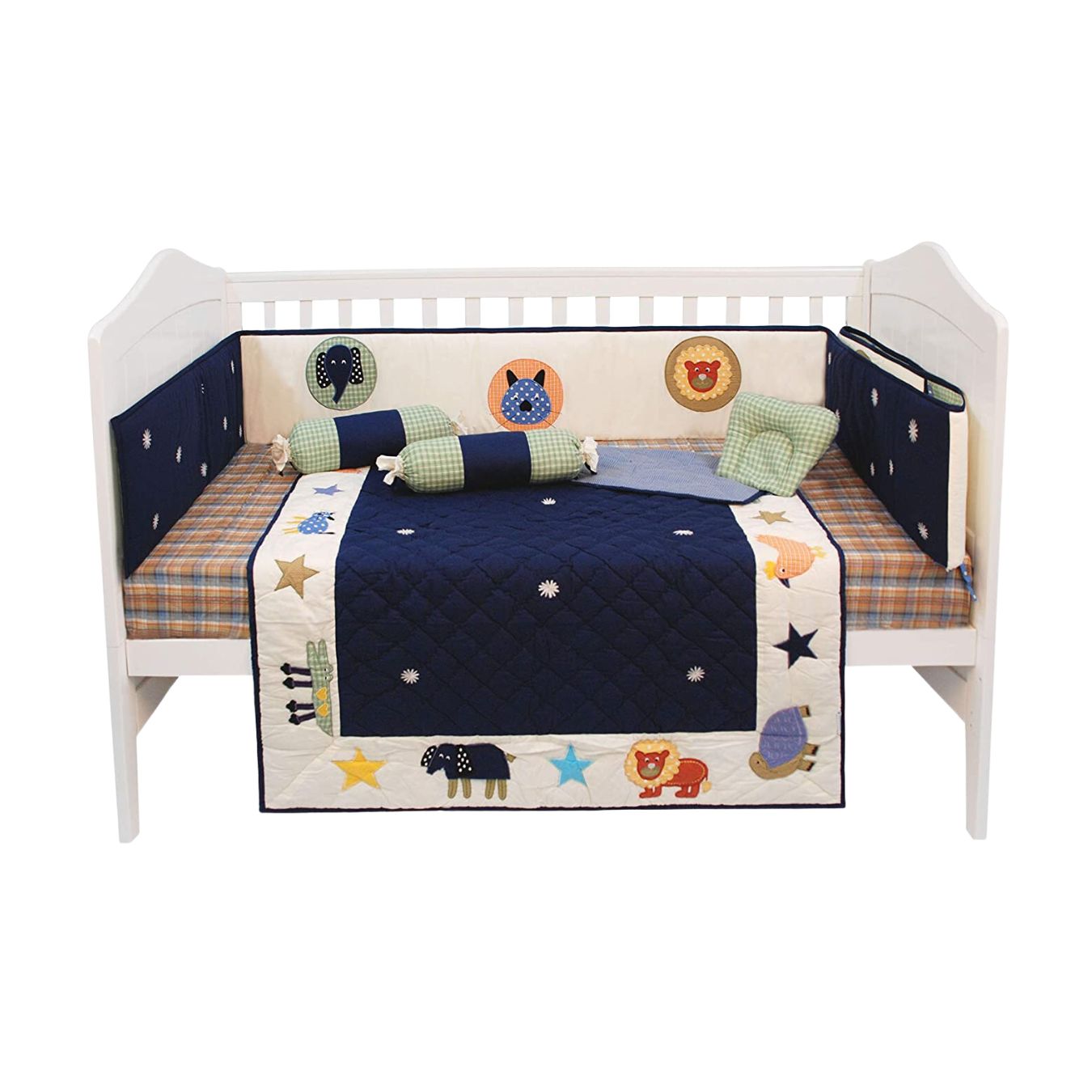 - Explore an ideal setting with a complete set that comes with a protective 6-piece cot bedding set, a four-sided bumper, a quilt, a flat sheet, two bolsters, and a neck pillow.