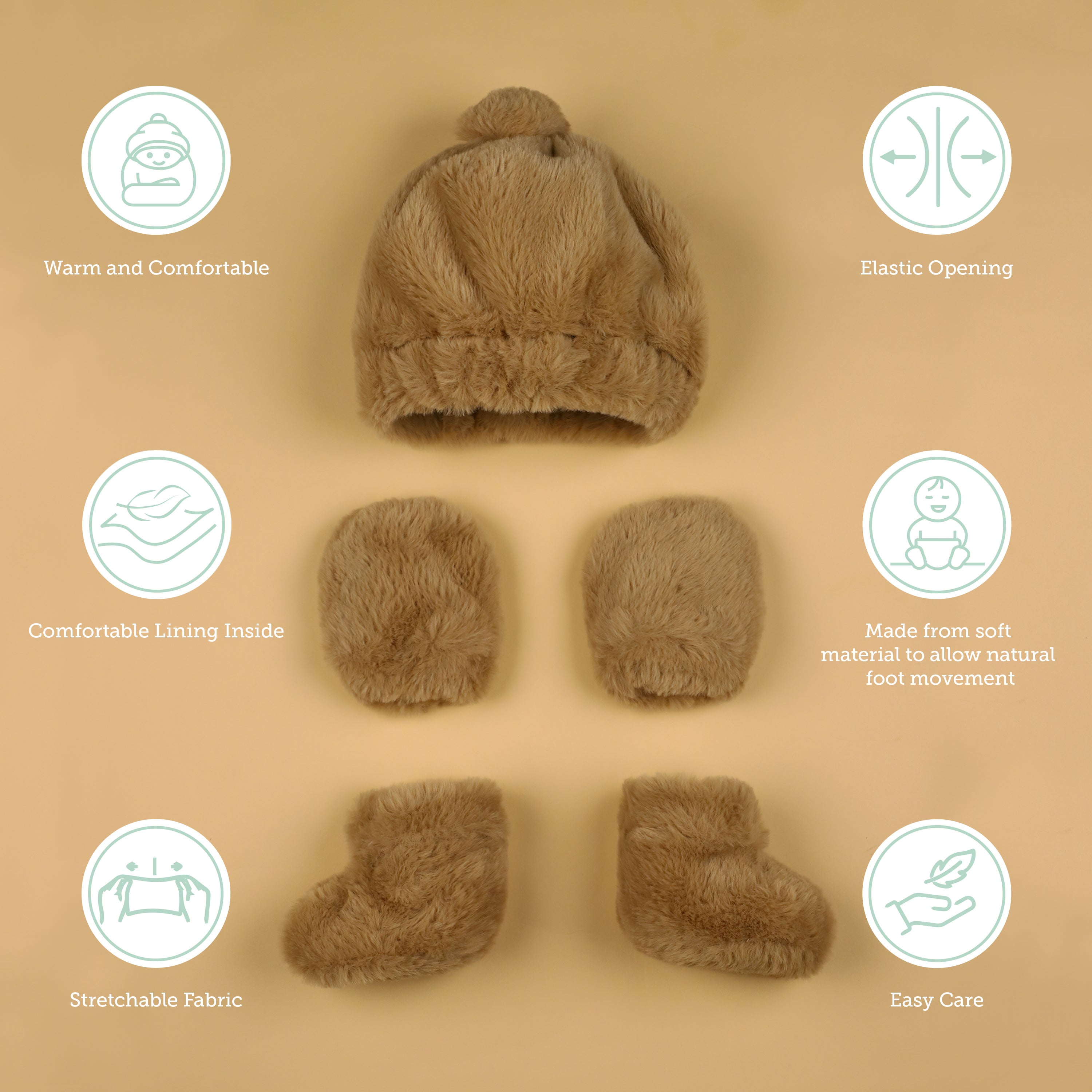 Abracadabra Caps, Mittens & Booties Set - Brown