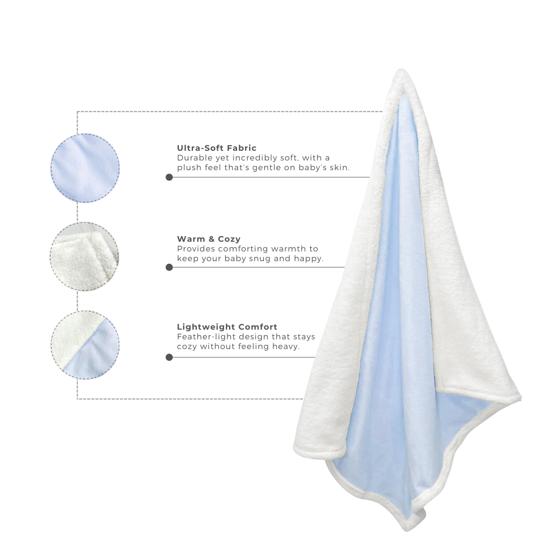 Our chamois baby blankets are super soft and luxuriously plush, making them the perfect cuddle companion for your little one. Designed with a cozy sherpa back and a smooth mink top, these blankets offer exceptional warmth, comfort, and a pillow-soft feel. Ideal for gifting, they are a must-have for naptime, travelling, tummy time, and everyday snuggles.