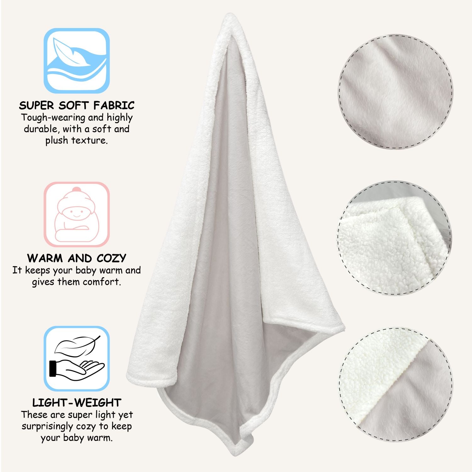 Our chamois blankets are super soft and luxurious, the perfect cuddle companion for your little one! Designed with a sherpa back and a mink top, these blankets are warm, cozy and pillow-y soft. Great for gifting and a necessity for naptime, traveling, tummy time and for the warmest of snuggles. A great size which can go in your baby's cot, cradle, stroller or car seat, ensuring that your little one enjoys comfort at all times!