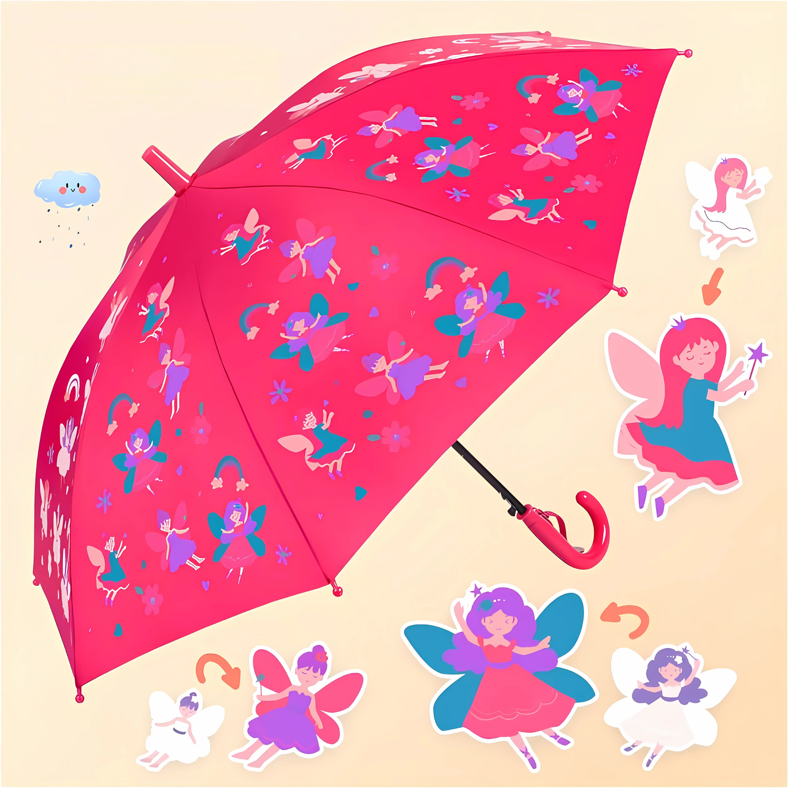 Turn every drizzle into a delightful surprise with the Abracadabra Color Changing Umbrella – Fairy Edition. Watch the fun Fairy prints magically burst into color when water touches the surface—adding wonder and joy to every rainy day adventure!