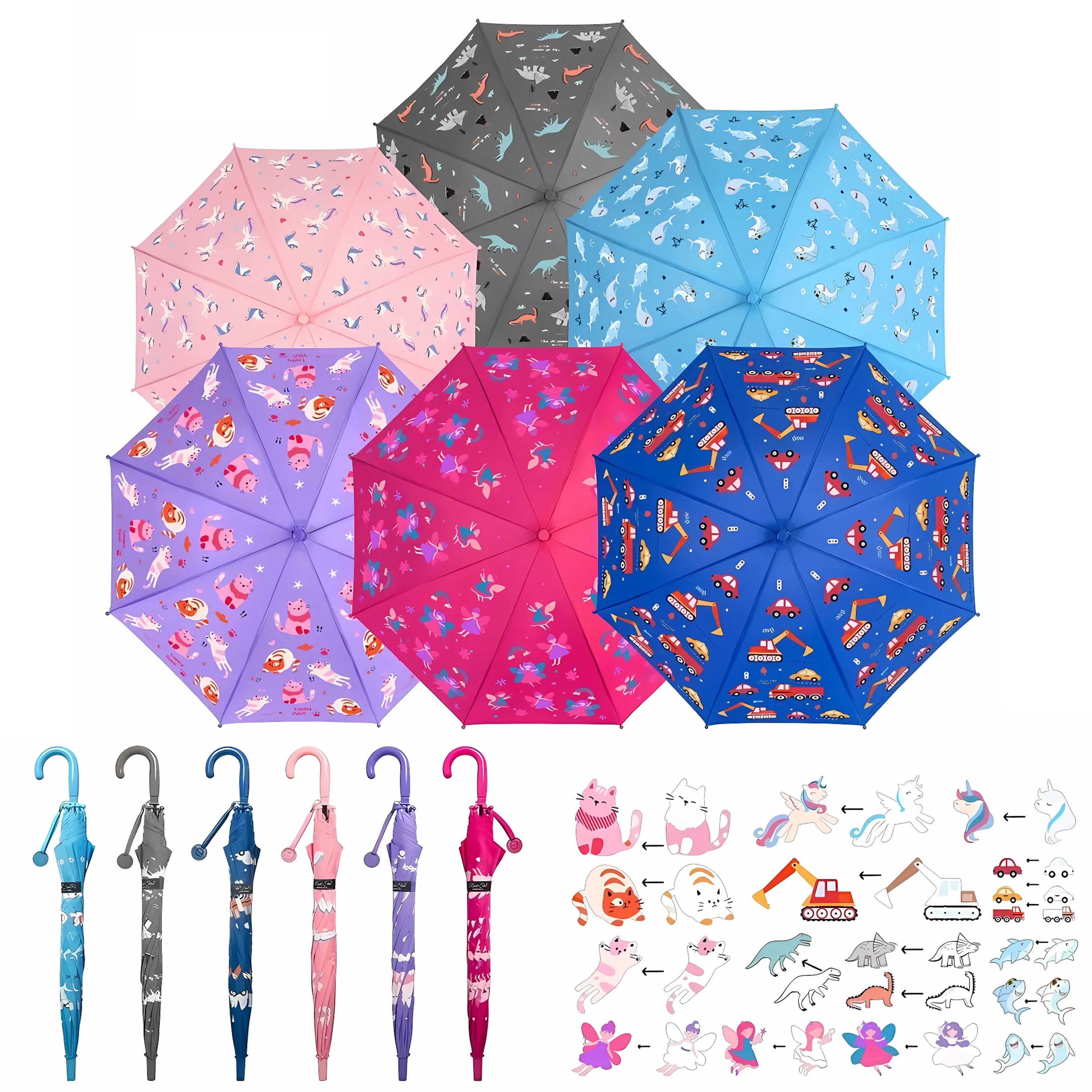 - Color-Changing Magic – The umbrella features dinosaur-themed designs that change color instantly when exposed to rain or water, and returns to original once dry.