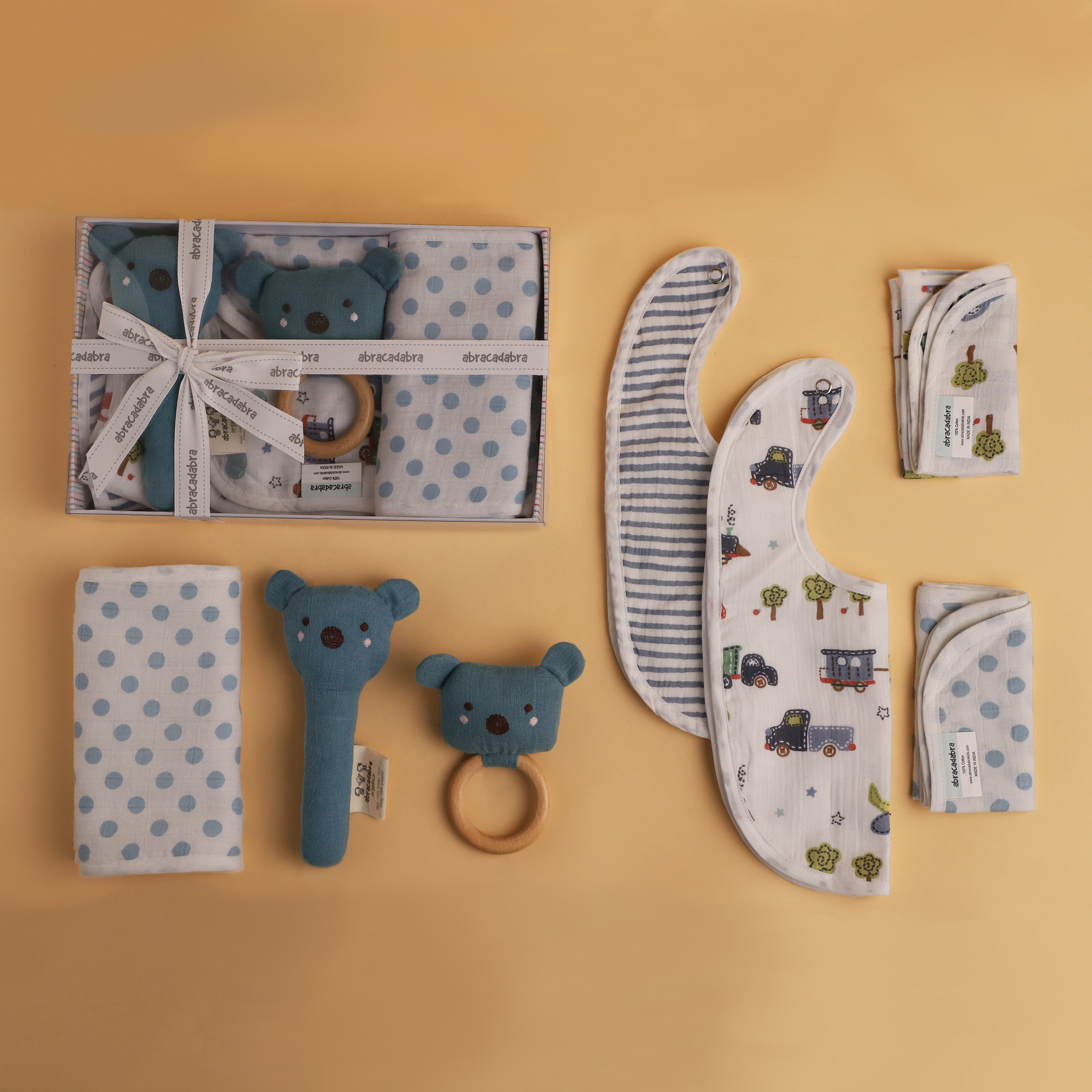 A perfect set of newborn feeding essentials for babies 0-2 years, this curated gift box celebrates milestones and welcomes new arrivals with a blend of functionality and charm. Made from soft, premium muslin, it includes adorable prints and gentle teething toys, ensuring comfort and style. Each carefully selected item combines practicality with irresistible cuteness. Discover our lovingly crafted range of gifts to cherish every precious moment.