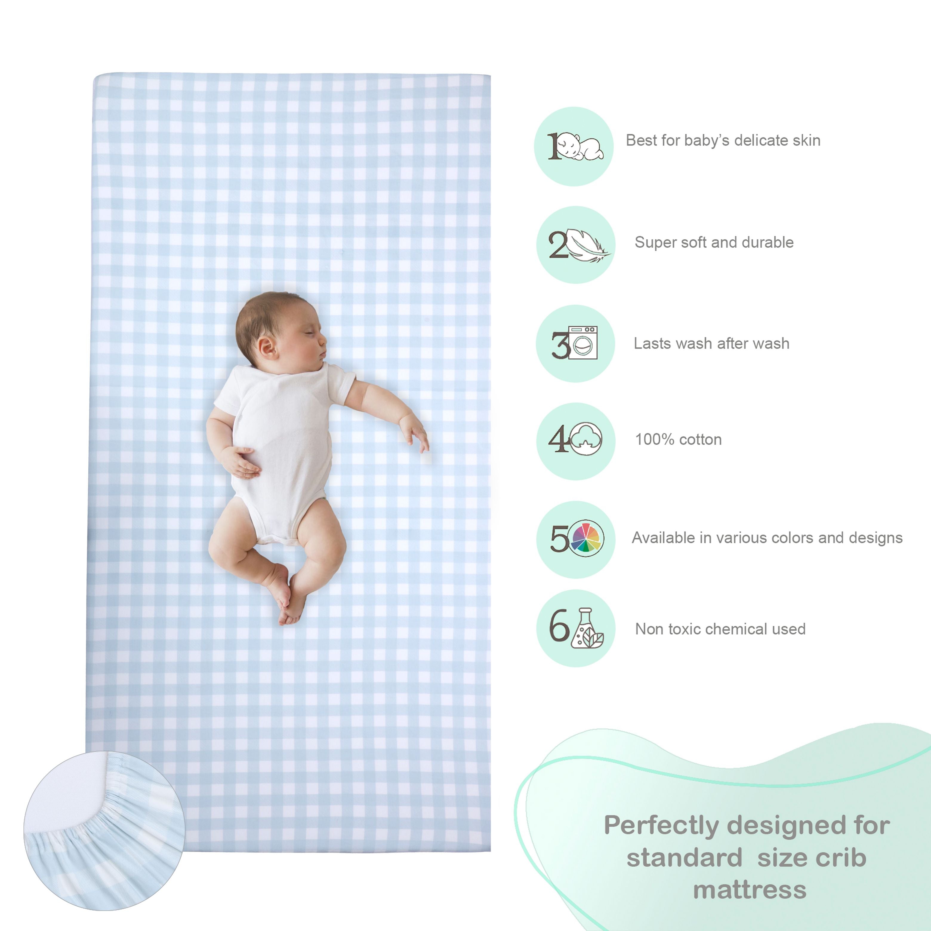 - Woven with 220 Thread Cotton, Our fitted sheets effectively wick away sweat and moisture, keeping your baby's delicate skin cool and comfortable. The fabric is 100% natural, baby safe and gets softer with every wash