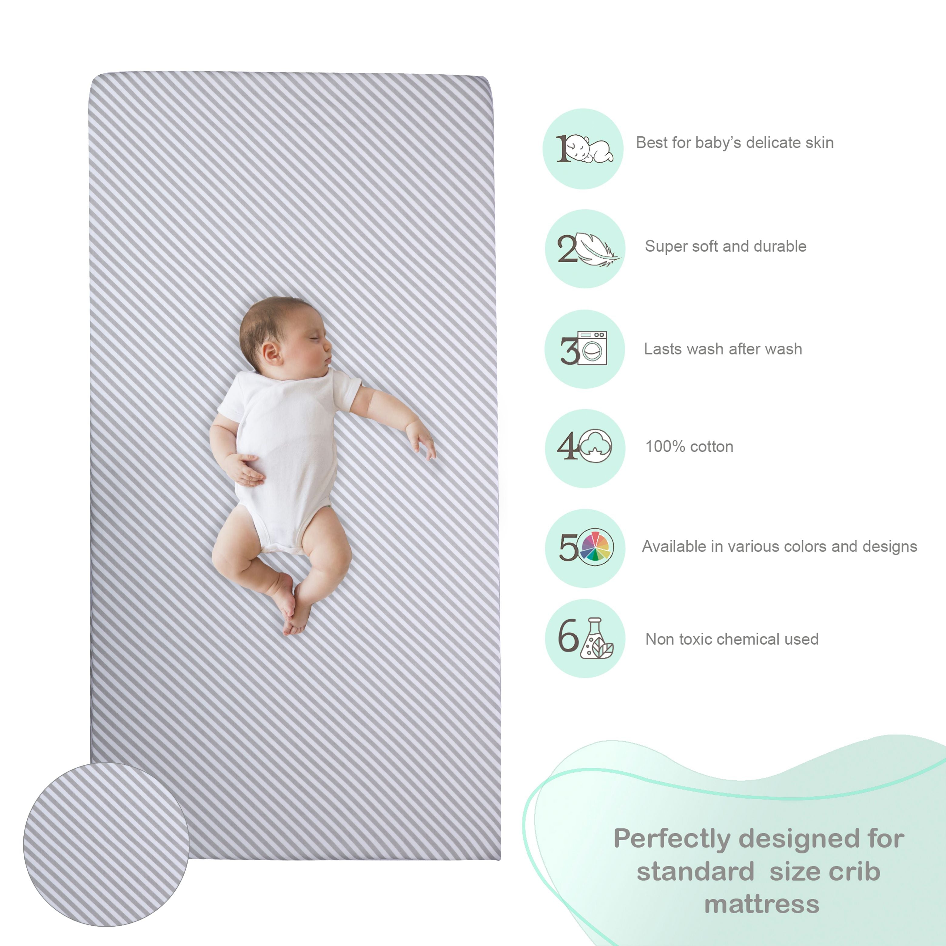 - Woven with 220 Thread Cotton, Our fitted sheets effectively wick away sweat and moisture, keeping your baby's delicate skin cool and comfortable. The fabric is 100% natural, baby safe and gets softer with every wash