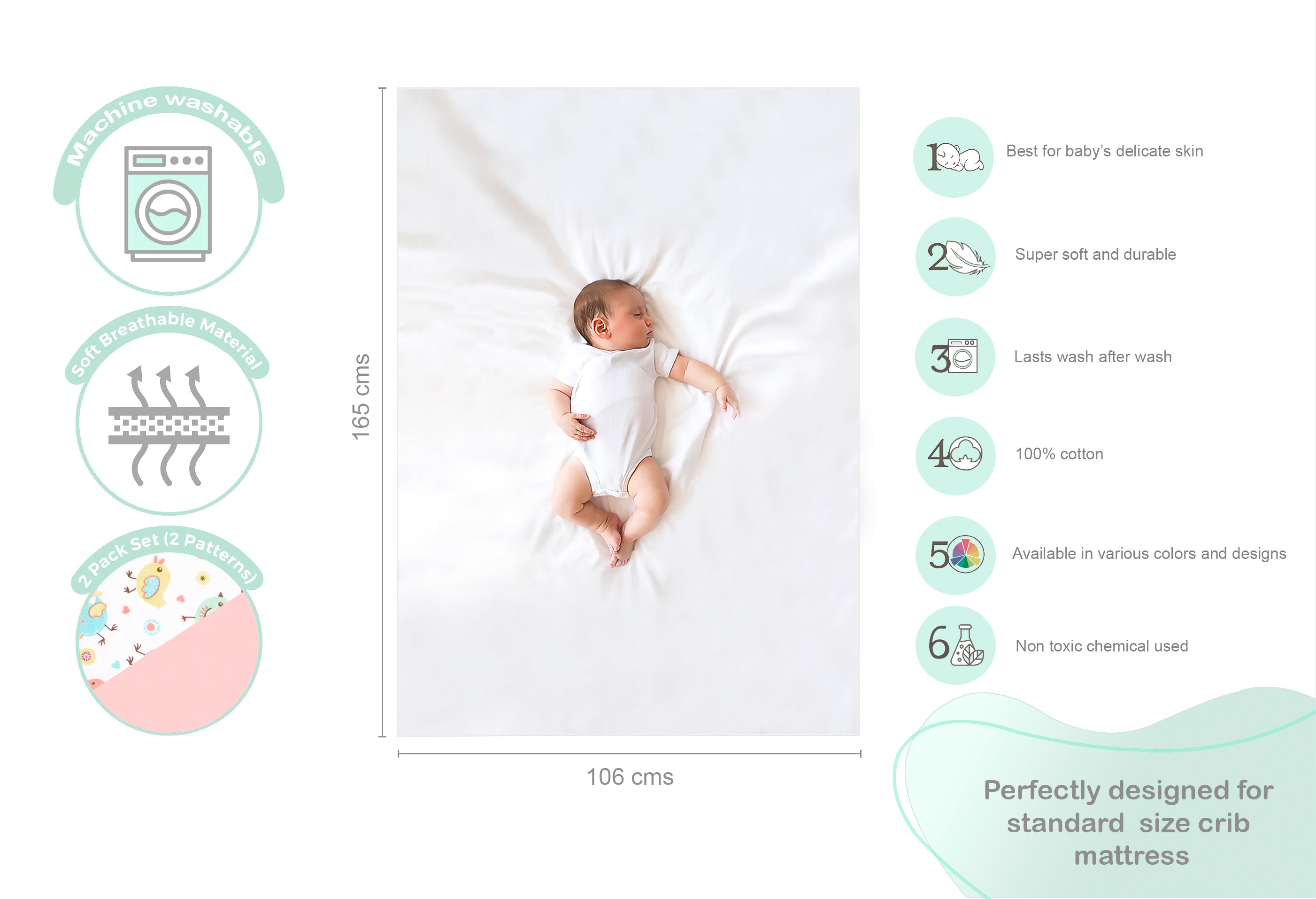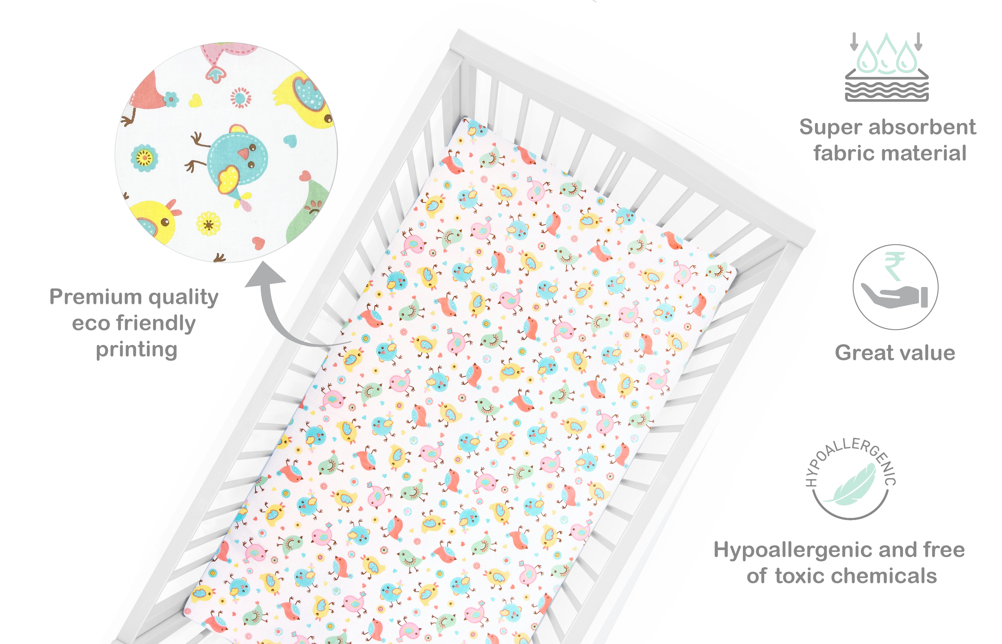 - The sheets are extremely convenient to set up on the mattress and can be changes easily. Made in premium cotton fabric, these are soft and gentle on the baby's skin