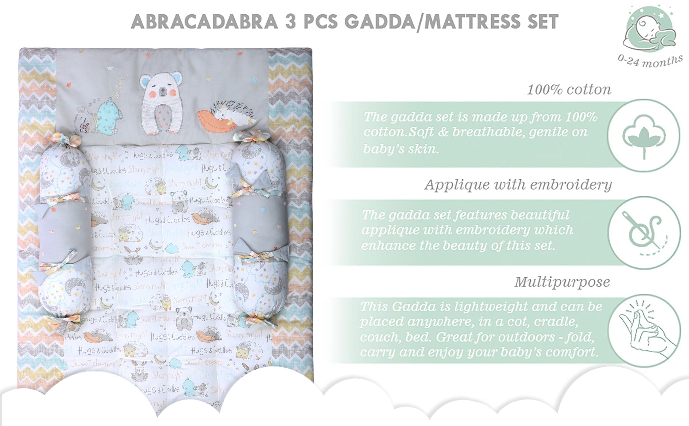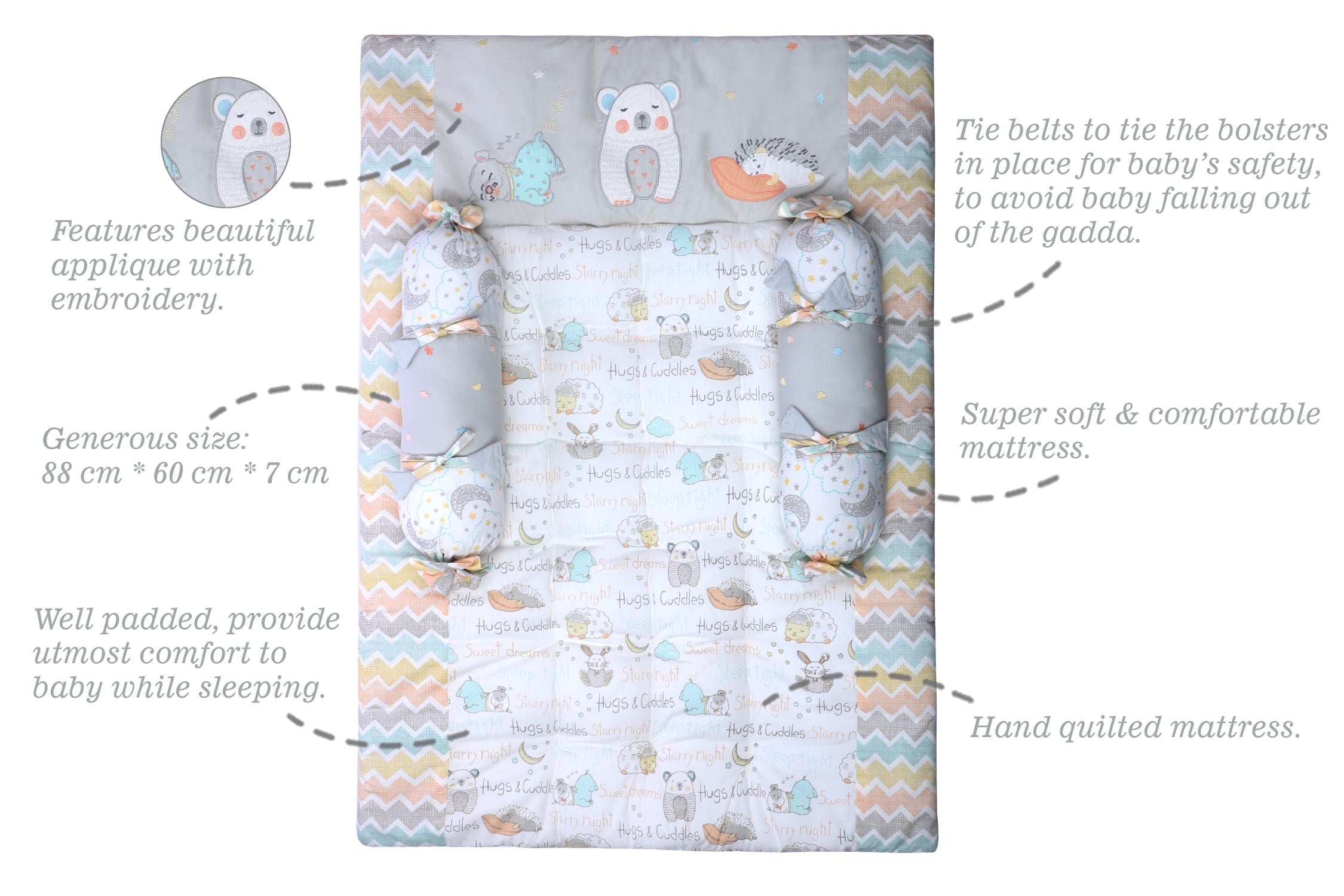 Gadda Set with 2 bolsters - Sleepy Friends