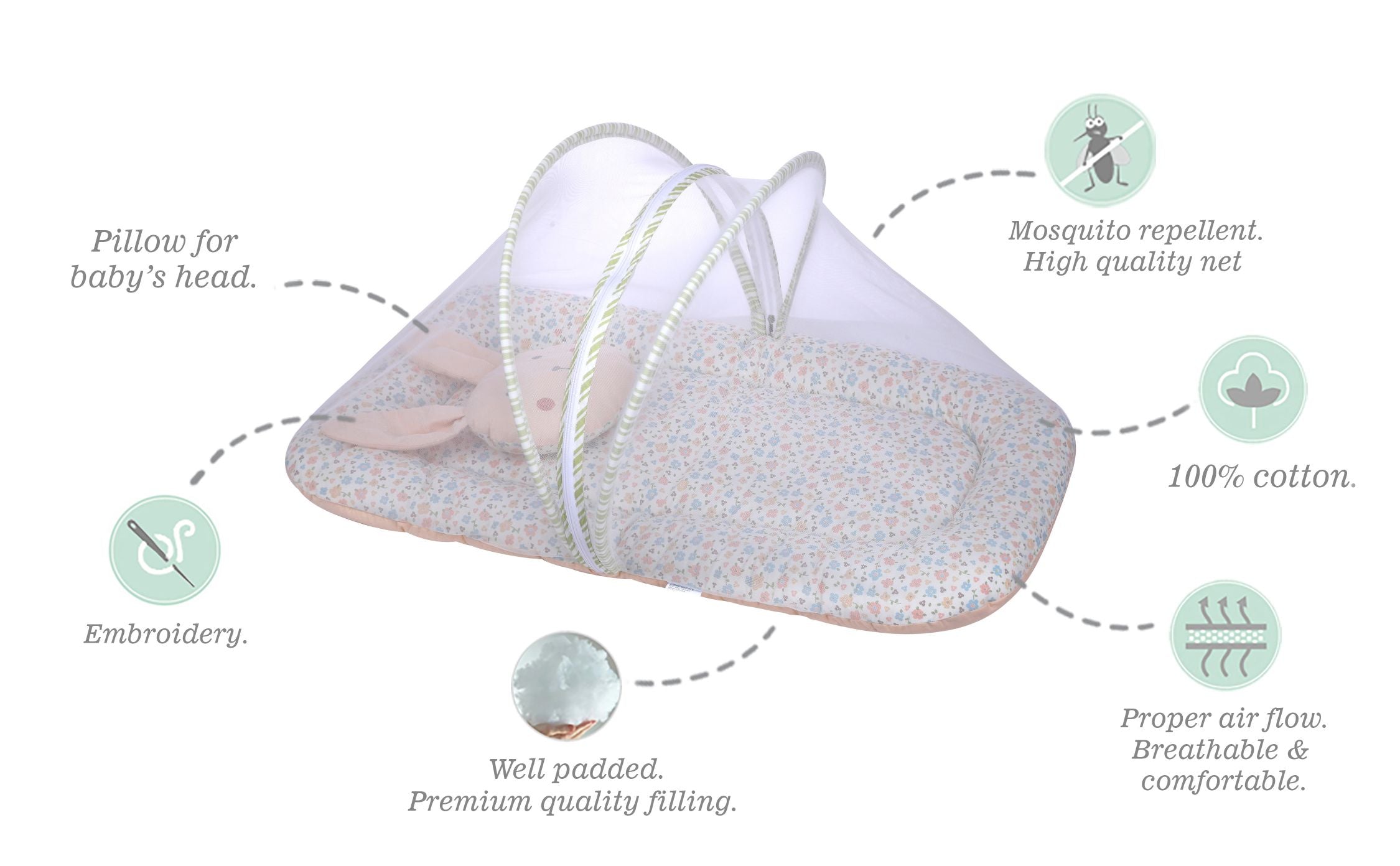 - The built-in mosquito net provides reliable protection against insects and mosquitoes, ensuring your baby can rest peacefully. Designed for optimal airflow, the net creates a secure and cozy environment for your little one