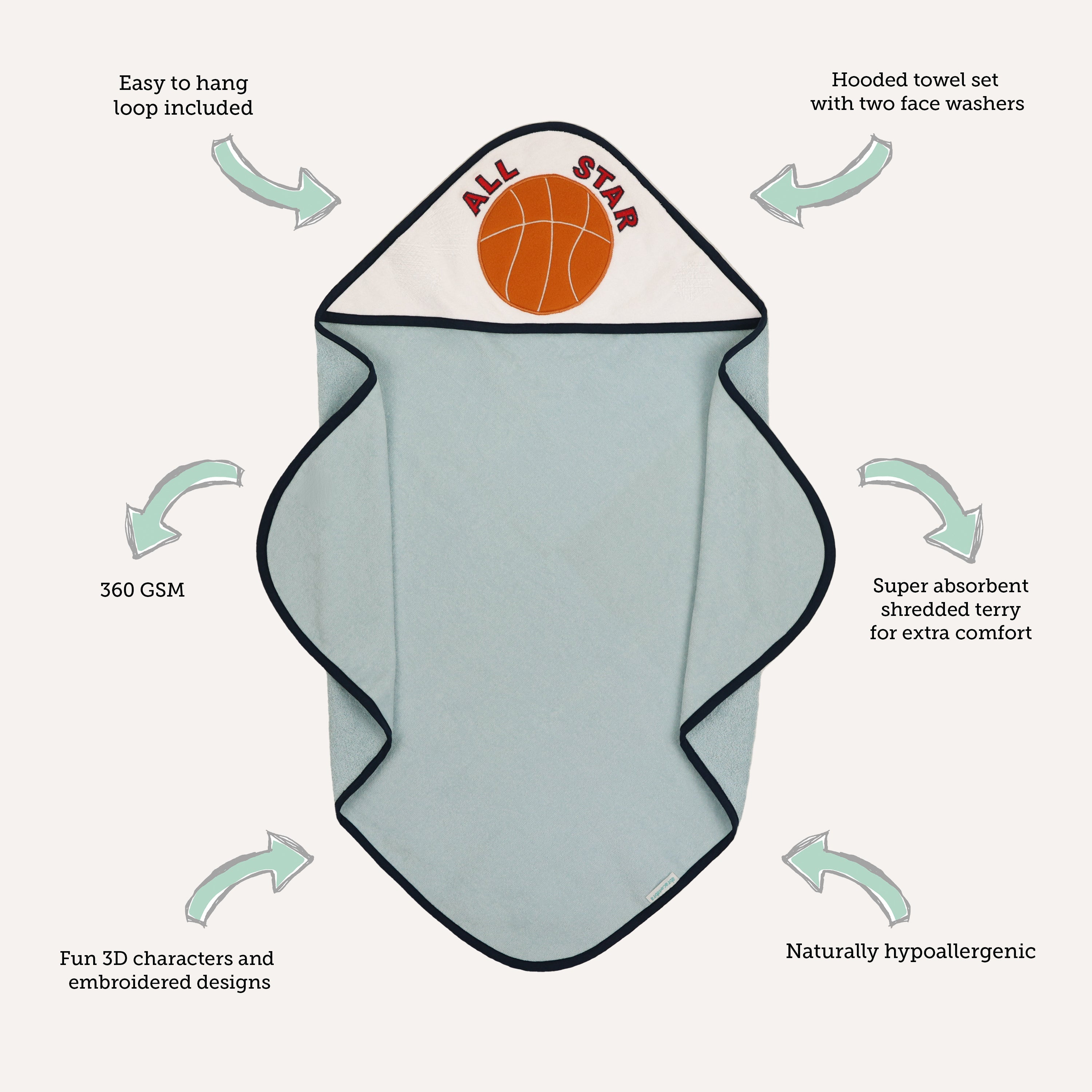 abracadabra Hooded Towel with 2 Face Washers All Star