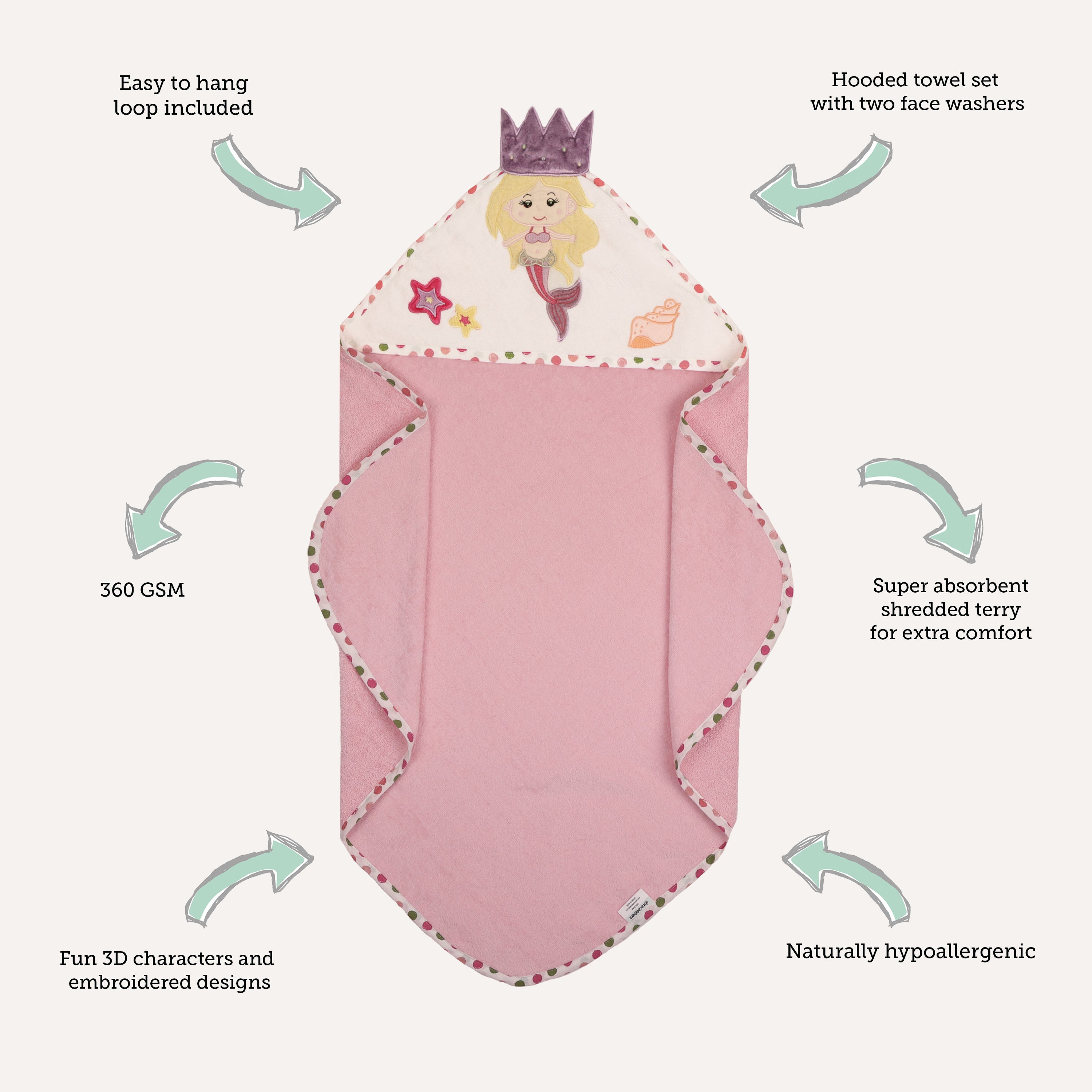 abracadabra Hooded Towel with 2 Face Washers Mermaid