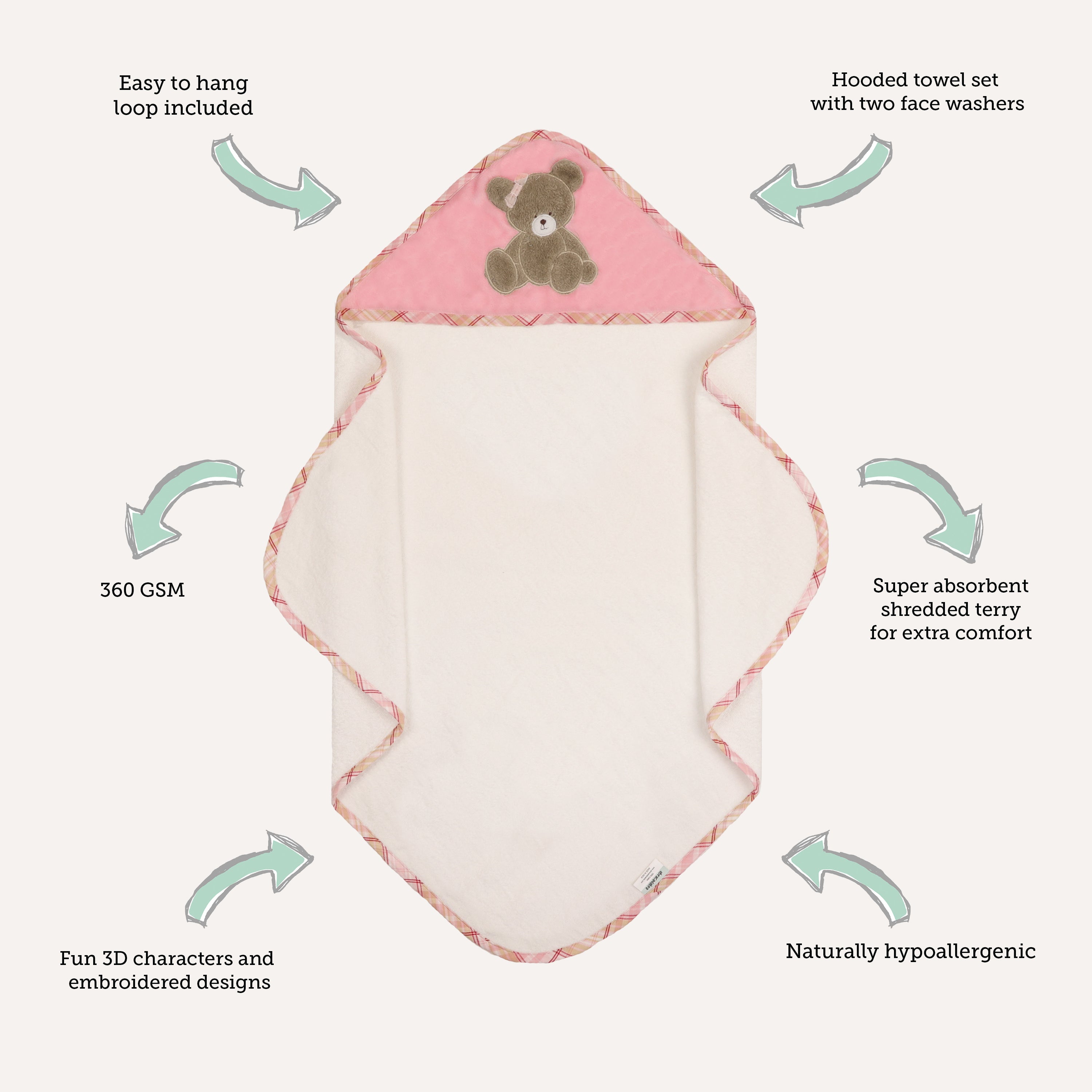abracadabra Hooded Towel with 2 Face Washers Tender Heart