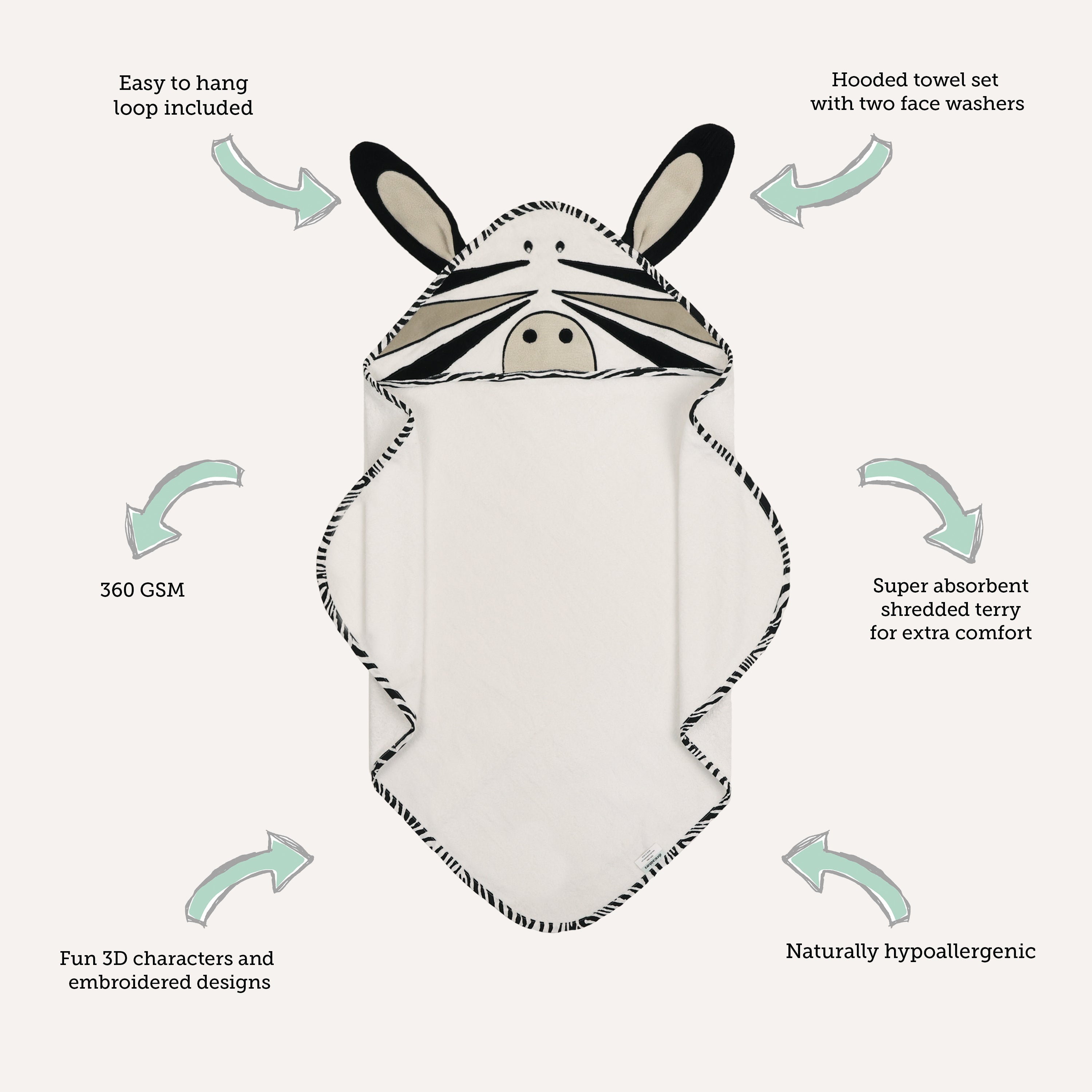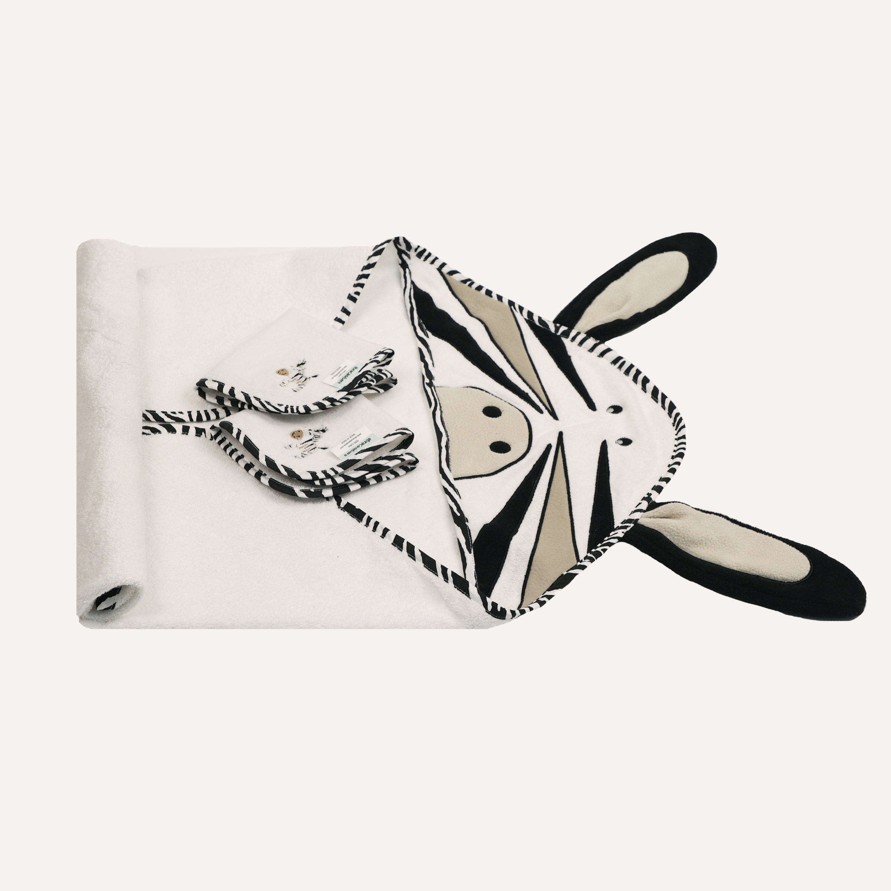 abracadabra Hooded Towel with 2 Face Washers Zebra