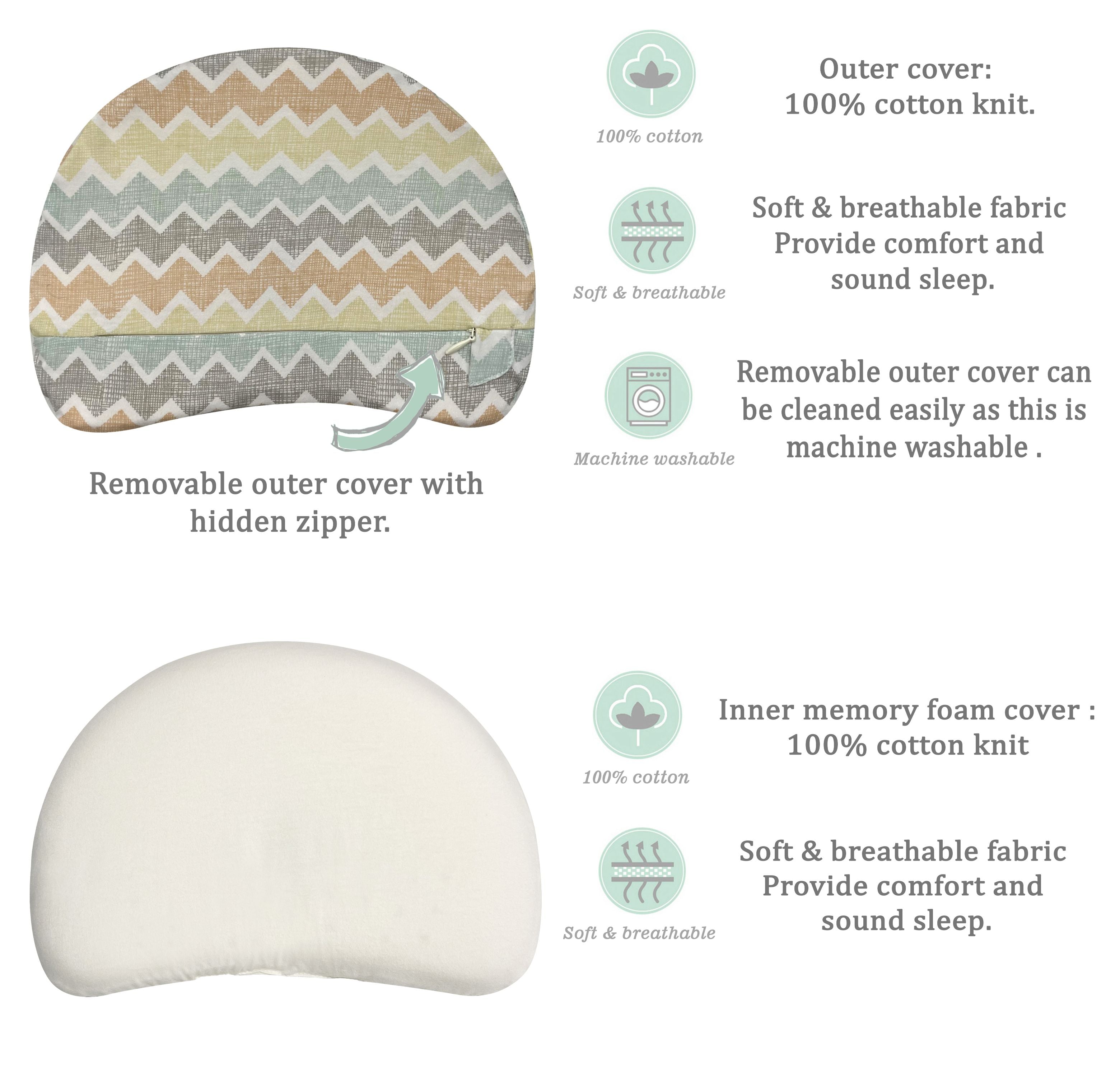 Abracadabra Moon Shape Memory Foam Pillow Zig Zag
