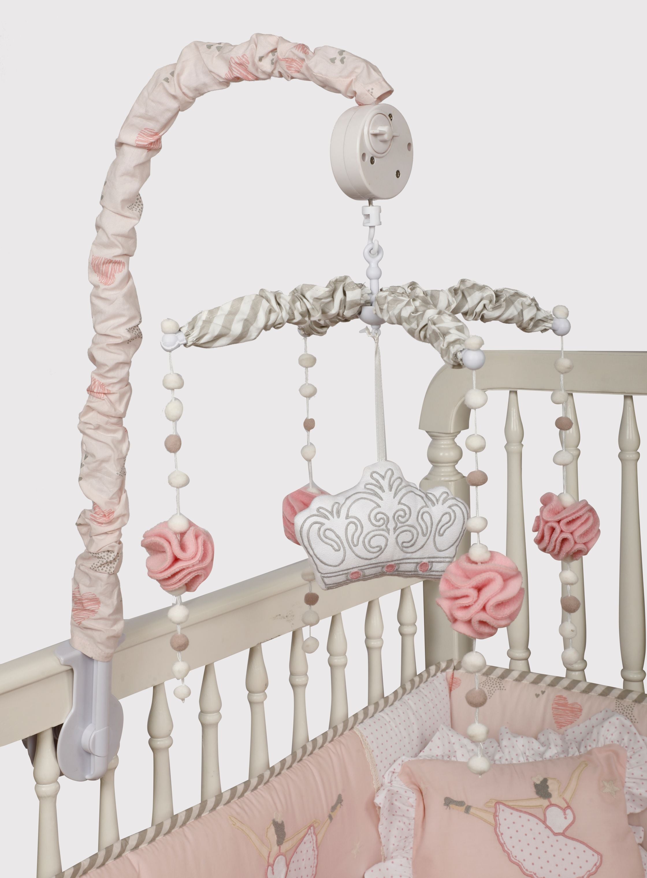 - No screws or complicated procedures needed. Our musical mobile comes in 3 parts, easily attachable to any cot or cradle. The plastic arm is durable and is easy to clean, while fabric toys are machine washable for effortless maintenance