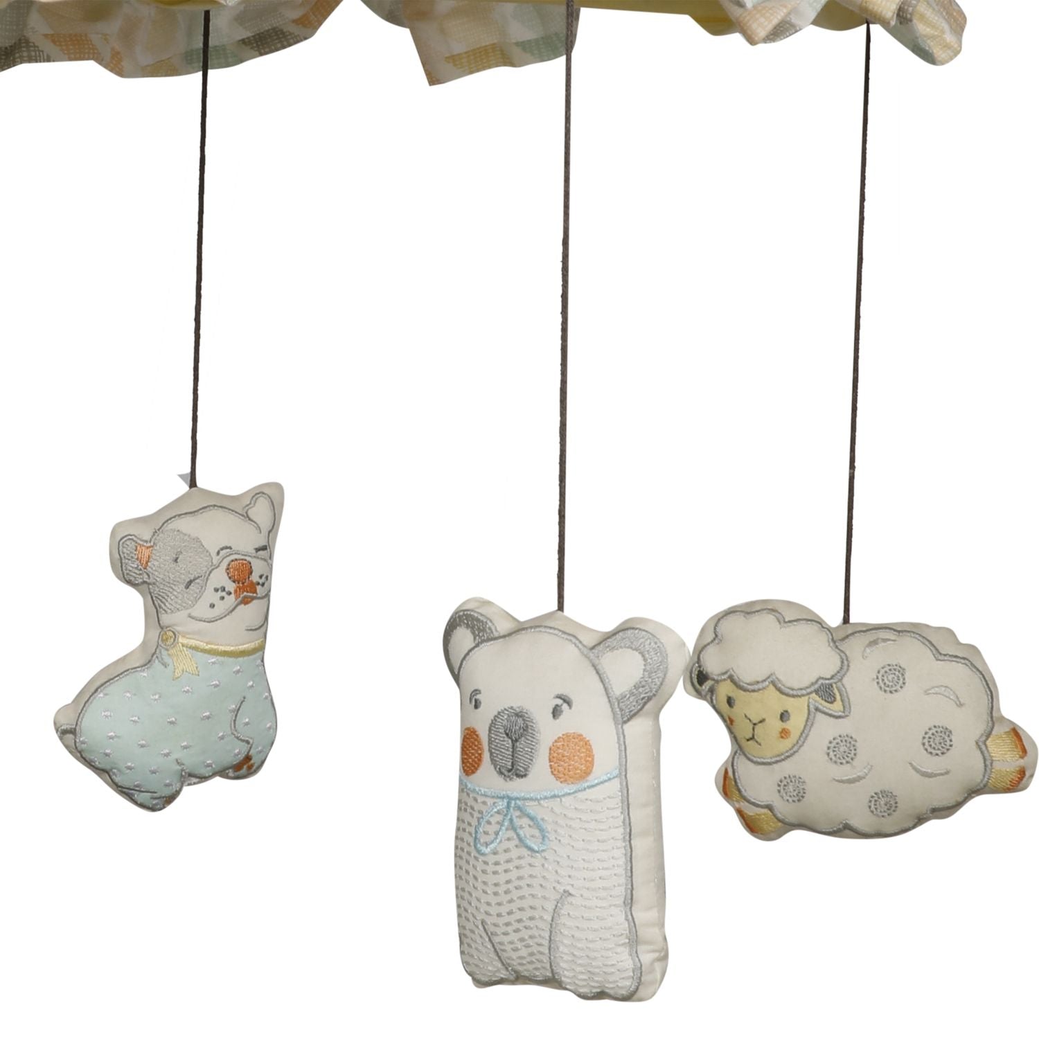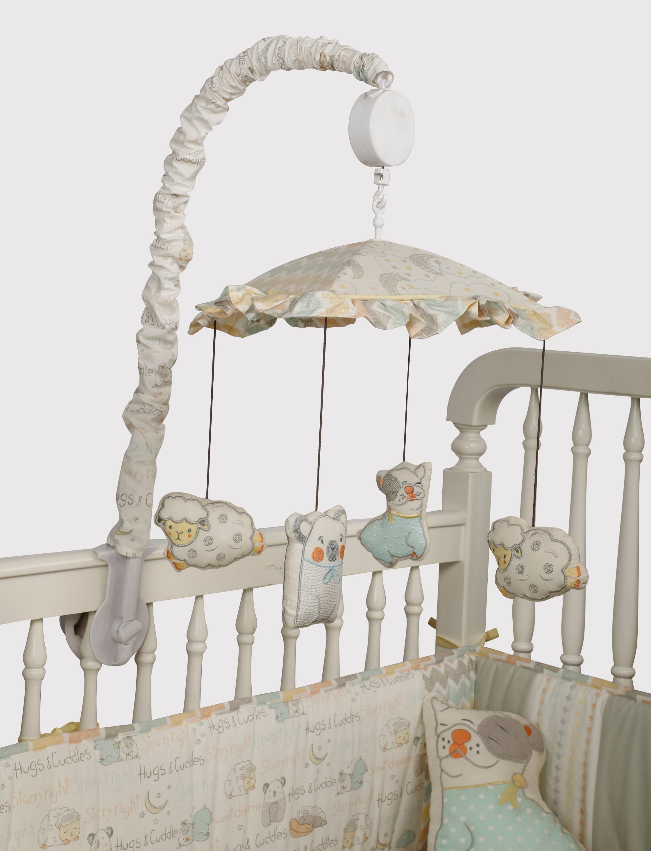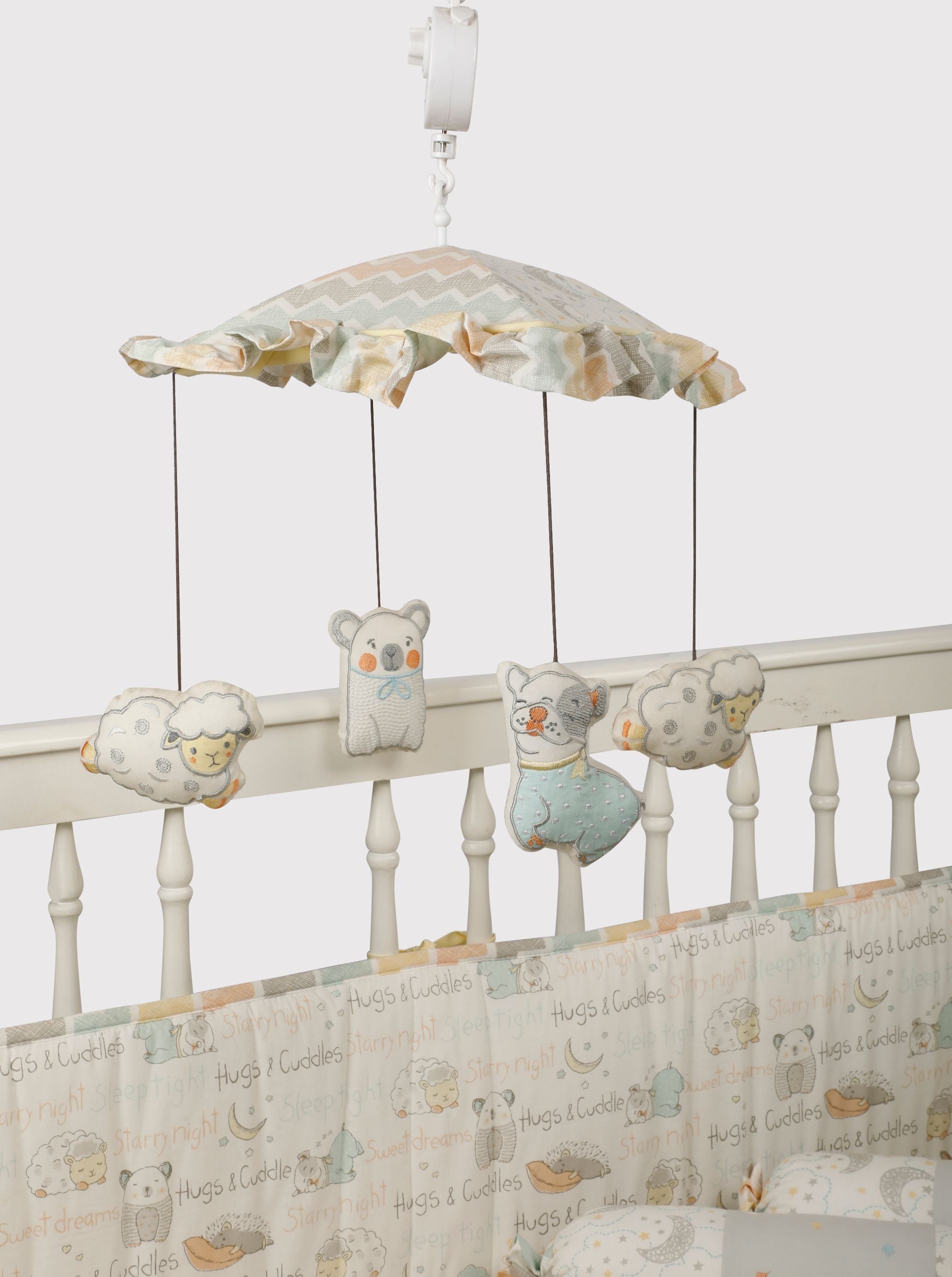 - No screws or complicated procedures needed. Our musical mobile comes in 3 parts, easily attachable to any cot or cradle. The plastic arm is durable and is easy to clean, while fabric toys are machine washable for effortless maintenance