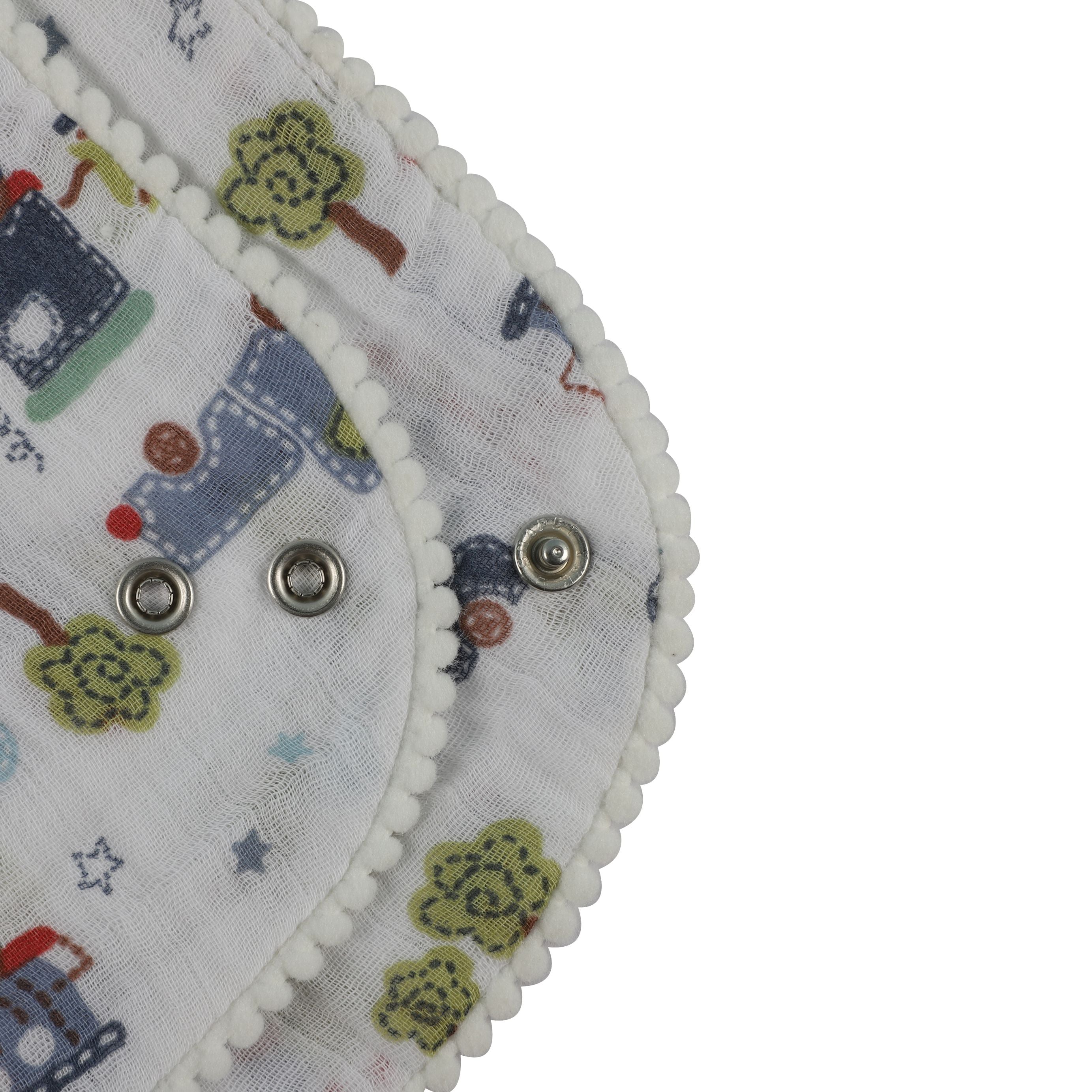 Explore our adorable bibs, crafted with utmost care and attention to detail for a wonderful meal time experience. Crafted from 100% soft cotton muslin to keep your baby dry from dribble and spit - ups which gets softer after every wash