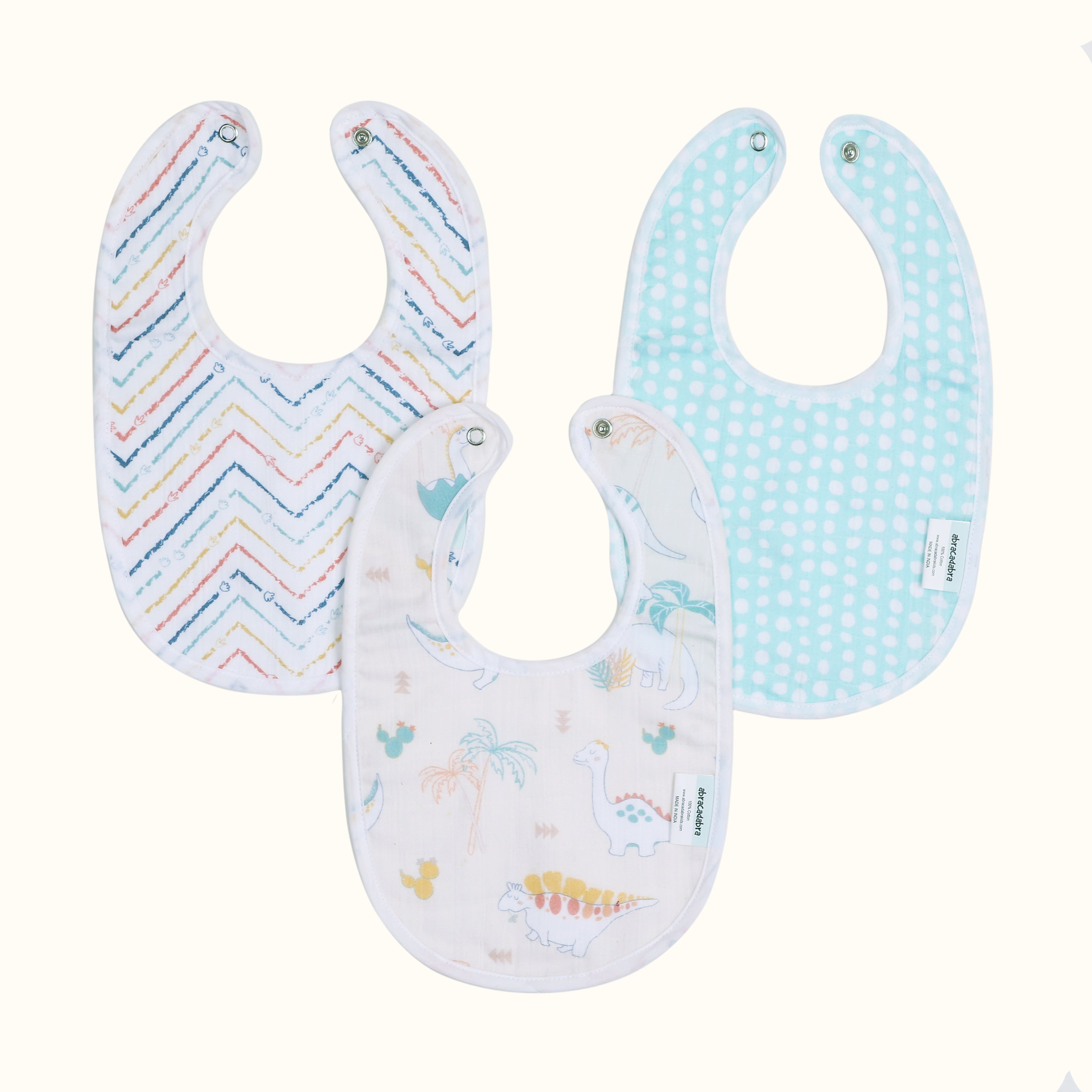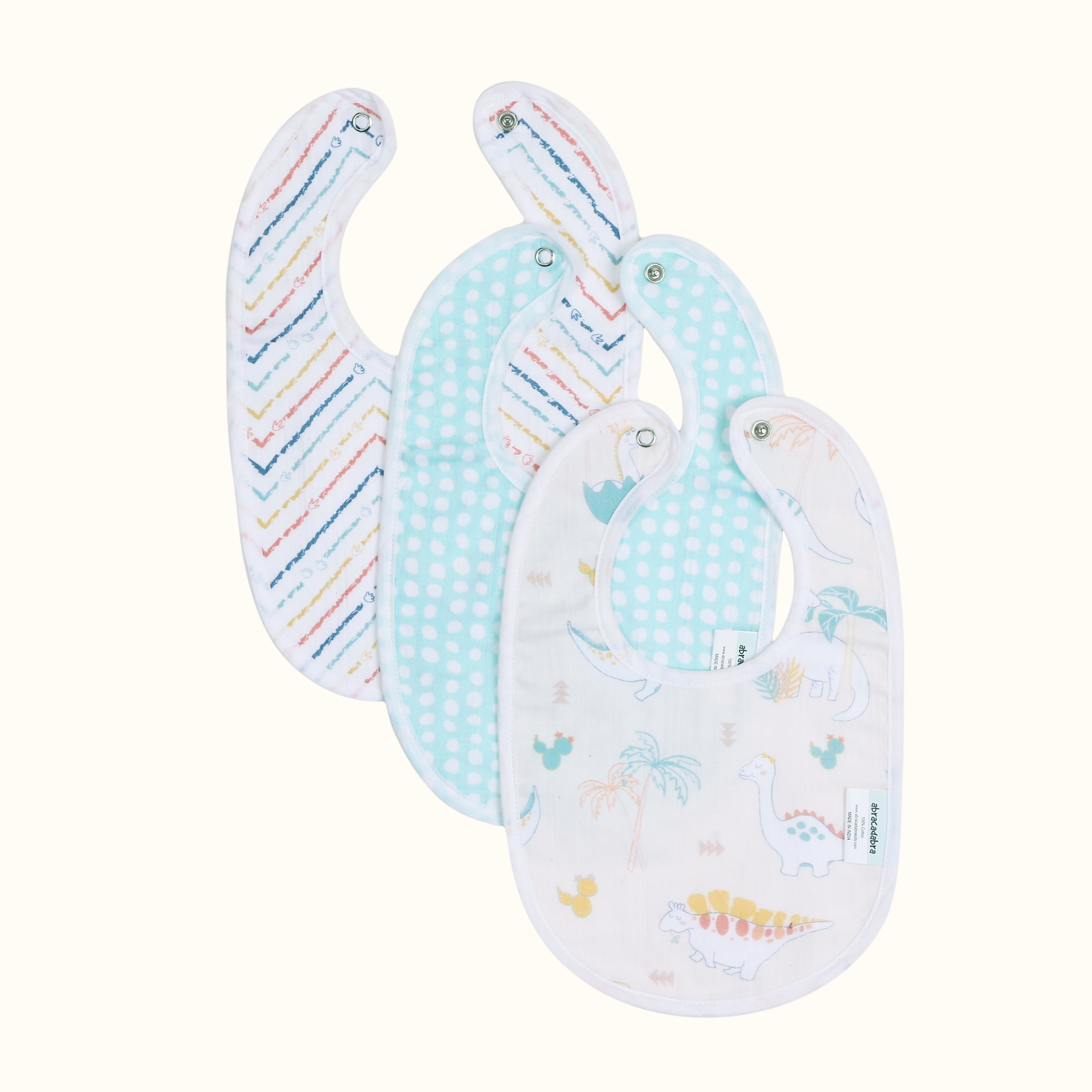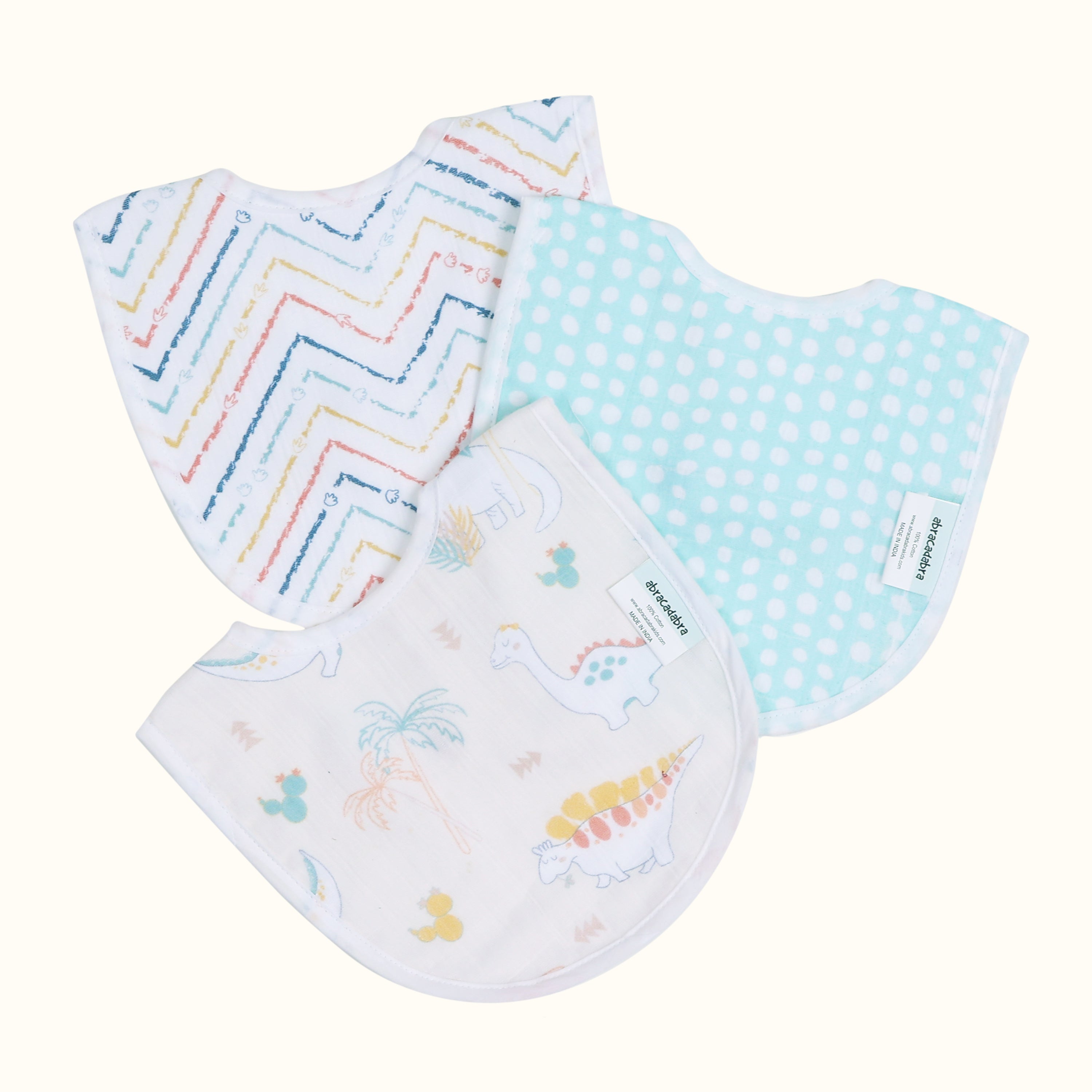 Explore our adorable bibs, crafted with utmost care and attention to detail for a wonderful meal time experience. Crafted from 100% soft cotton muslin to keep your baby dry from dribble and spit - ups which gets softer after every wash