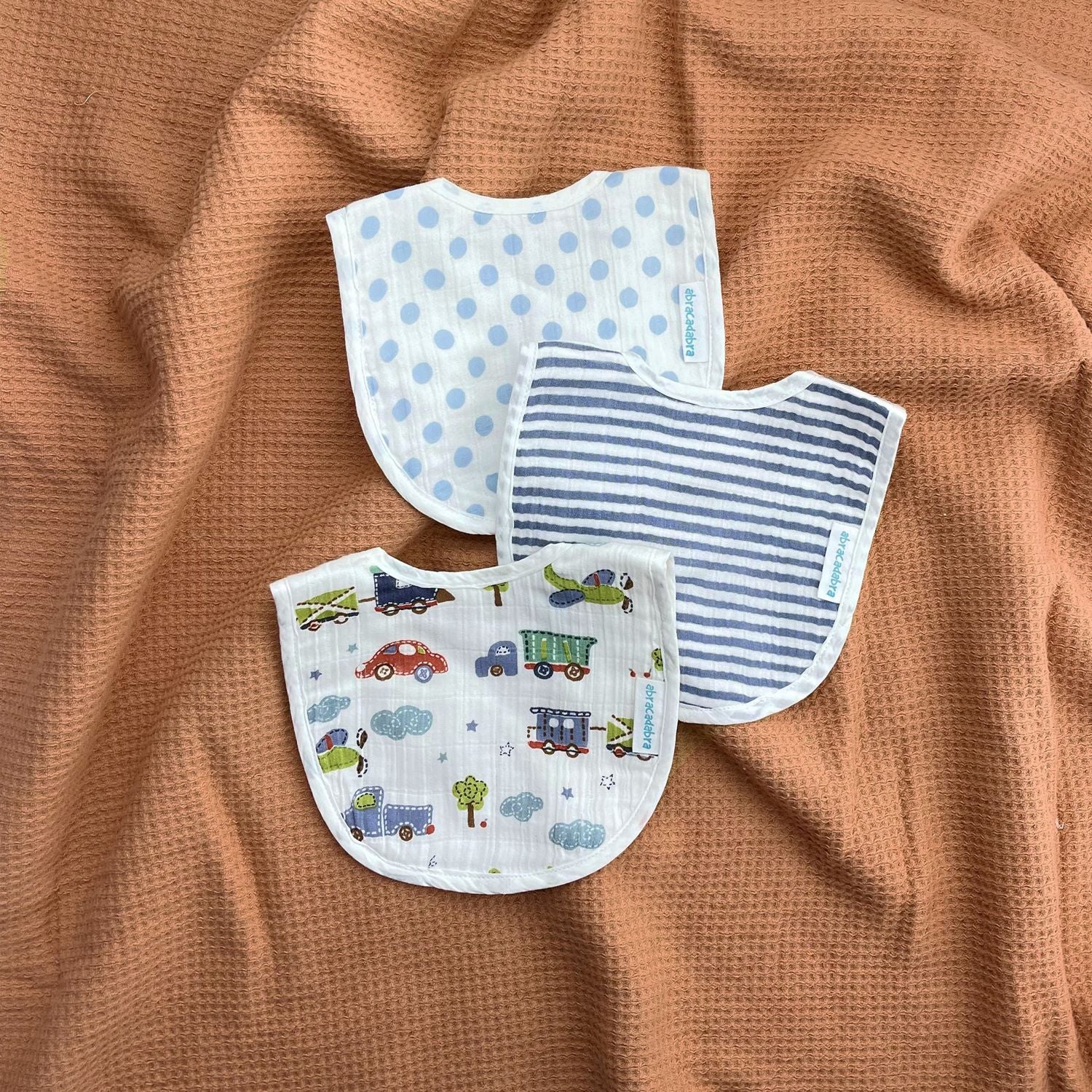 Explore our adorable bibs, crafted with utmost care and attention to detail for a wonderful meal time experience. Crafted from 100% soft cotton muslin to keep your baby dry from dribble and spit - ups which gets softer after every wash
