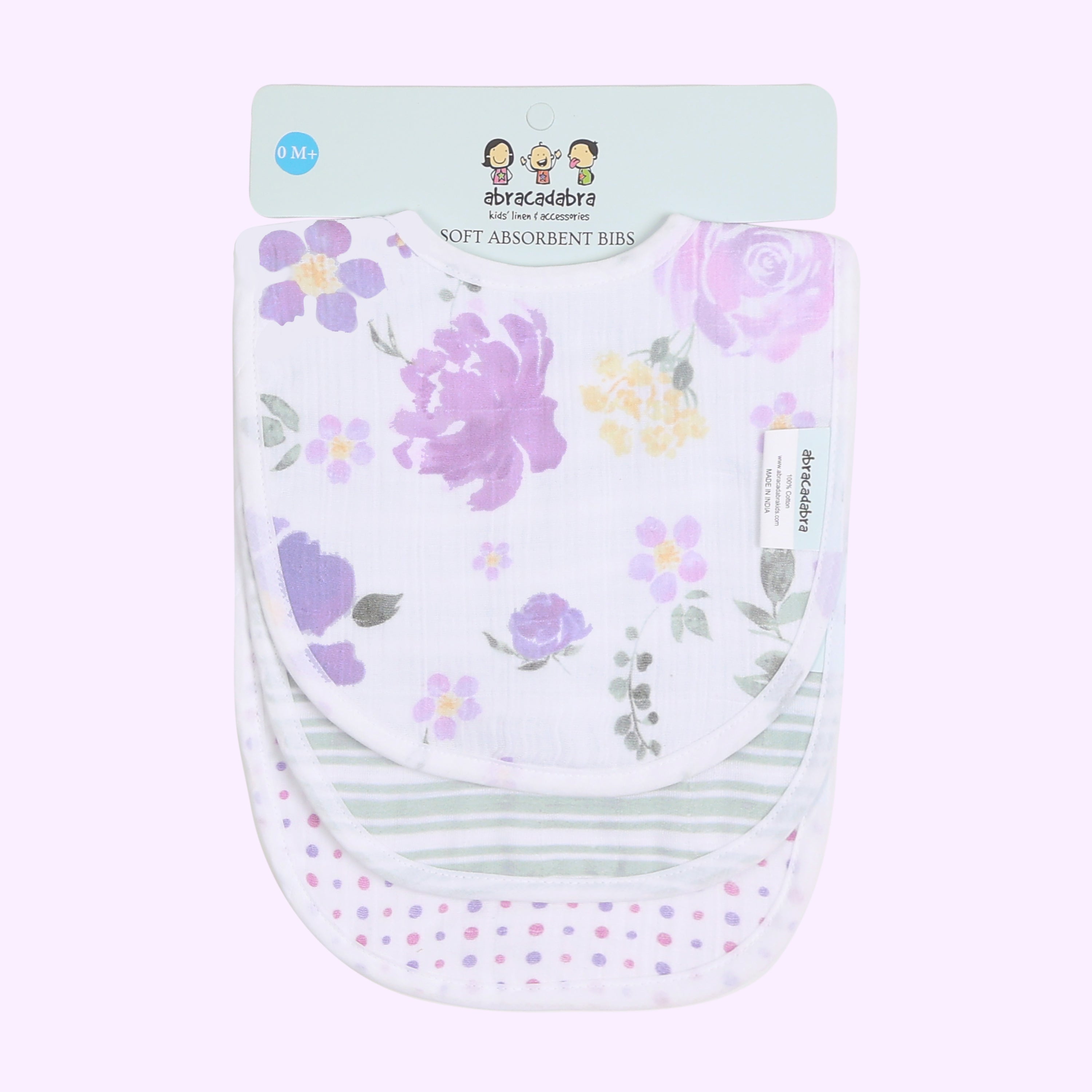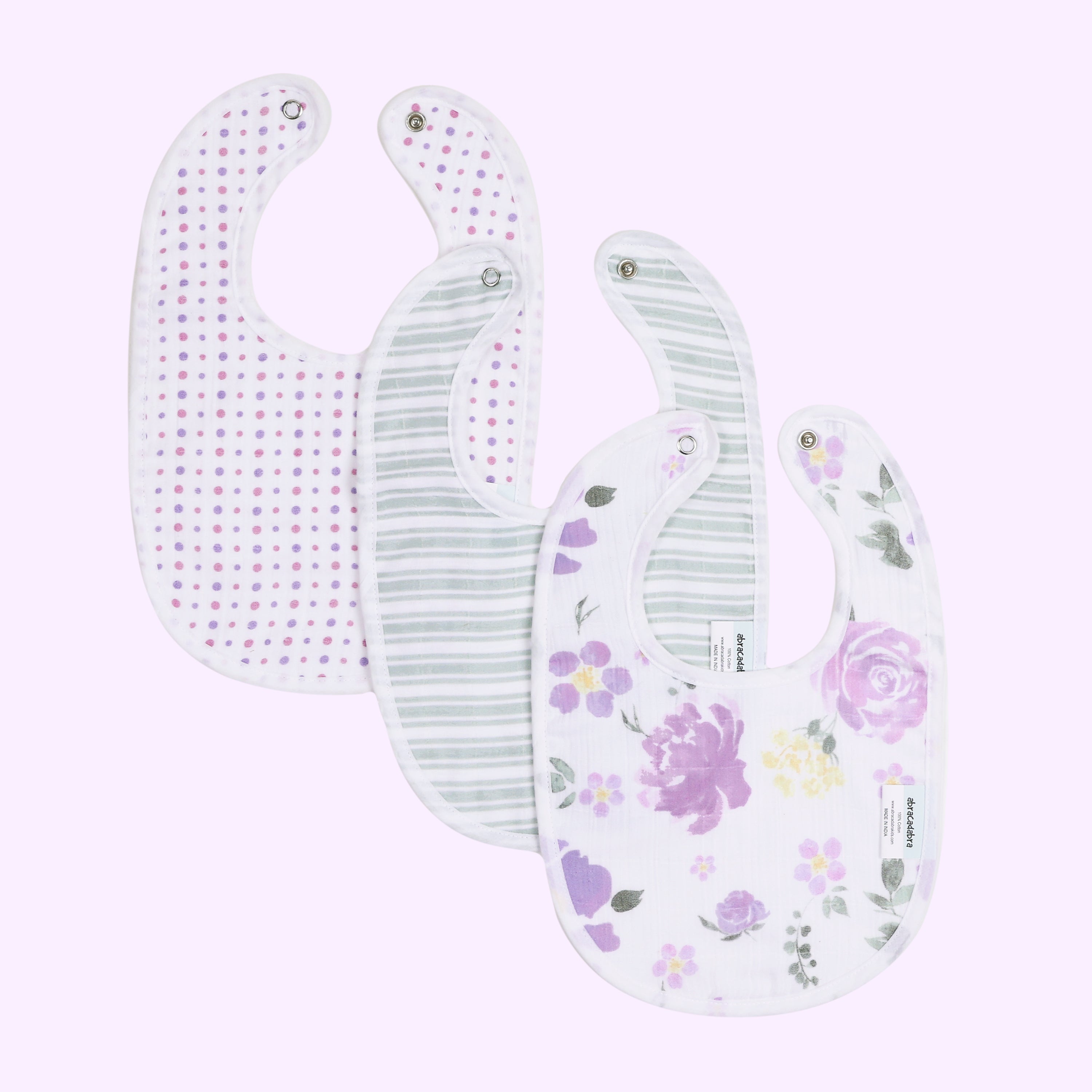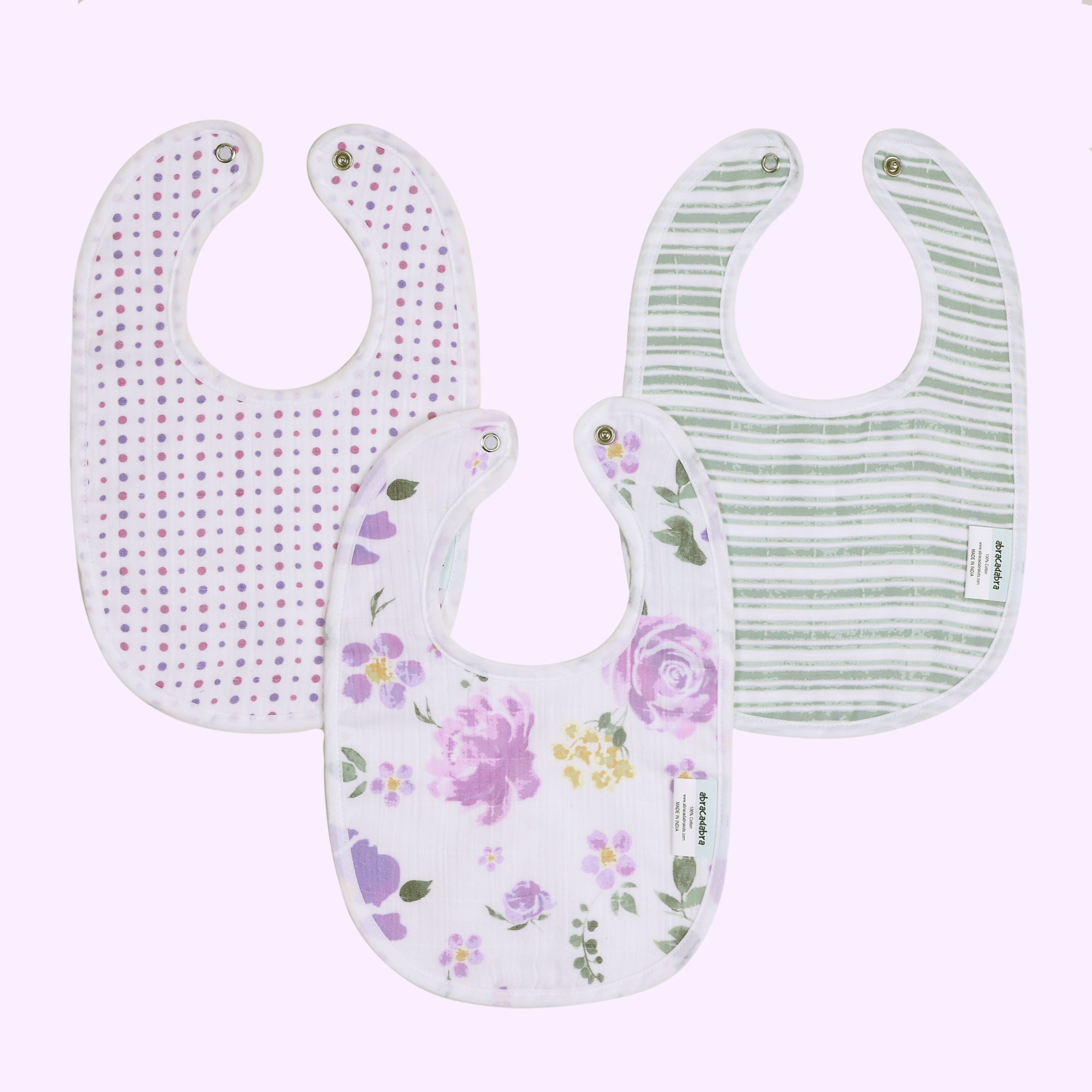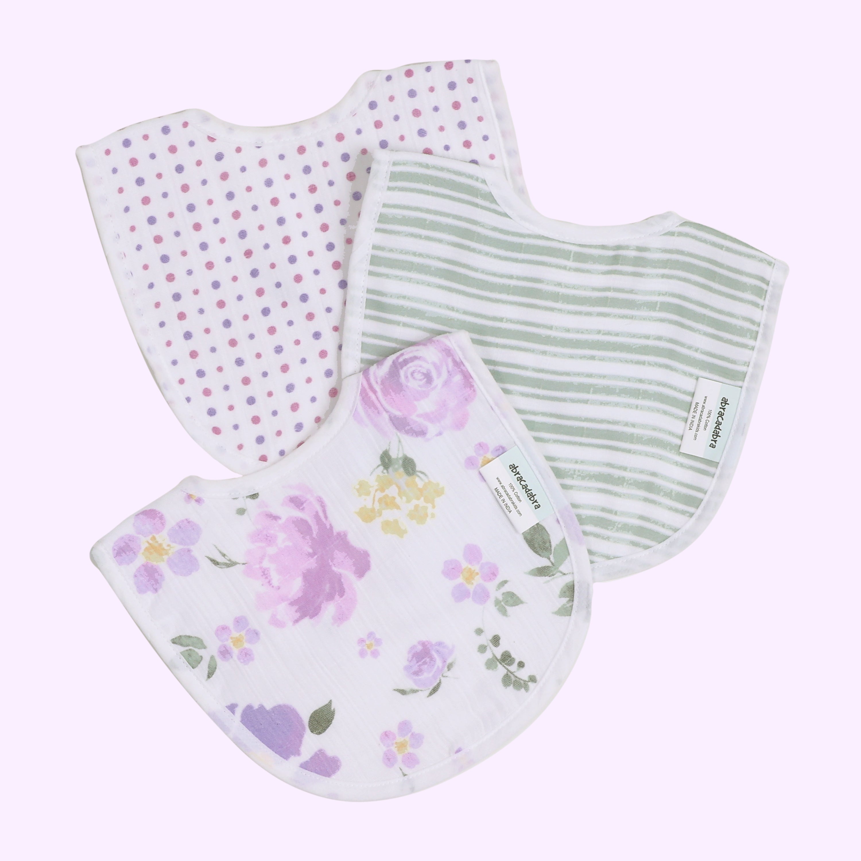 Explore our adorable bibs, crafted with utmost care and attention to detail for a wonderful meal time experience. Crafted from 100% soft cotton muslin to keep your baby dry from dribble and spit - ups which gets softer after every wash
