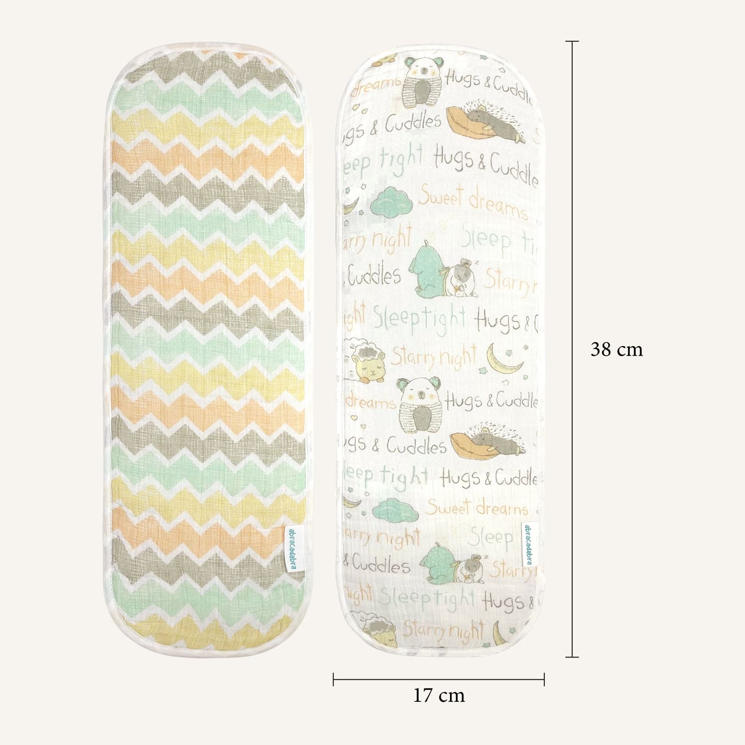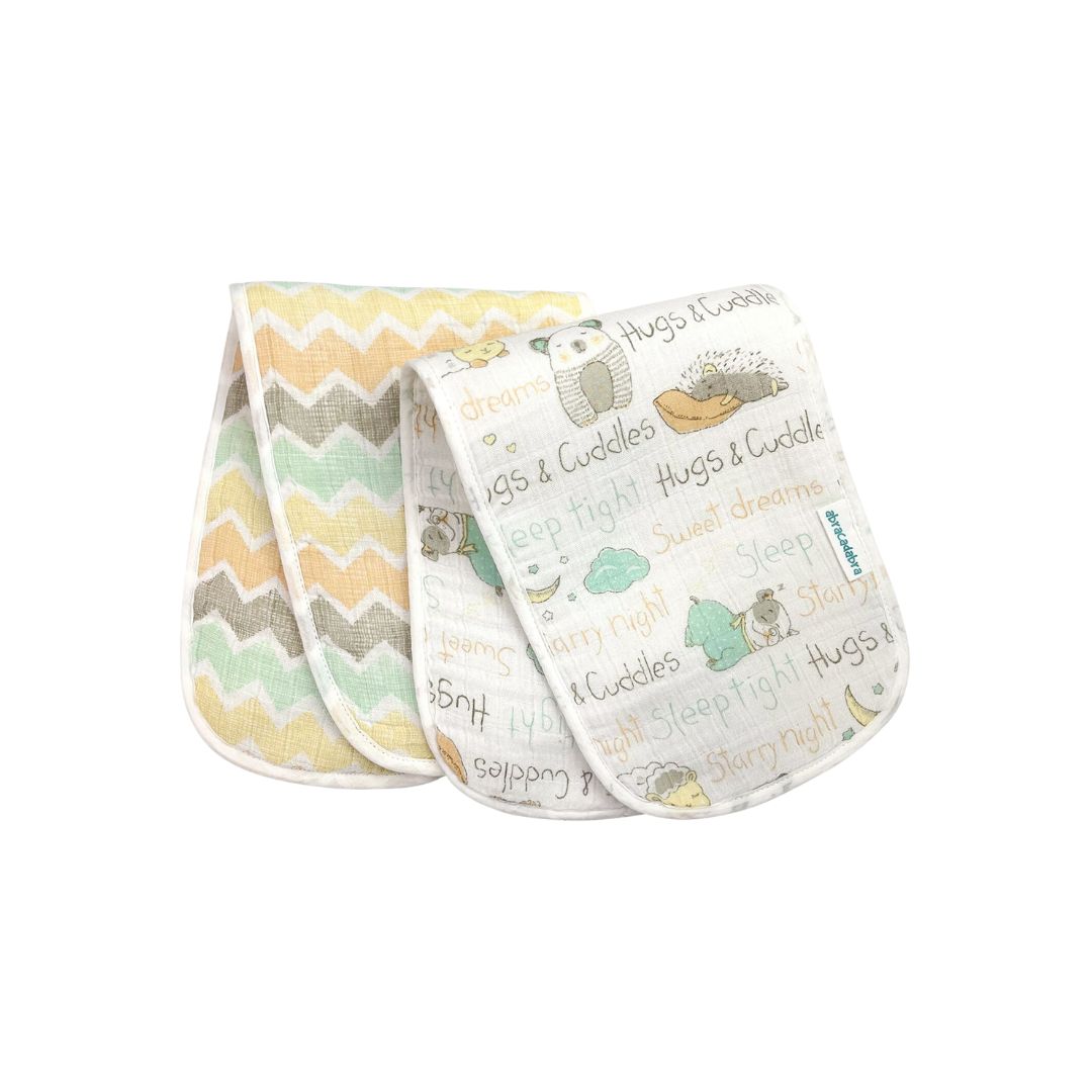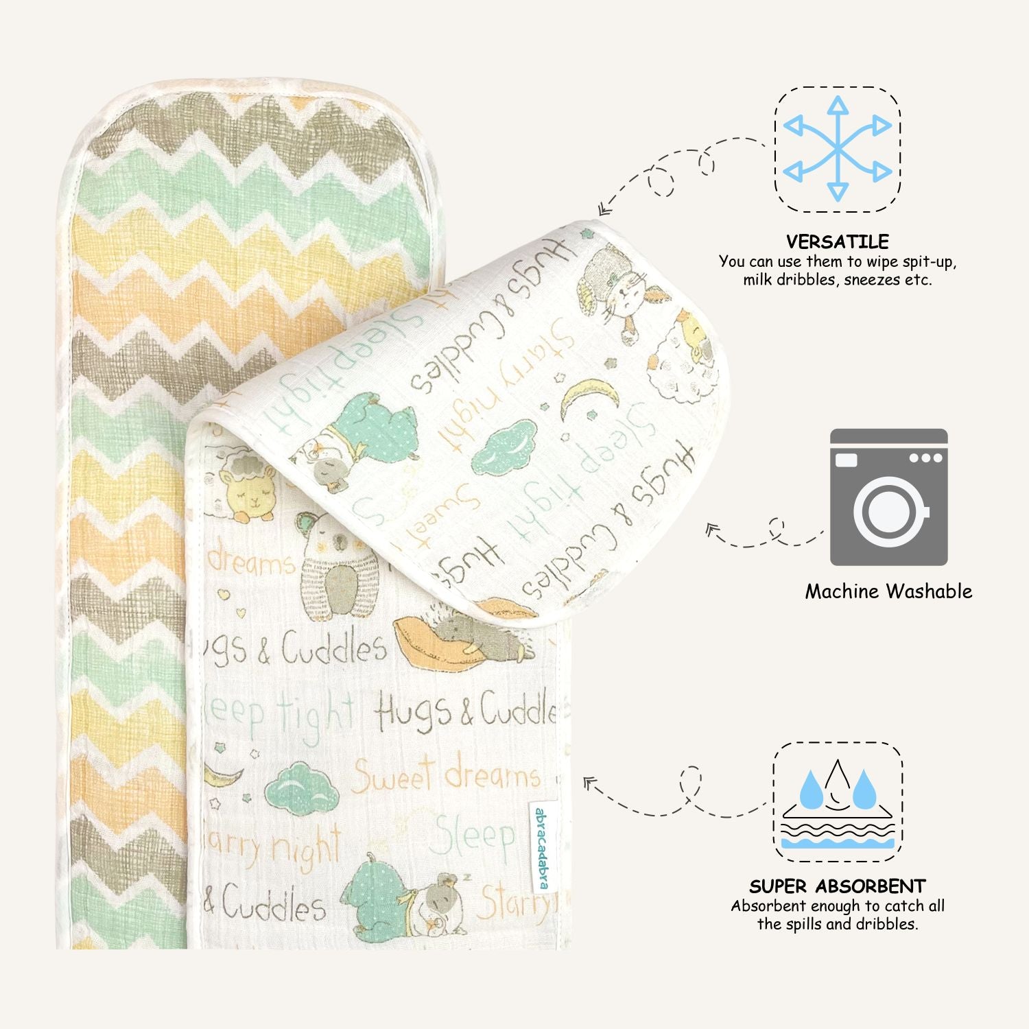 Our super soft four layer muslin burp cloths are lightweight, absorbent and fast drying even after endless washing. These are designed in the ideal size to drape over your shoulder while burping the baby after feeding. Not only will they keep your clothes clean but can be used to clean spit-ups, wipe milk dribbles, sneezes or any other mess. It also has a multi purpose utility, as it can be used as face towels, washcloth, baby bibs and large napkins etc