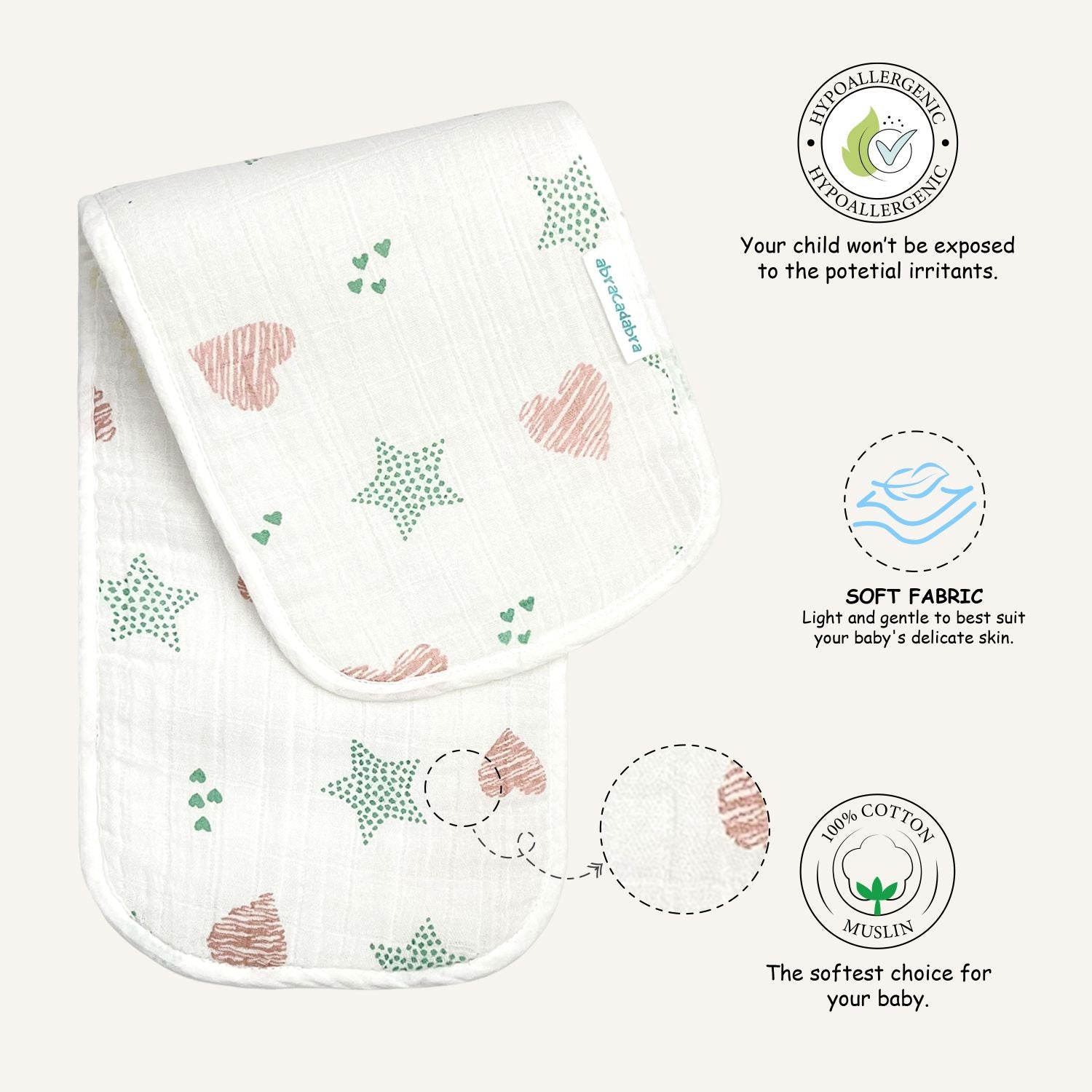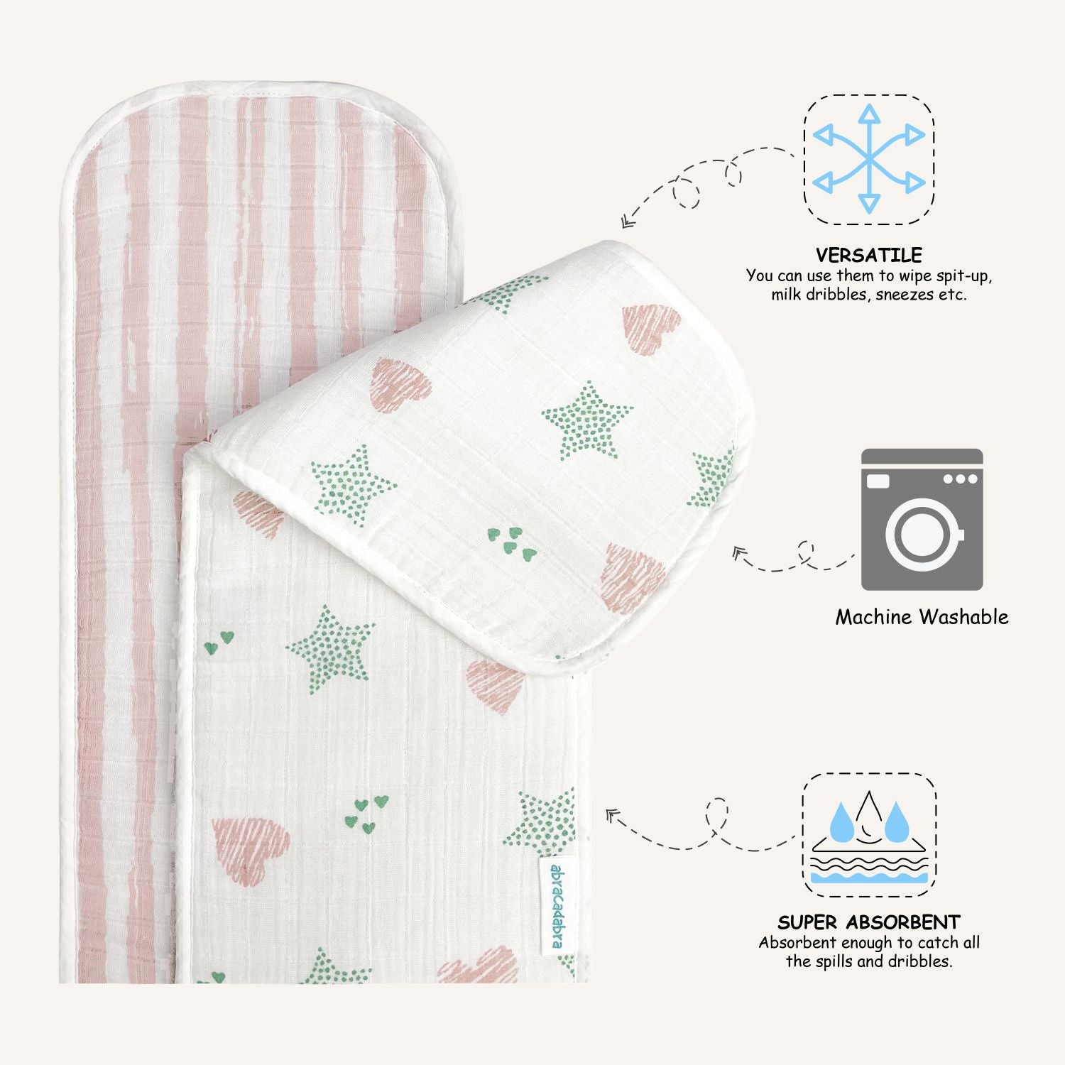 Abracadabra Muslin Burp Pad Stars & Hearts