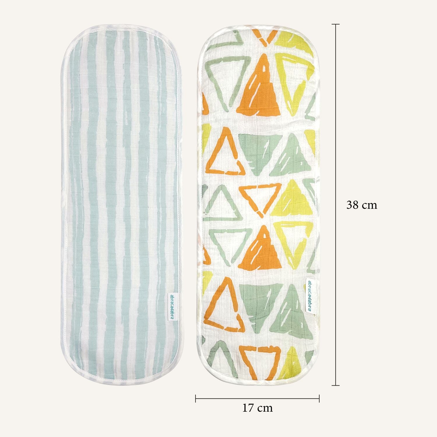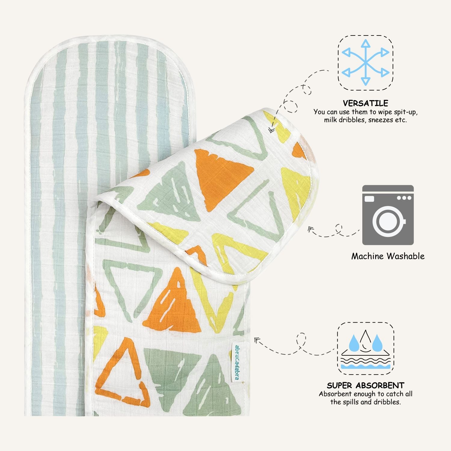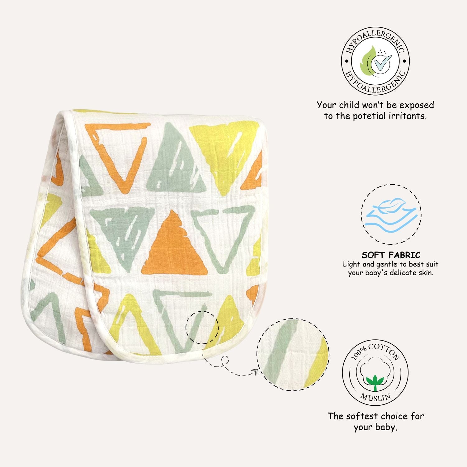 Our super soft four layer muslin burp cloths are lightweight, absorbent and fast drying even after endless washing. These are designed in the ideal size to drape over your shoulder while burping the baby after feeding. Not only will they keep your clothes clean but can be used to clean spit-ups, wipe milk dribbles, sneezes or any other mess. It also has a multi purpose utility, as it can be used as face towels, washcloth, baby bibs and large napkins etc