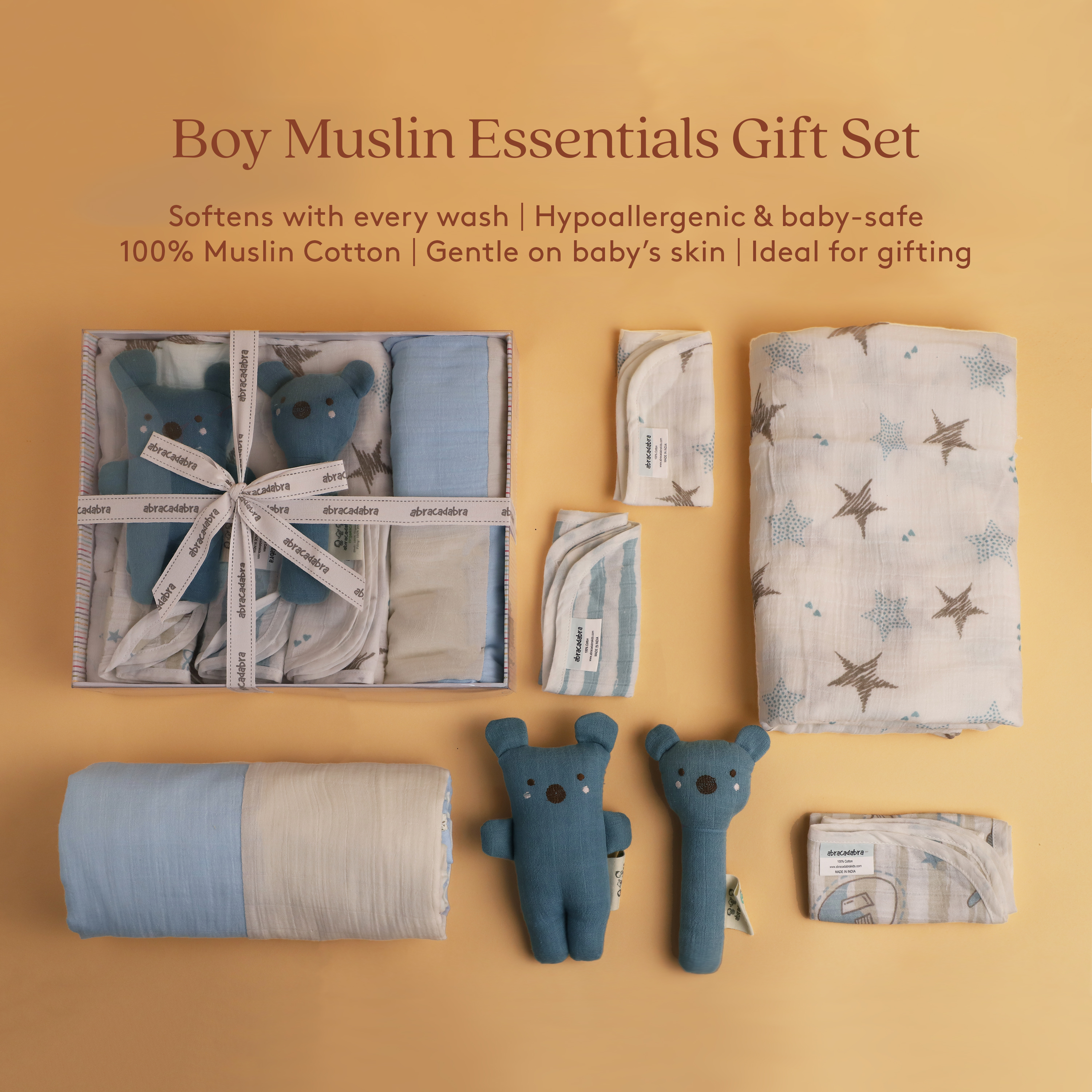 Introducing our Muslin Essential Gift Box—a thoughtfully curated collection of muslin essentials for babies aged 0-3 years. This delightful box celebrates special milestones with the perfect blend of functionality and style. Made from soft, premium-quality muslin, each carefully selected item combines practicality with irresistible cuteness, ensuring your little one enjoys both comfort and joy. Celebrate every precious moment with this beautiful gift box, crafted to create lasting memories.