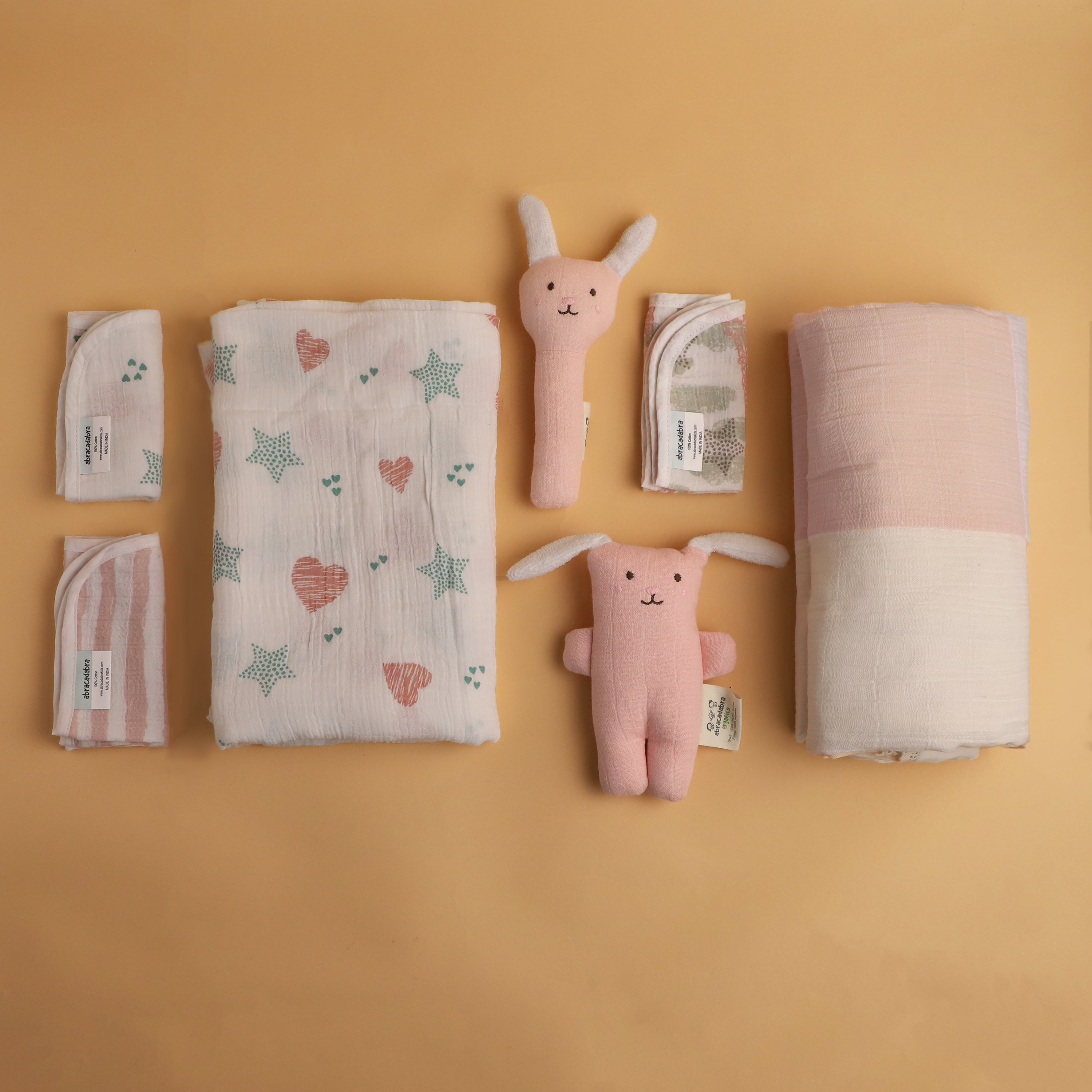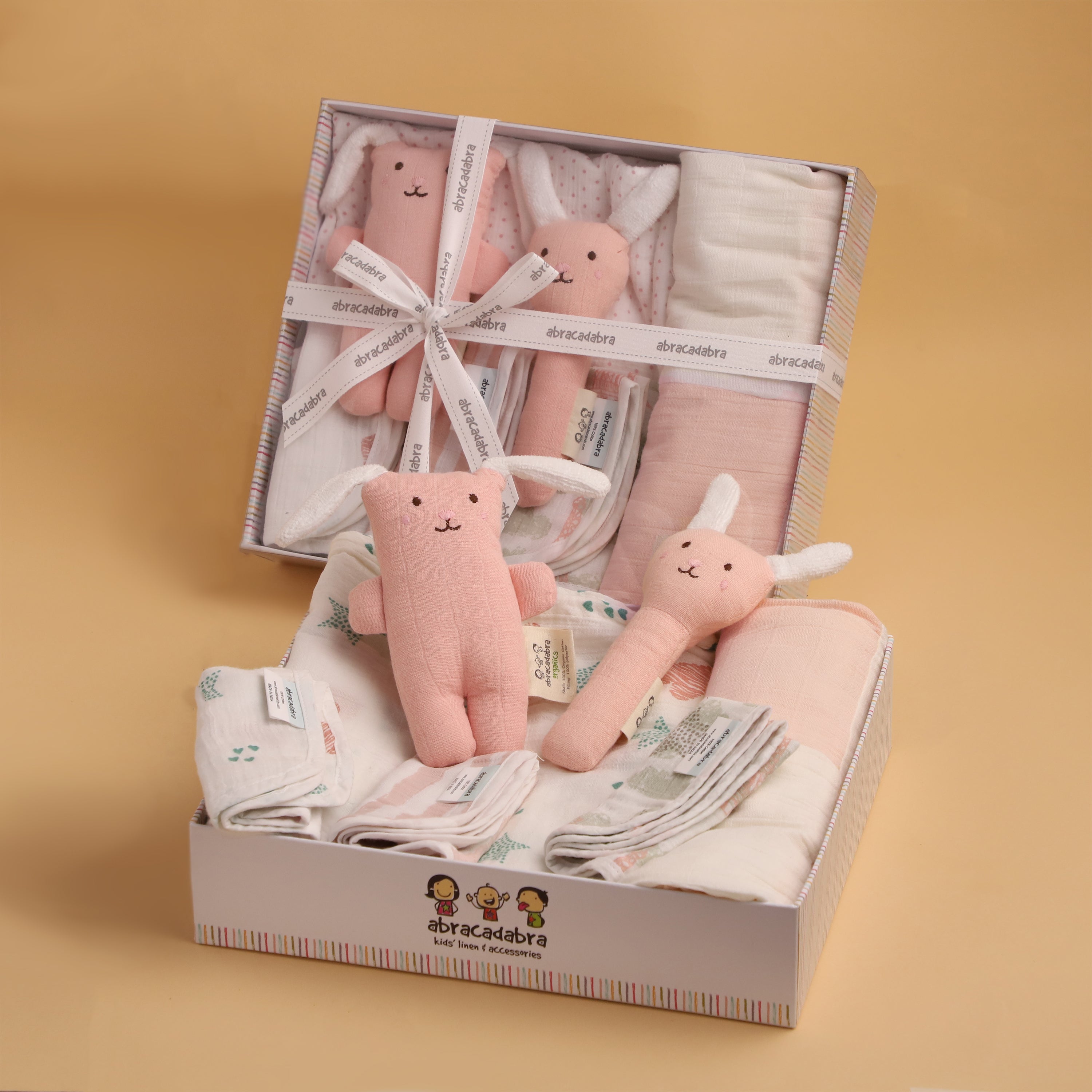 Introducing our Muslin Essential Gift Box—a thoughtfully curated collection of muslin essentials for babies aged 0-3 years. This delightful box celebrates special milestones with the perfect blend of functionality and style. Made from soft, premium-quality muslin, each carefully selected item combines practicality with irresistible cuteness, ensuring your little one enjoys both comfort and joy. Celebrate every precious moment with this beautiful gift box, crafted to create lasting memories.