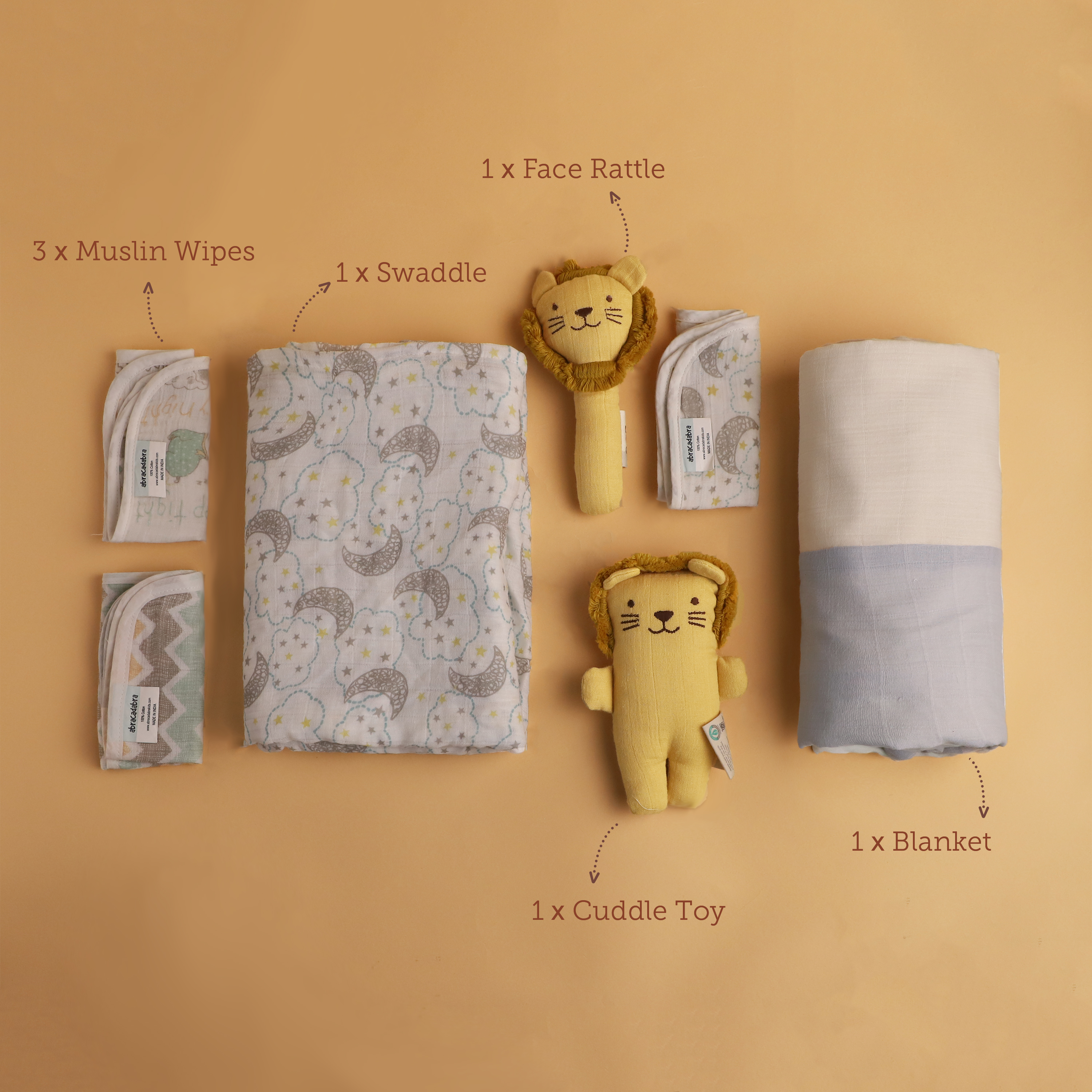 Introducing our Muslin Essential Gift Box—a thoughtfully curated collection of muslin essentials for babies aged 0-3 years. This delightful box celebrates special milestones with the perfect blend of functionality and style. Made from soft, premium-quality muslin, each carefully selected item combines practicality with irresistible cuteness, ensuring your little one enjoys both comfort and joy. Celebrate every precious moment with this beautiful gift box, crafted to create lasting memories.