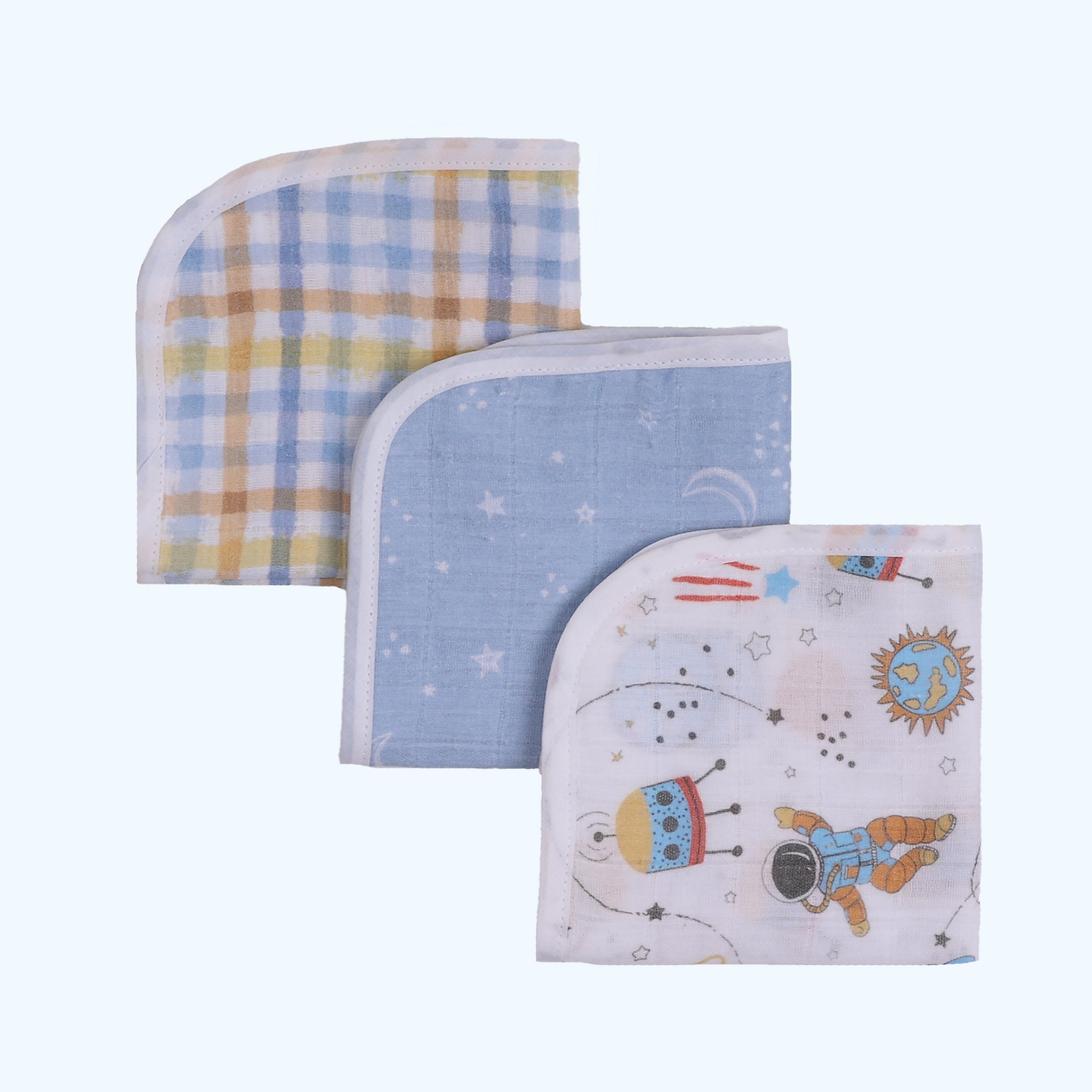 Our face wipes are crafted from 100% natural muslin fabric, ensuring a soft and gentle touch on the baby's skin. They are hypo allergenic, delicate and get softer with every wash; making them ideal for new borns and toddlers. The wipes are absorbent and make sure meal-time remains clean and tidy. Available in a variety of colourful themes and designs