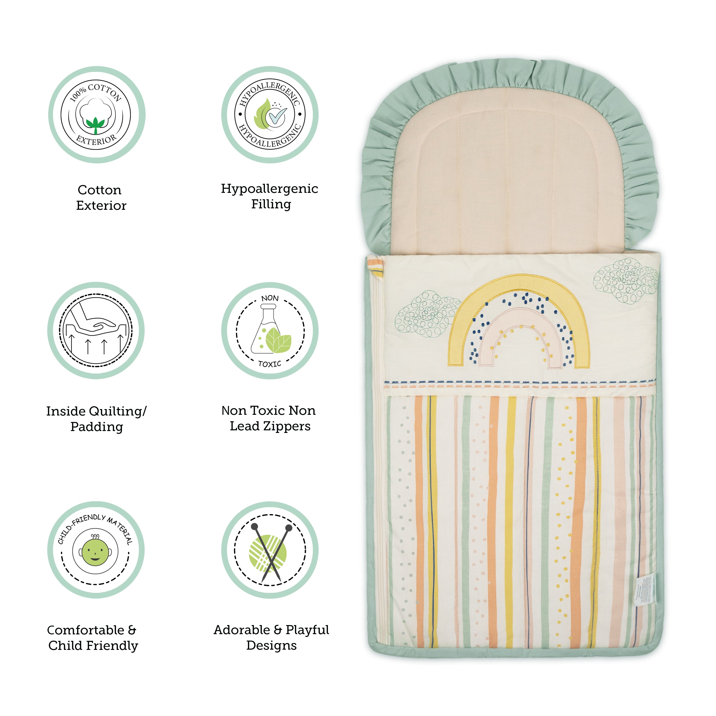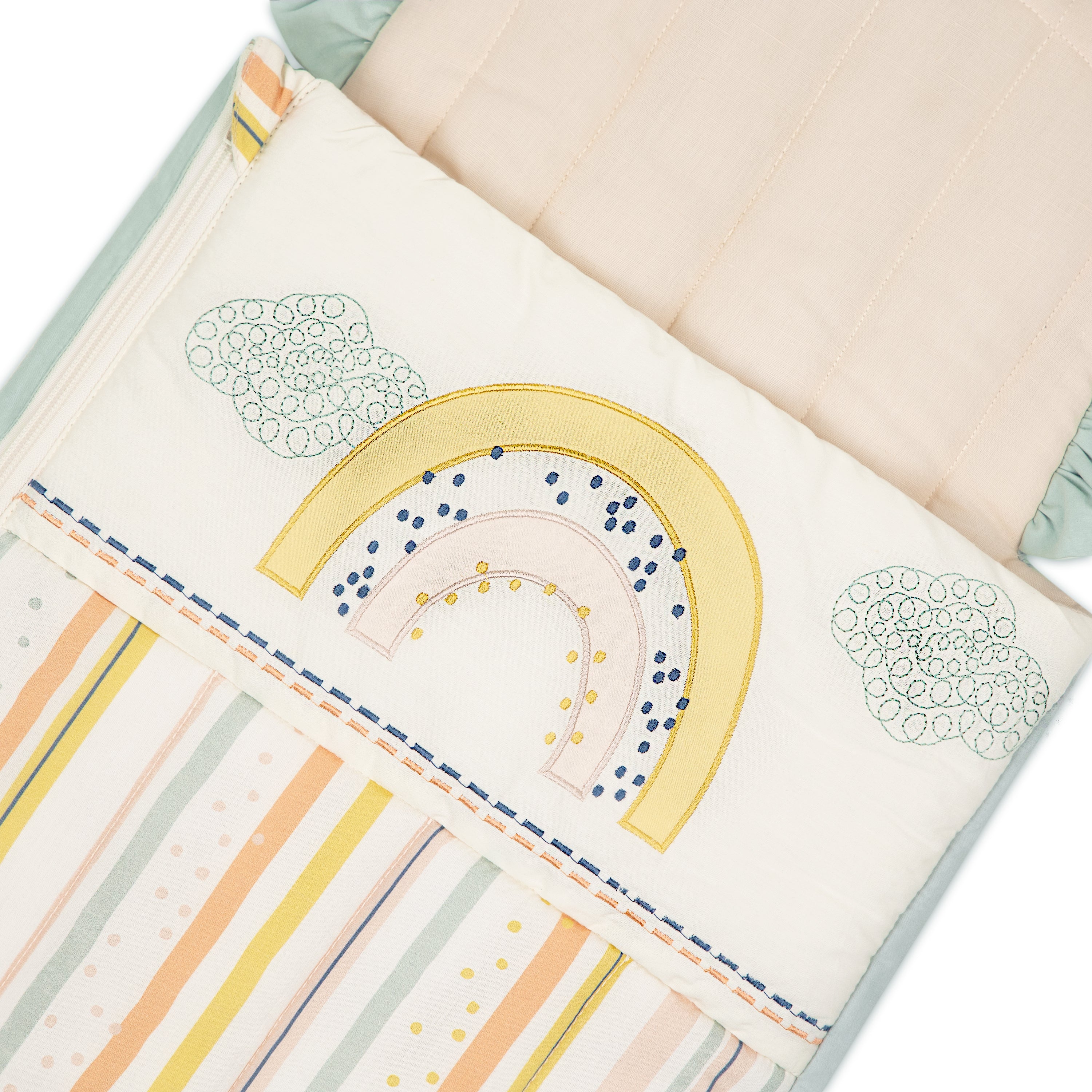 Introducing our delightful nest bag - where cute embroidery and playful prints come together to bring joy to your little one’s space! Perfectly designed to complement any blanket or bedding product. This charming addition will infuse your baby’s surrounding with vibrant colors and cheerful vibes