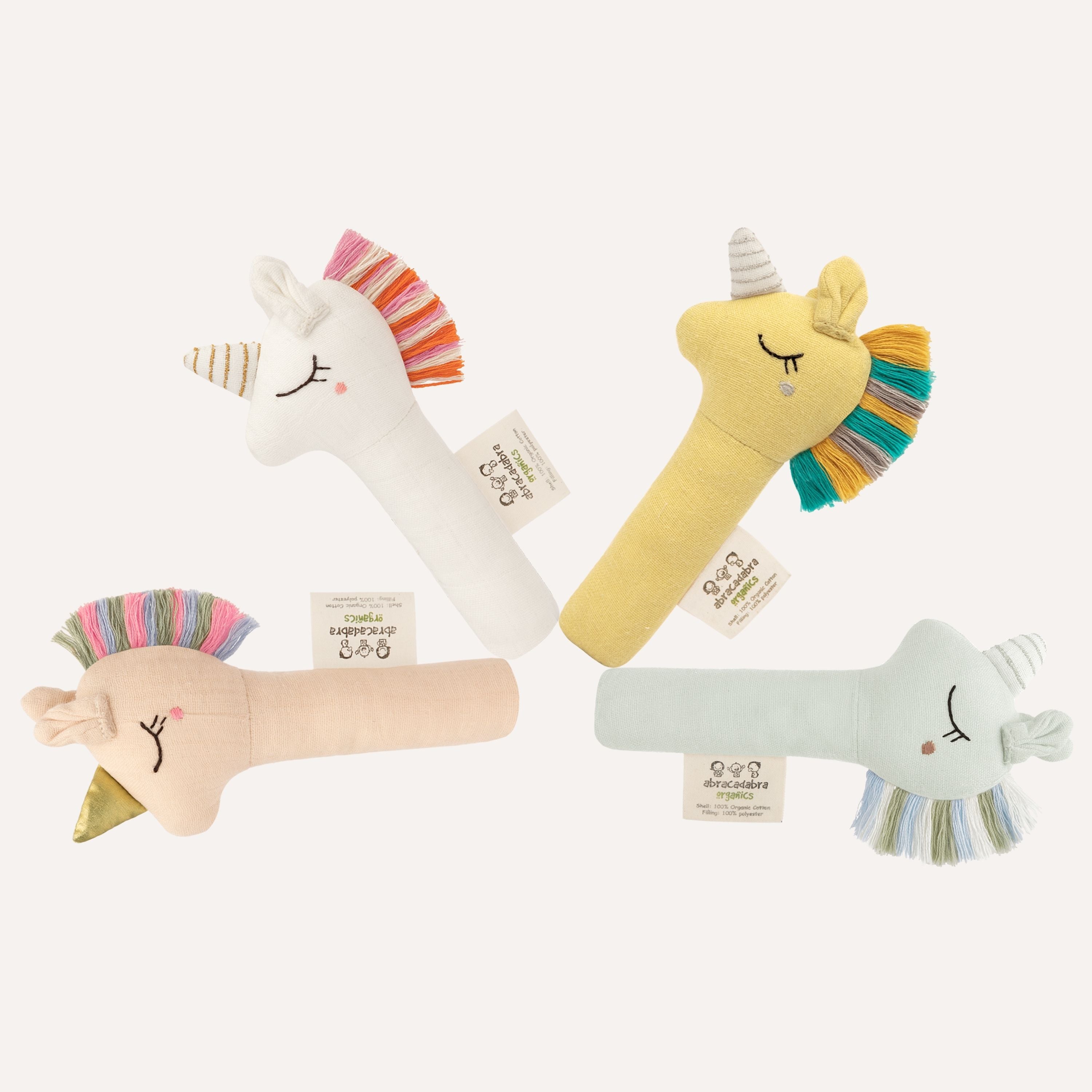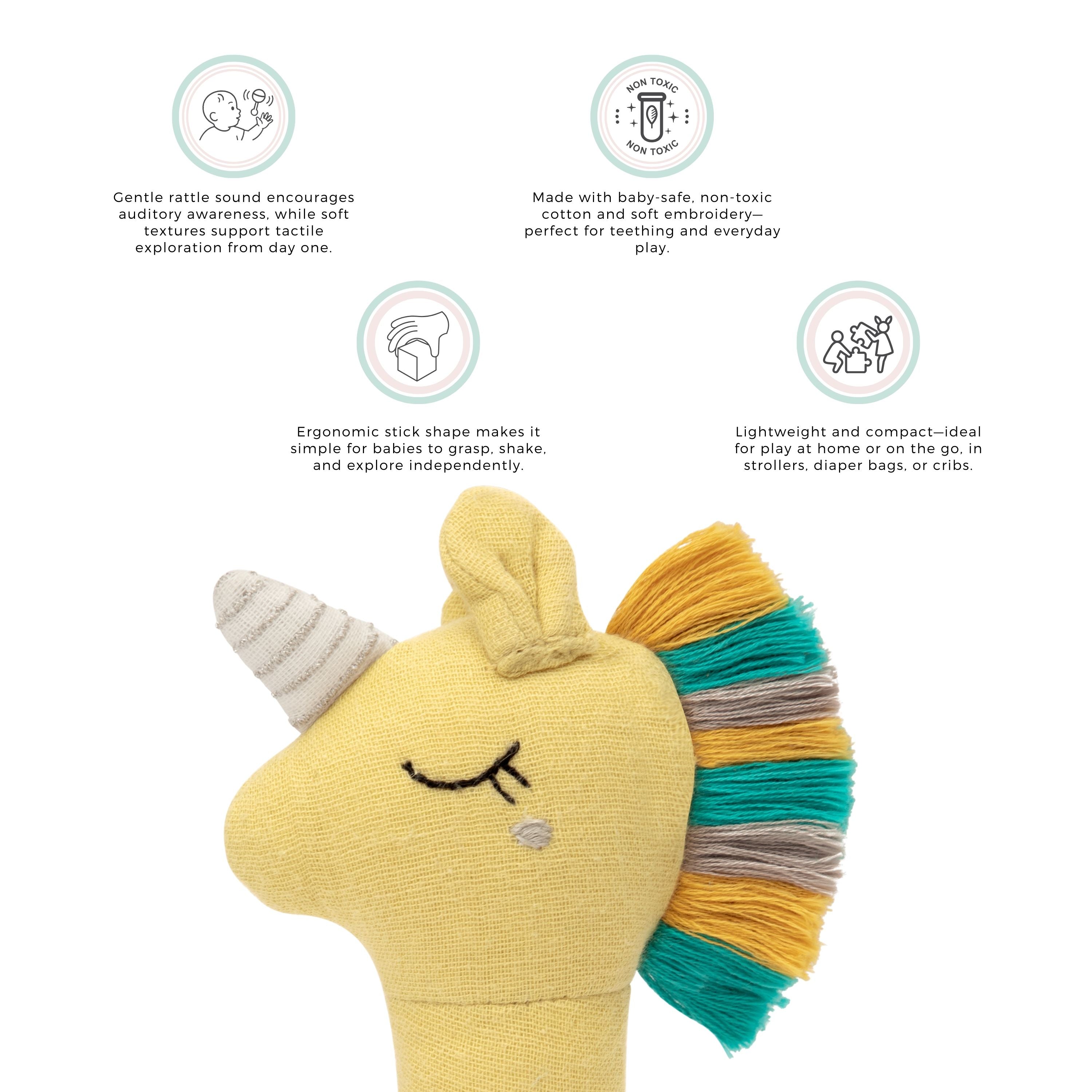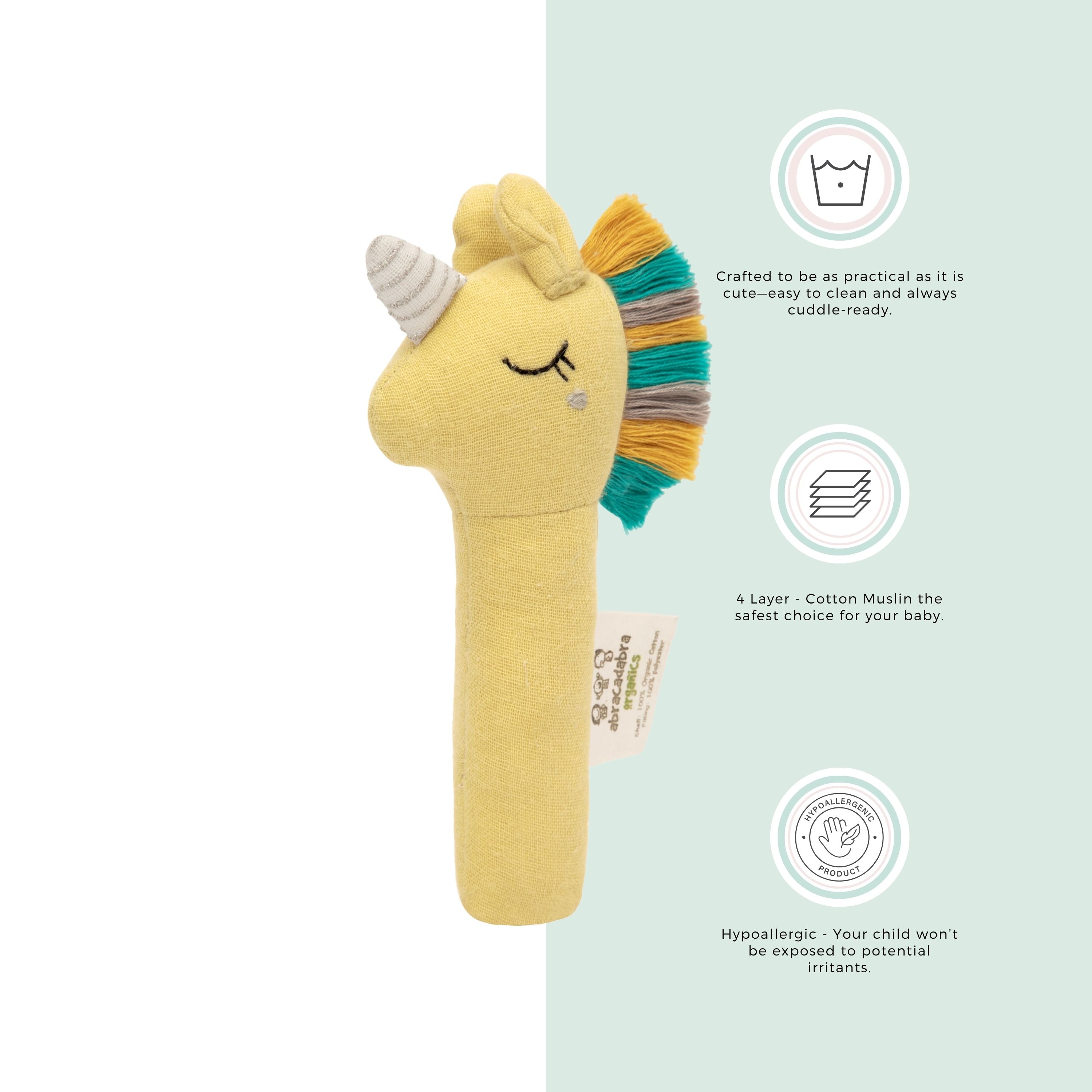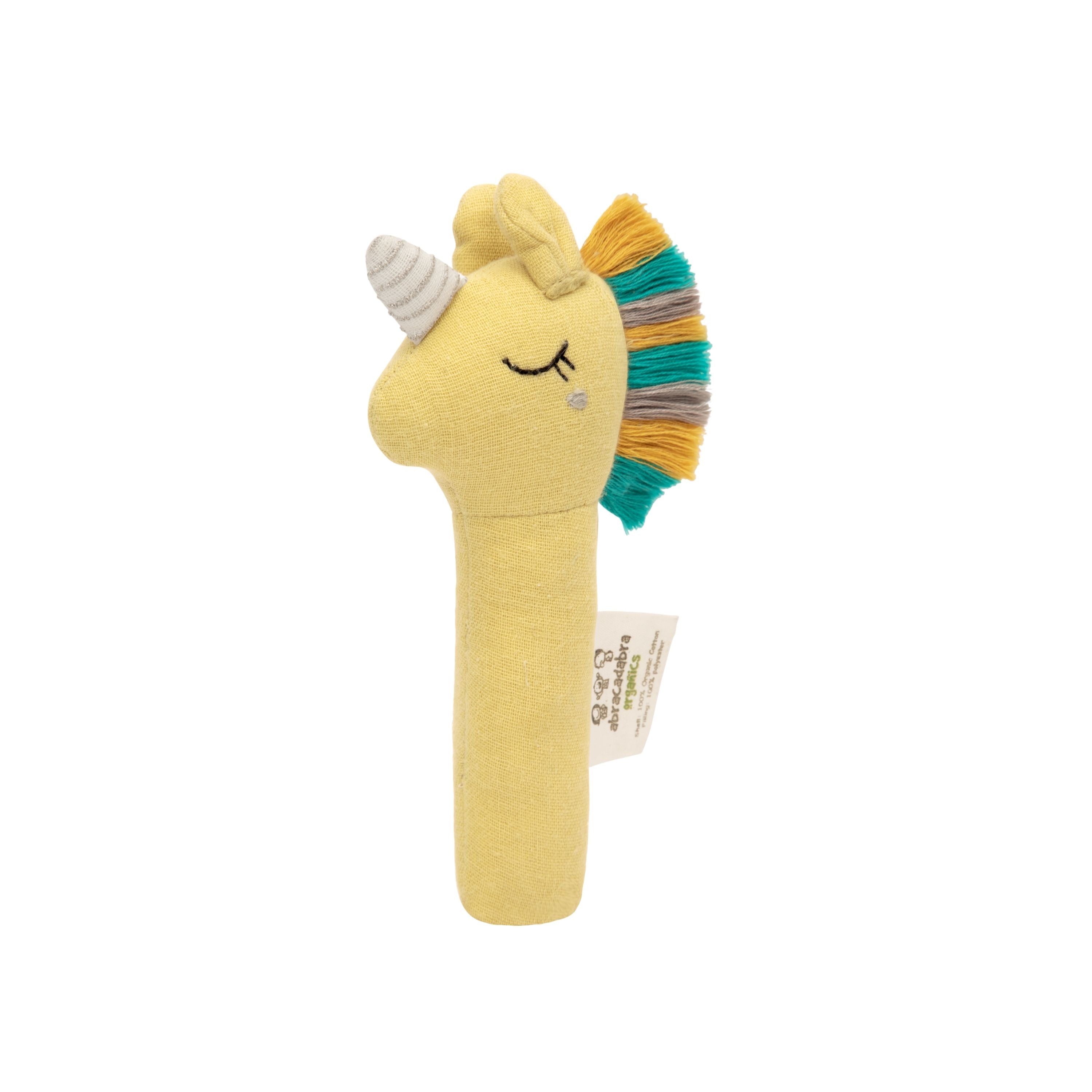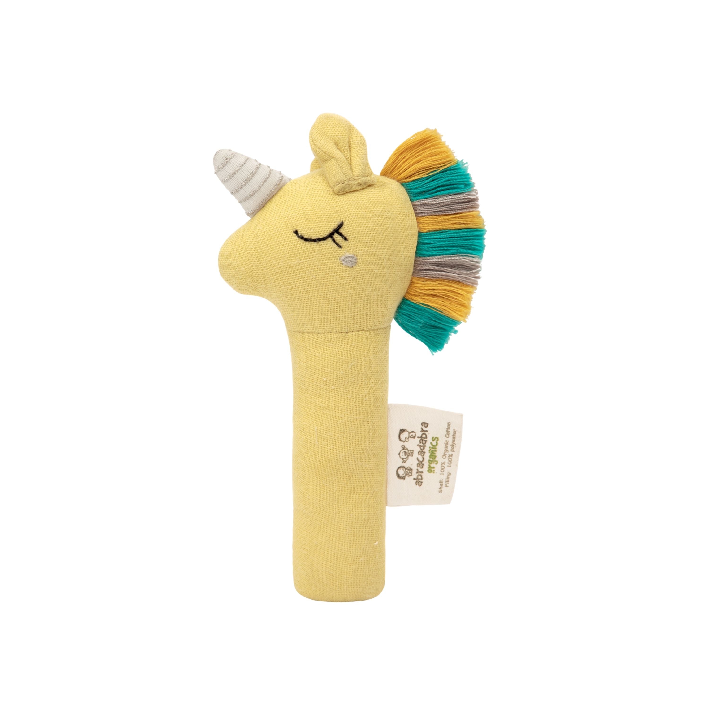 Abracadabra Organic Hand Rattle – Unicorn (Yellow)