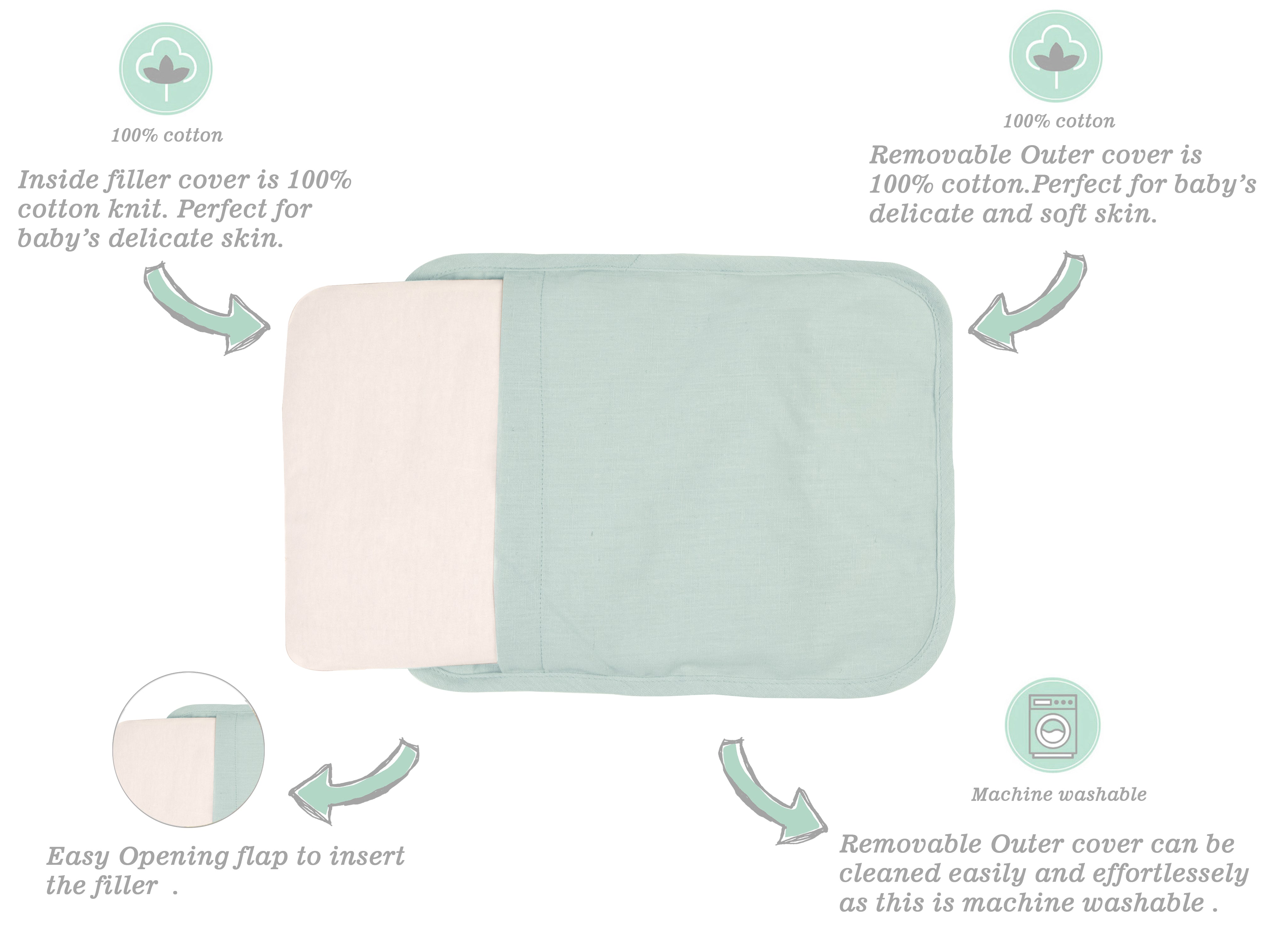 - Protect your baby from Flat Head Syndrome with our custom-made pillow! It encourages healthy development by applying pressure on the baby's head, neck, and shoulders in an evenly manner