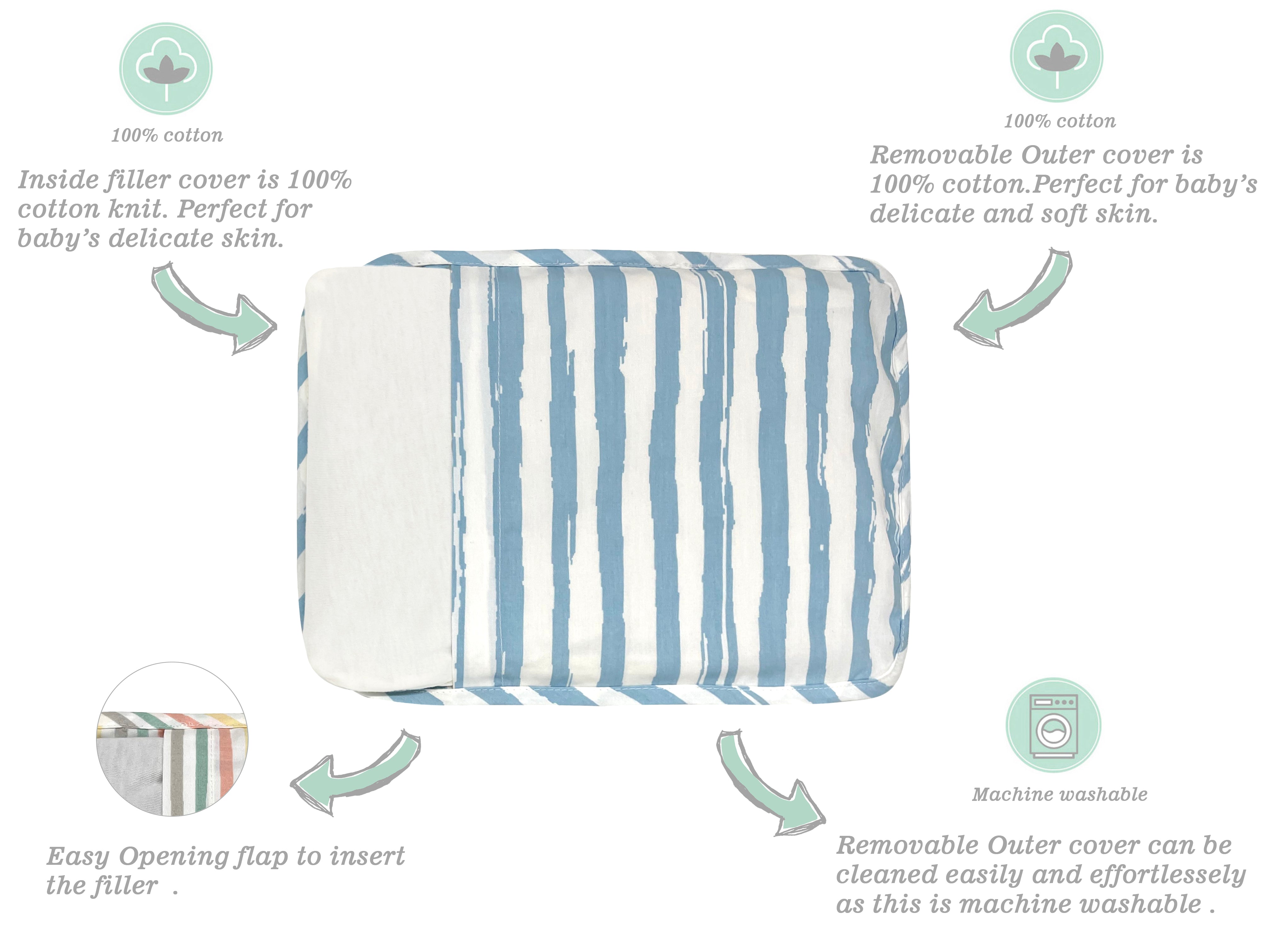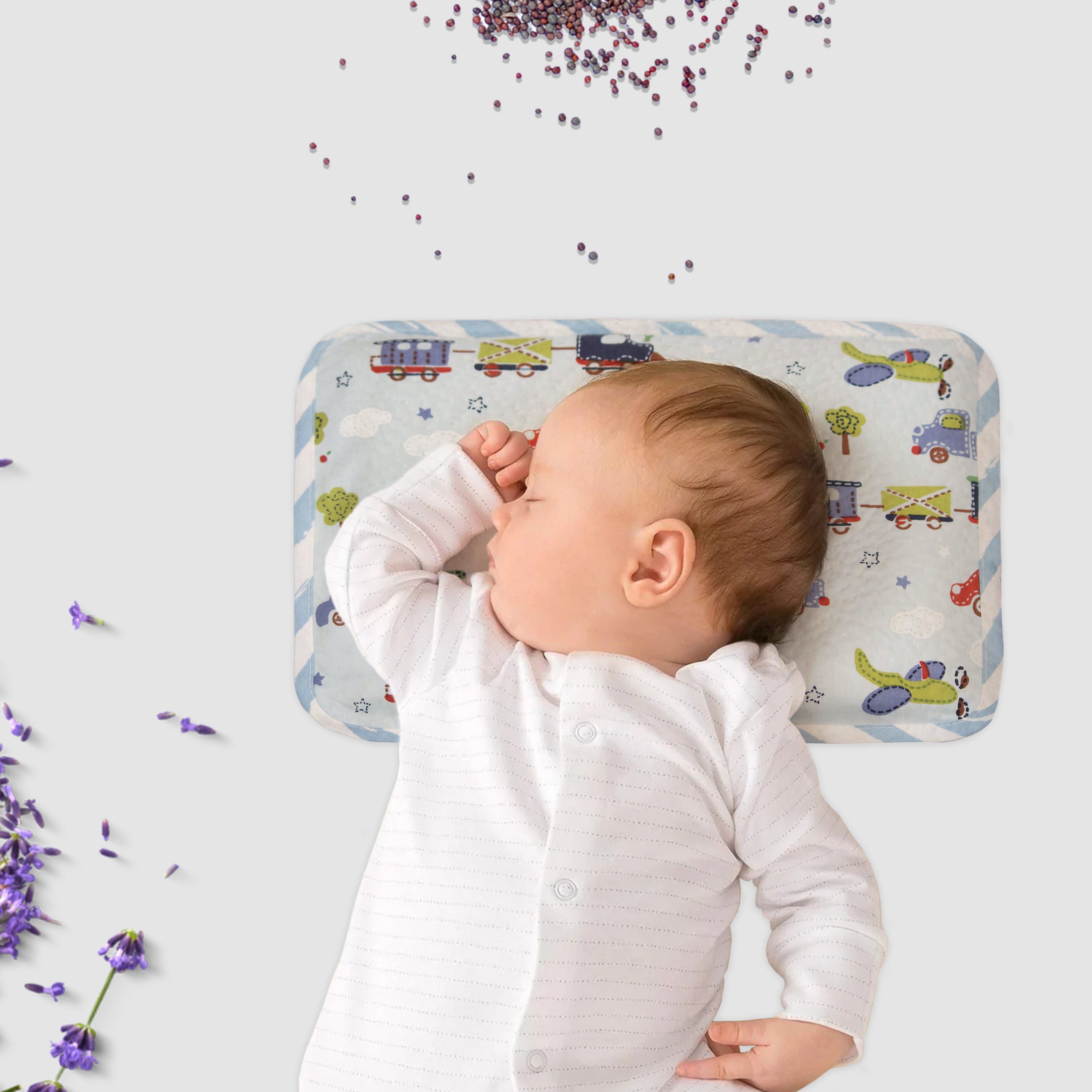 - Protect your baby from Flat Head Syndrome with our custom-made pillow! It encourages healthy development by applying pressure on the baby's head, neck, and shoulders in an evenly manner