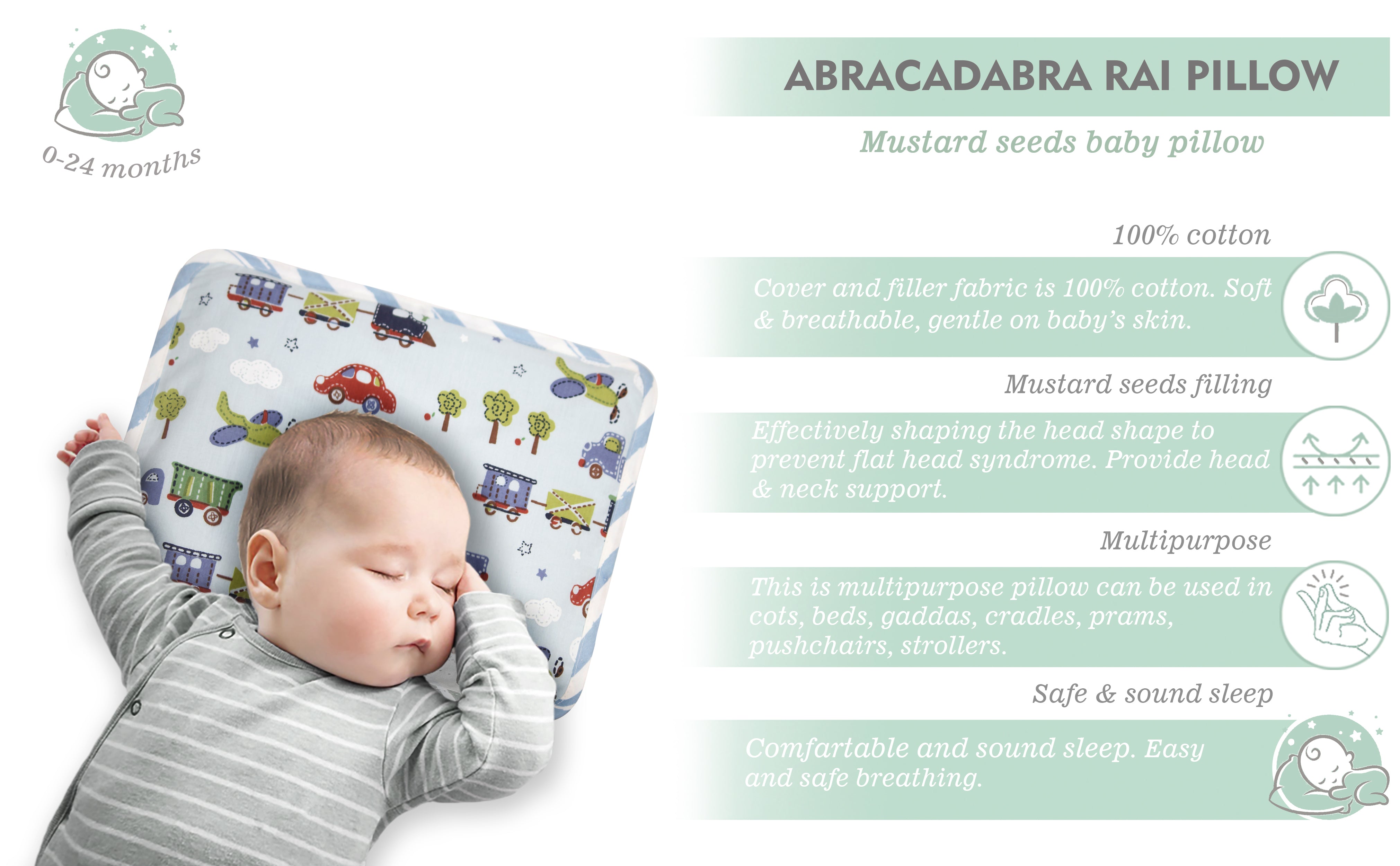 - Filled with 750 grams of mustard seeds, this pillow provides essential neck support and ensures a comfortable headspace for your little one. Infused with lavender essence to promote a good night's rest for your little one
