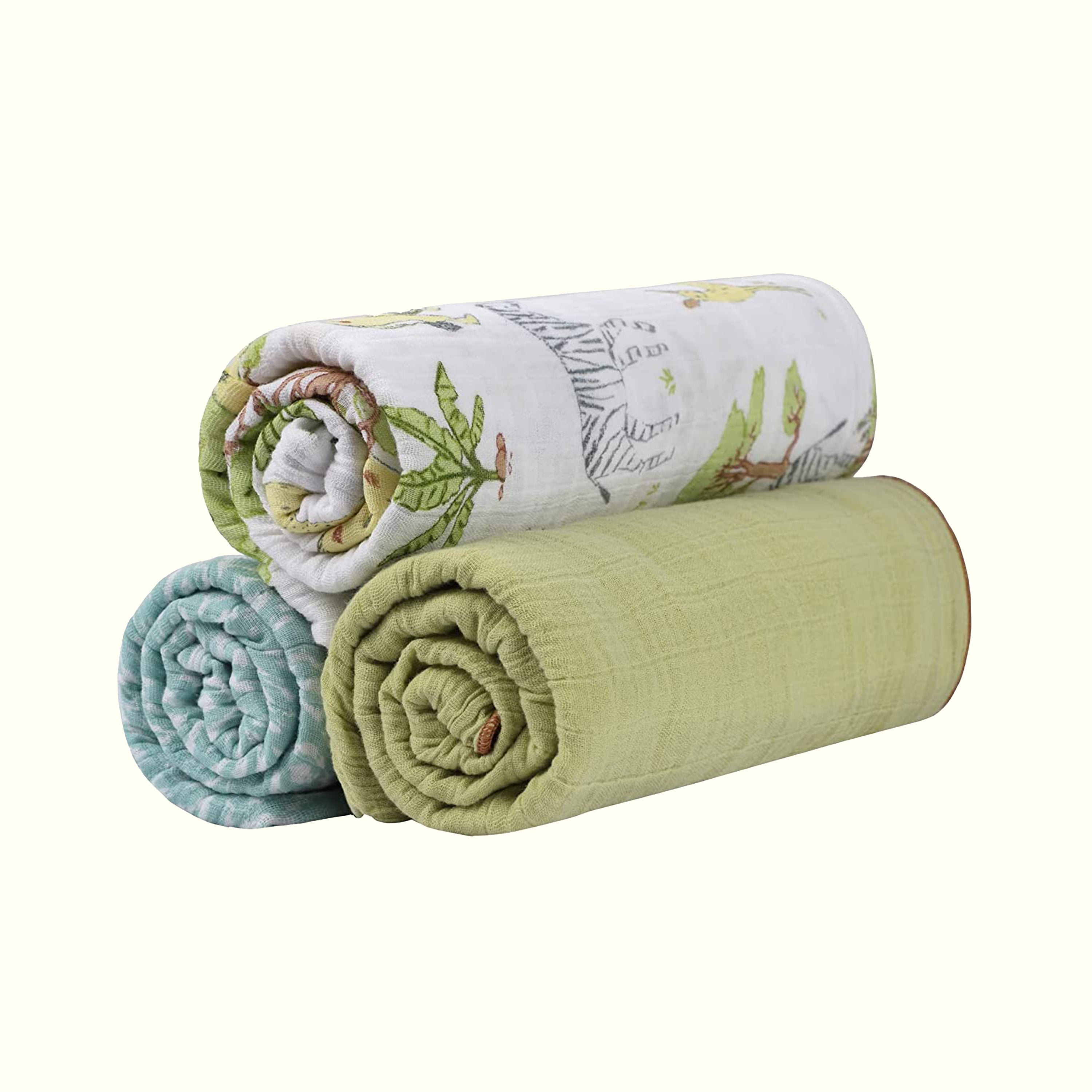 Experience the magic of comfort and safety with Abracadabra's double-layer, ultra-soft cotton muslin swaddling sheets. Designed for your baby's sensitive skin, these breathable and extra-large sheets provide a warm, cozy feel for prolonged sleep. they're the perfect choice for your little one's comfort. Comes in pack of 3