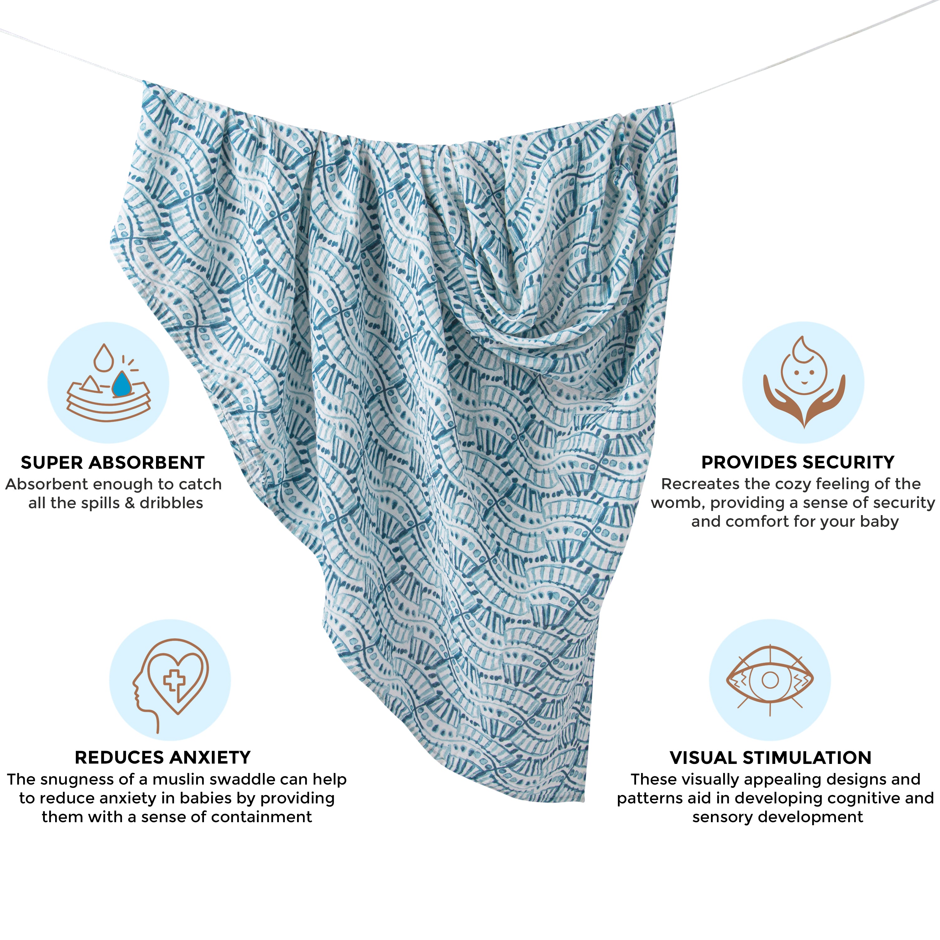 - Crafted with 100% cotton muslin, our swaddle is both light and breathable, ensuring optimal comfort for your baby. The hypoallergenic and soft material ensures a gentle touch, ensuring the safety of your baby's sensitive skin