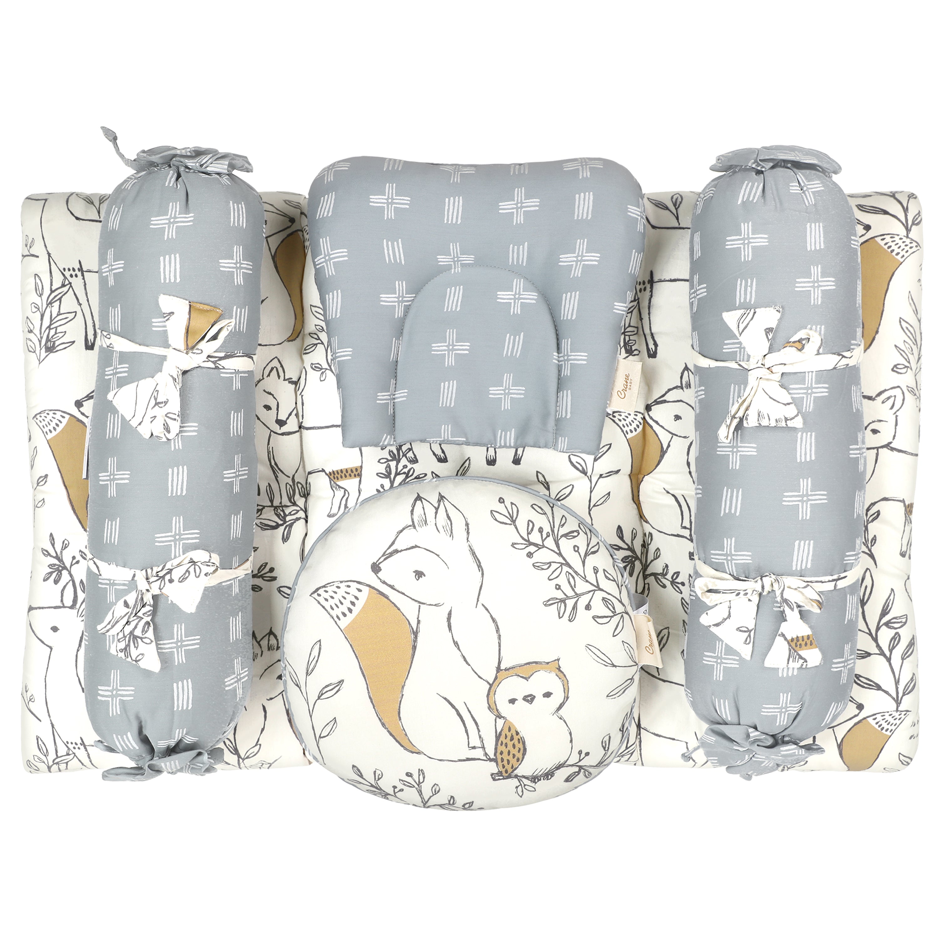 Introducing our Complete 5-Piece Mattress Set, carefully designed to cater to your baby's comfort. This adorable set includes one mattress, two bolsters, one cavity neck pillow, and one decorative pillow. With dimensions perfectly tailored for infants aged 0-2 years