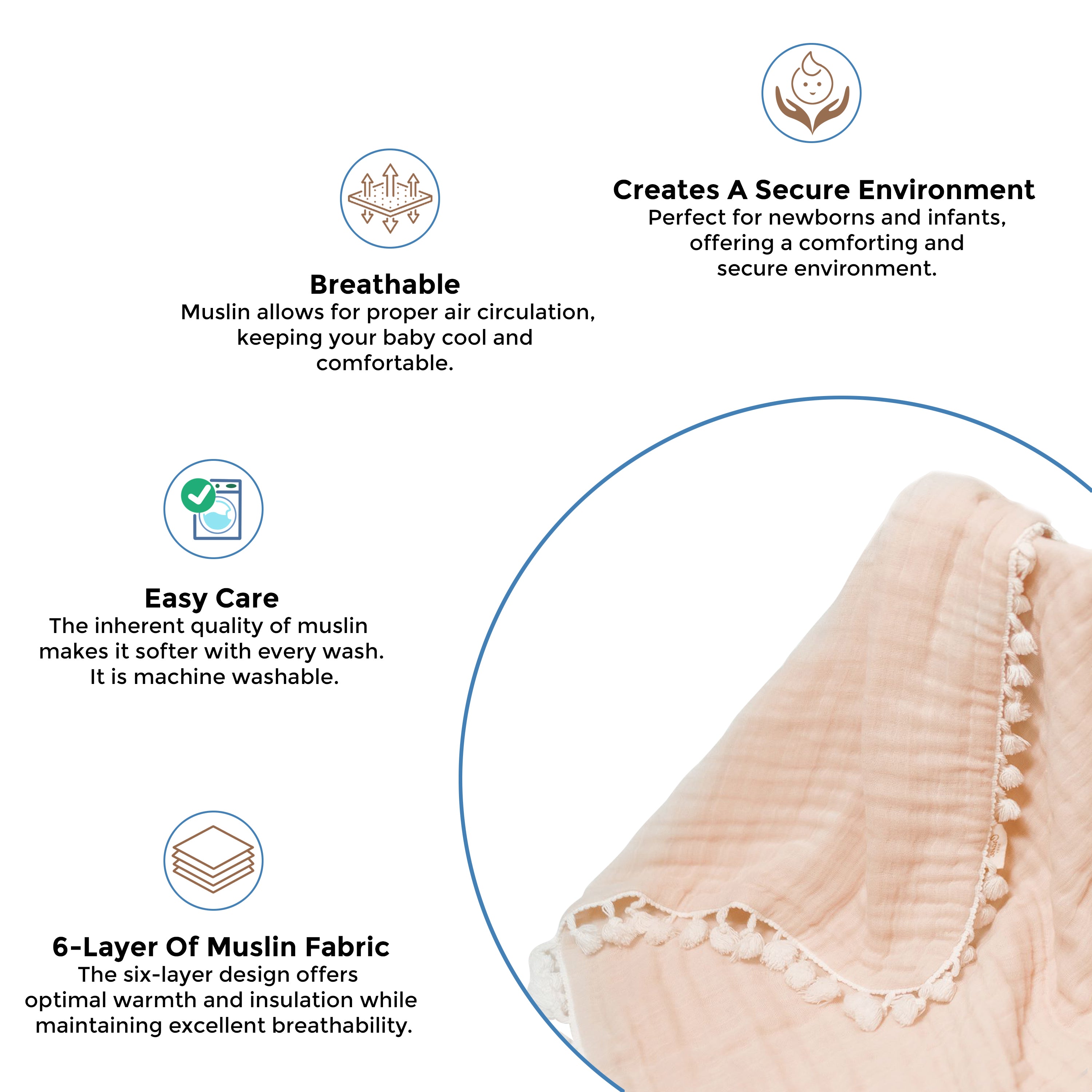 - This blanket comes with six layers of muslin, ensuring ultra soft comfort for your baby. Its 100 % cotton muslin fabric is known for being breathable best suited for newborns