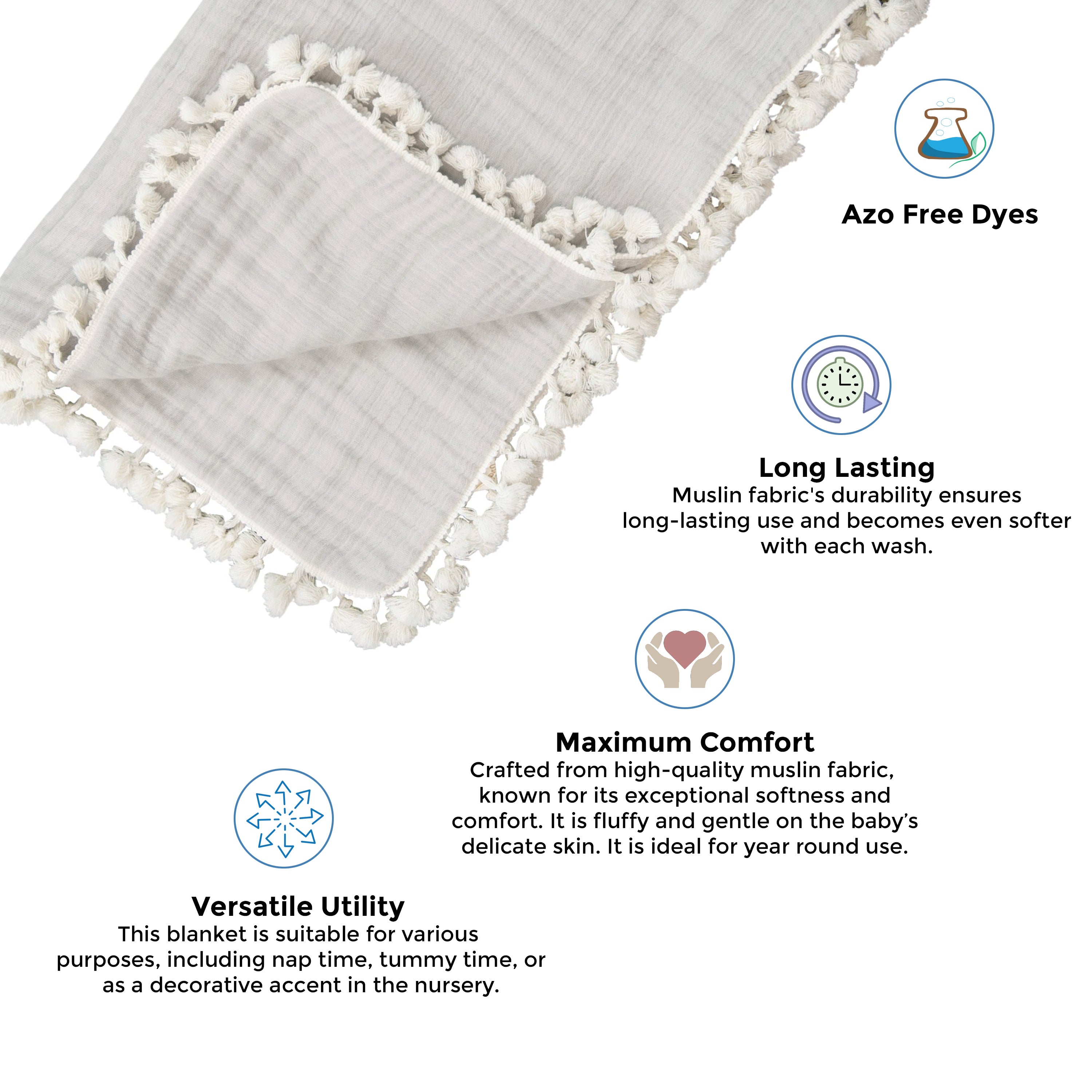 - Our blanket is hypoallergenic, baby-safe and is crafted with care. ensuring that your baby's delicate skin free from irritations or allergies. The tassel edges are soft and great for teething