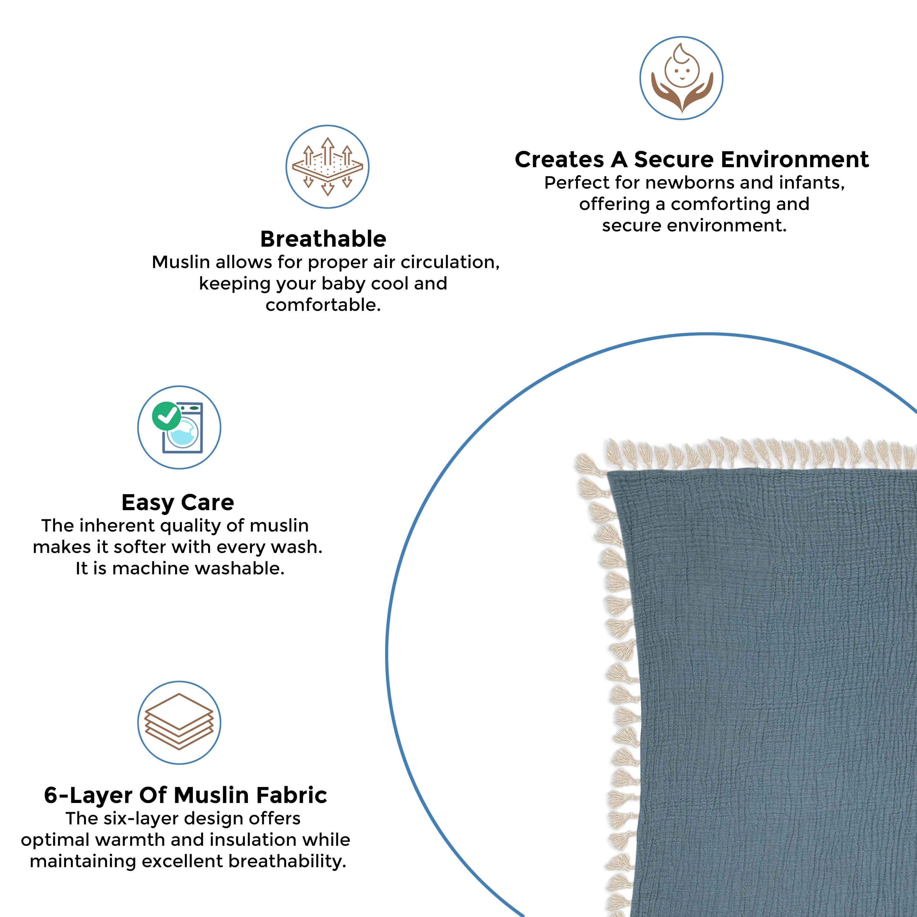 - This blanket comes with six layers of muslin, ensuring ultra soft comfort for your baby. Its 100 % cotton muslin fabric is known for being breathable best suited for newborns