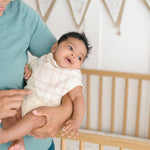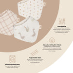 Discover the perfect feeding time companion with our practically designed bibs. Our playful themes and attractive colours will stimulate your baby's curiosity. Catch and soak up any spills, spit-ups effortlessly, ensuring your baby's clothes stay clean and neat. Muslin is the softest fabric used for babies, its inherent properties make it softer with every wash