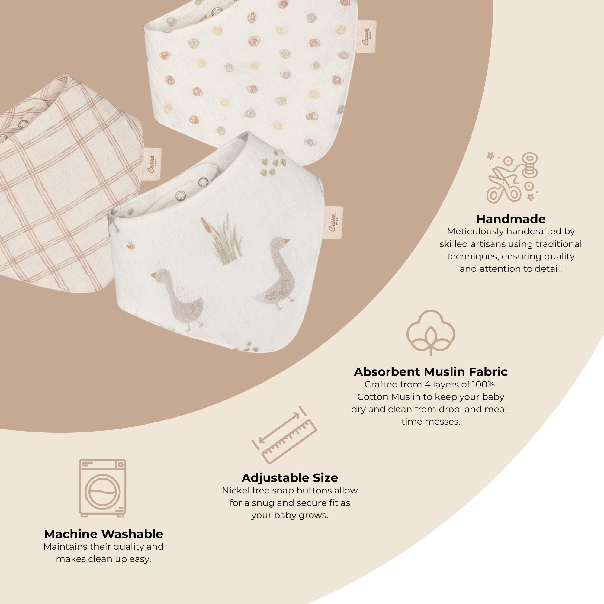 - Our bibs are made with 4 layers of cotton muslin that provides high absorbency and is very easy to maintain