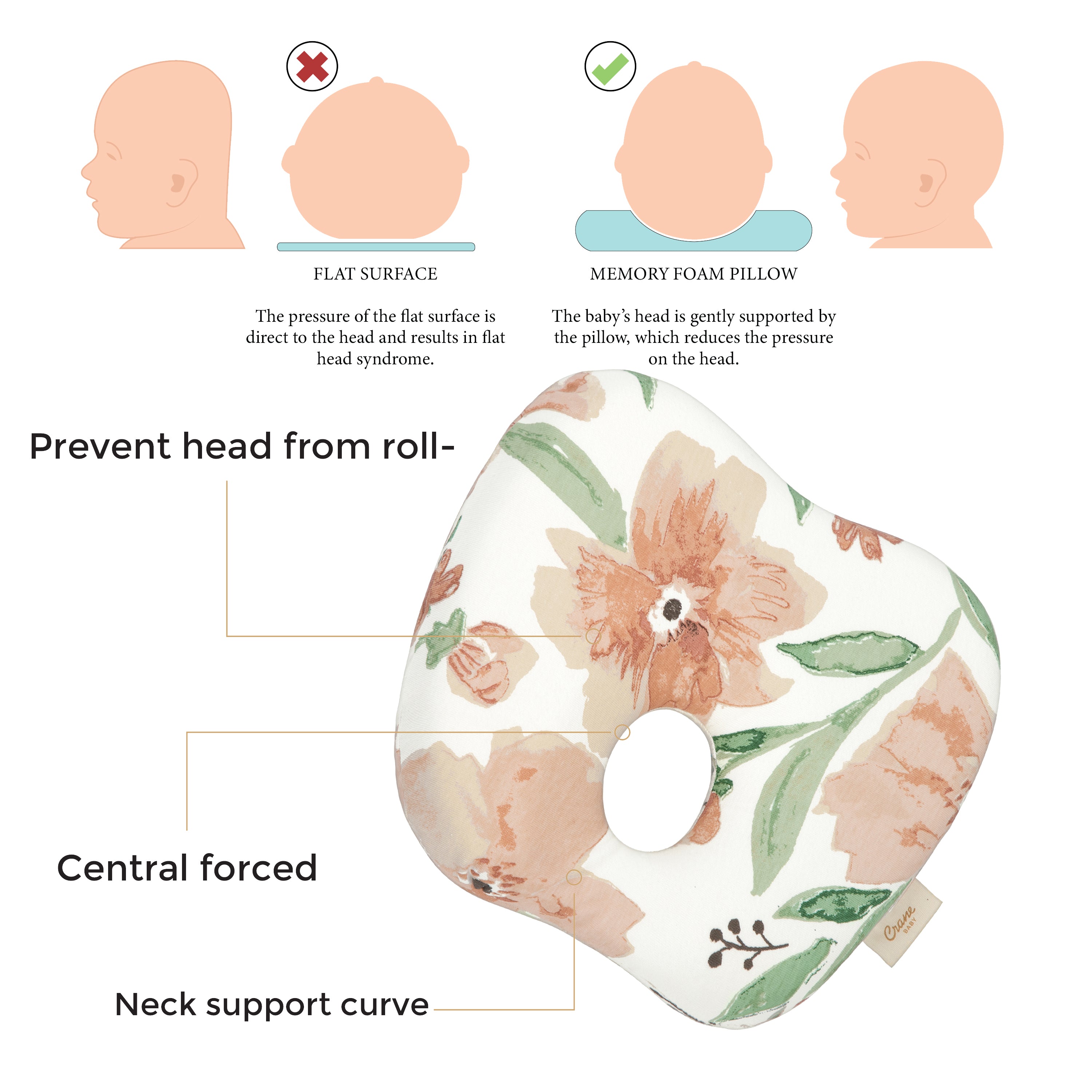 Crane Baby Memory Foam Pillow - Parker Floral