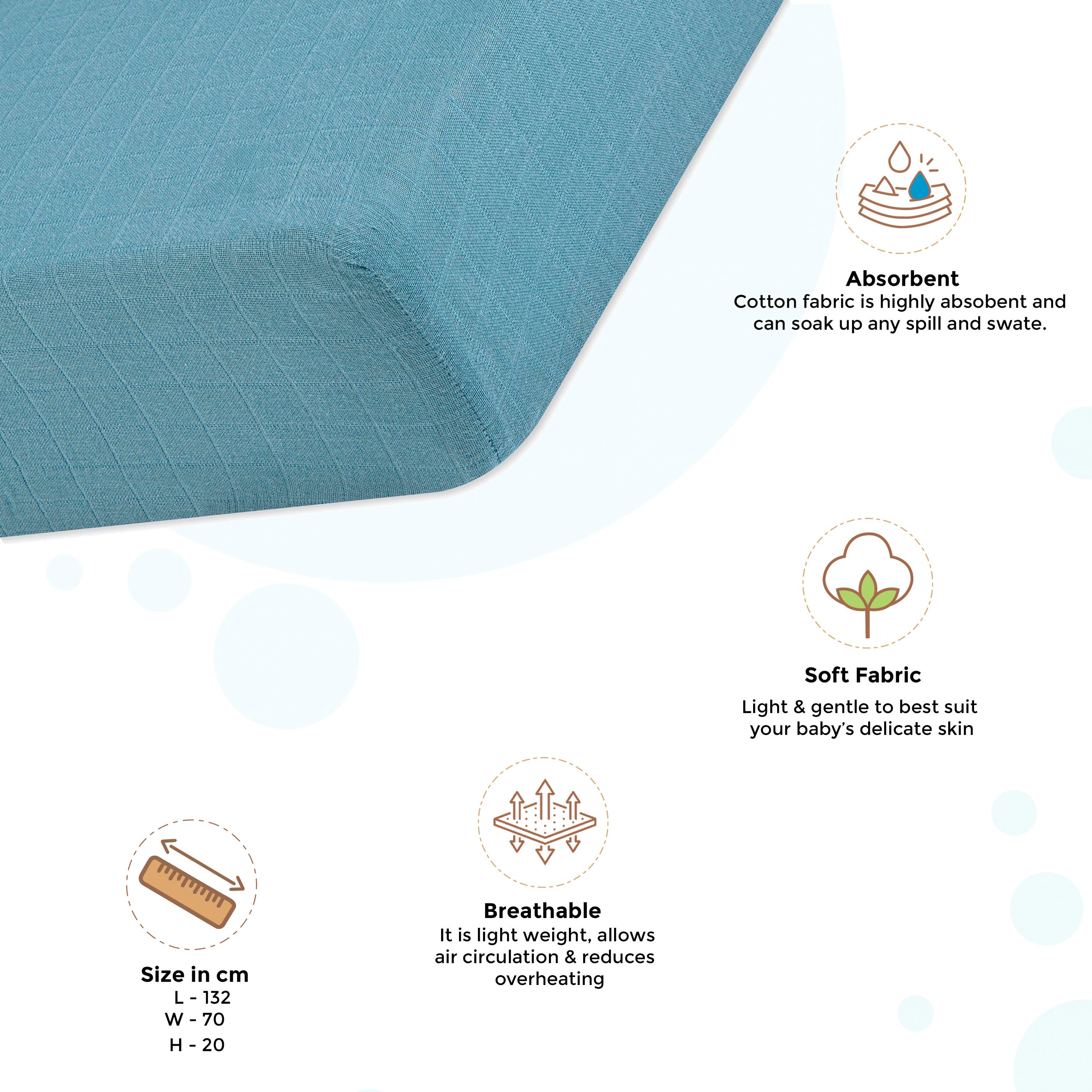 - Woven with a 220 thread cotton that is gentle on sensitive skin. More importantly, it keeps your baby cool by wicking away sweat and moisture as they sleep