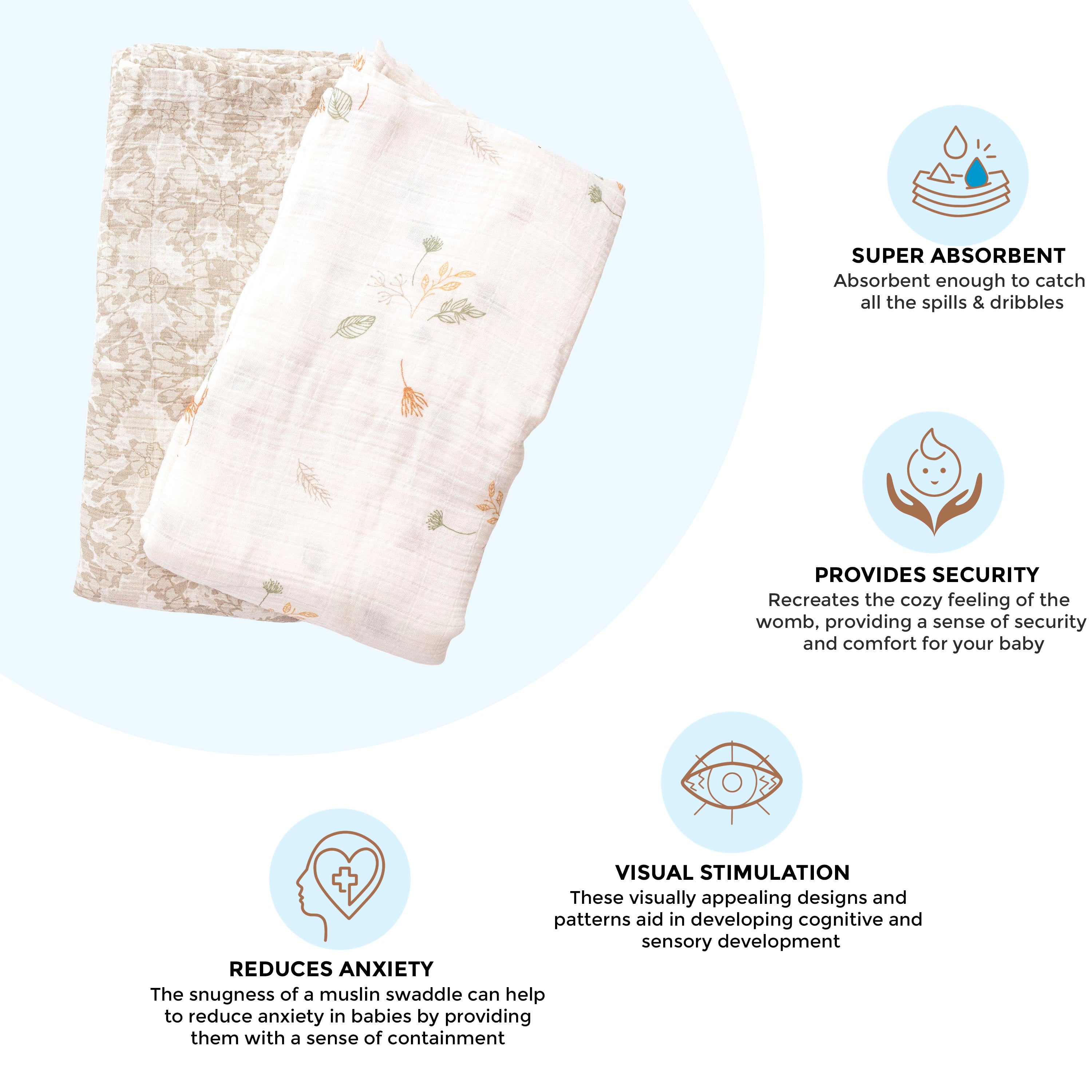 - Crafted with 100% cotton muslin, our swaddle is both light and breathable, ensuring optimal comfort for your baby. The hypoallergenic and soft material ensures a gentle touch, ensuring the safety of your baby's sensitive skin