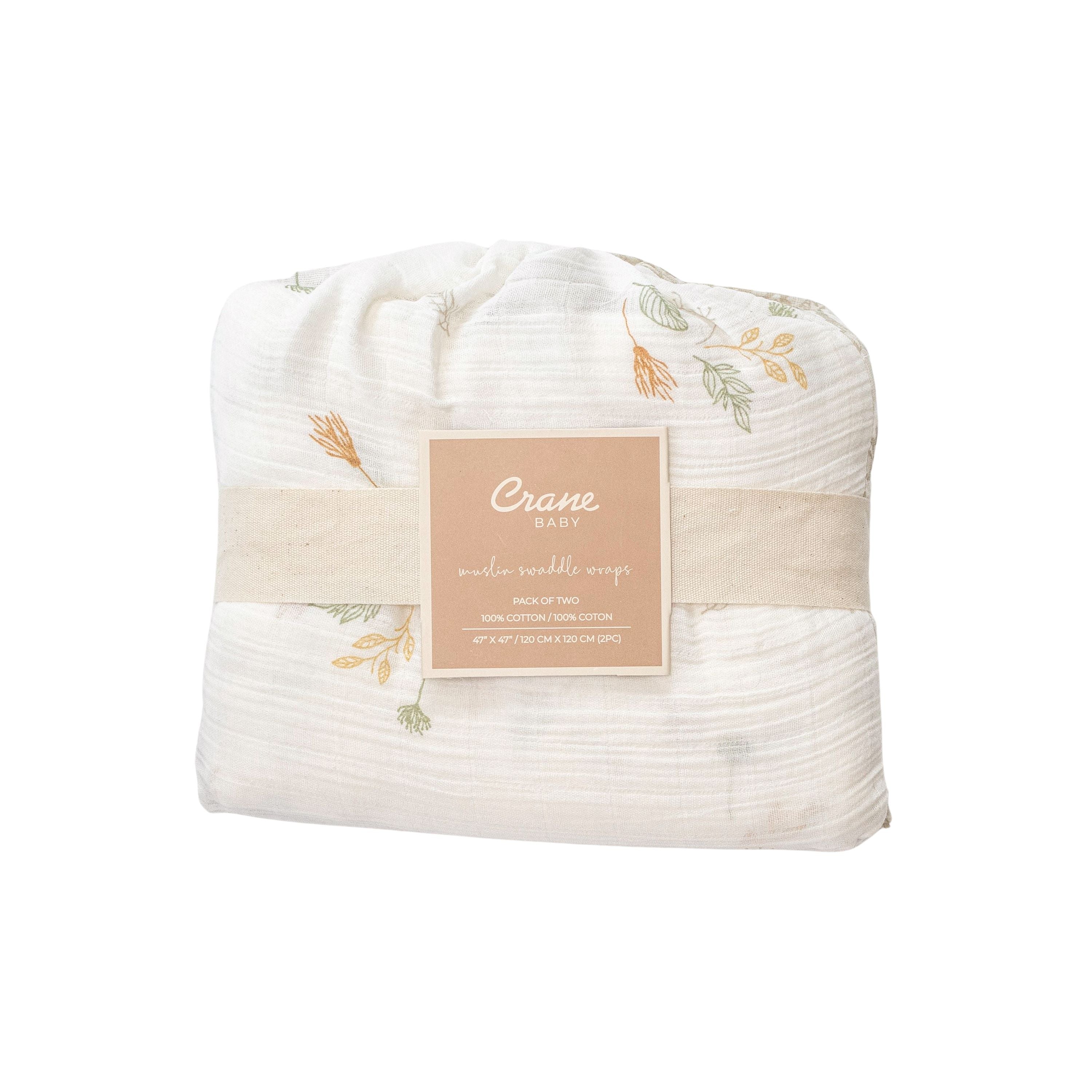 Crane Baby Muslin Swaddle Set of 2 - Willow Dainty Leaf