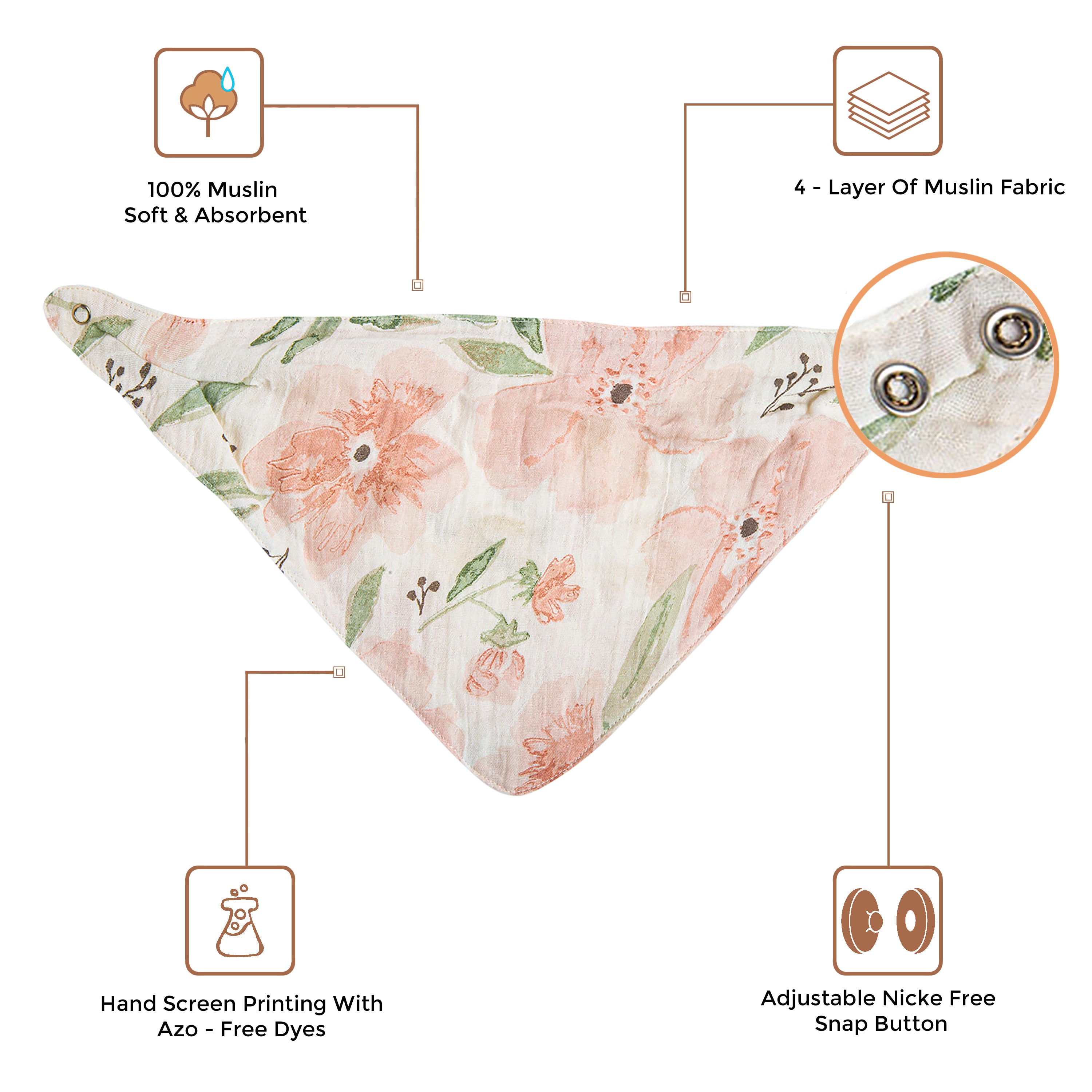 - Our bibs are made with 4 layers of cotton muslin that provides high absorbency and is very easy to maintain